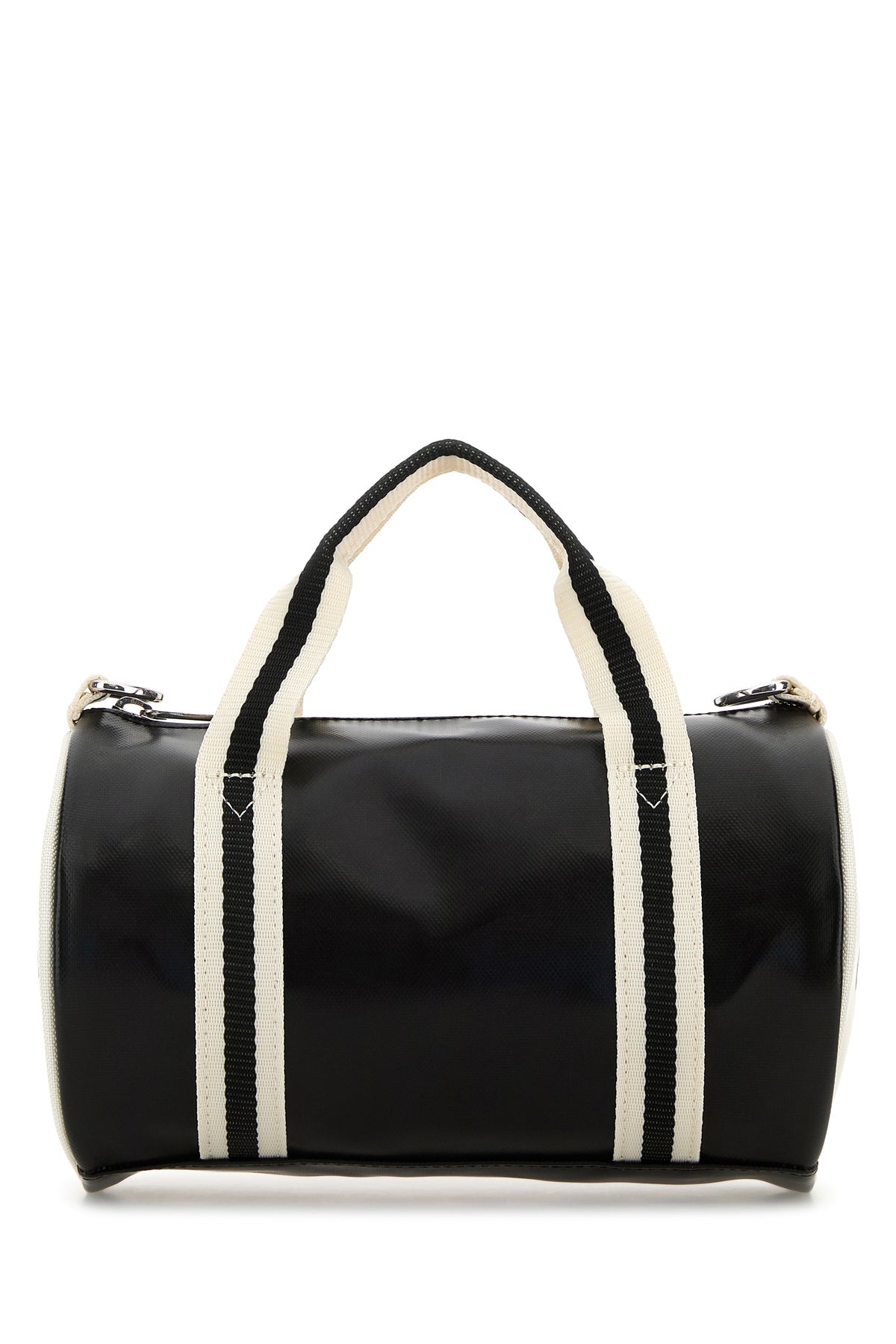 Handbag realized in coated canvas characterized by printed logo at the front.