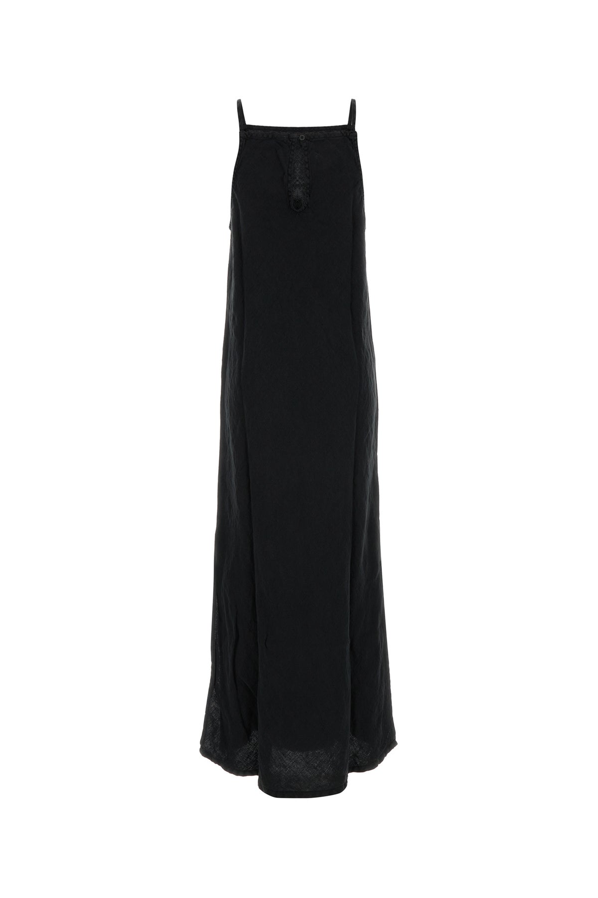 Long-cut dress realized in pure linen characterized by lateral slits on the hemline.