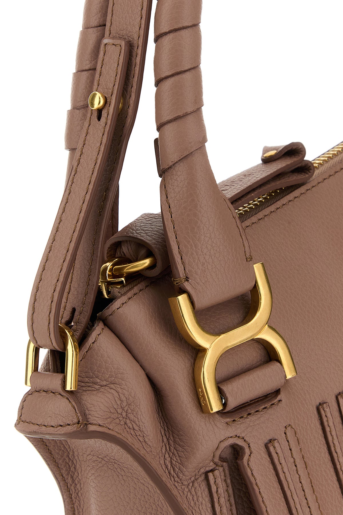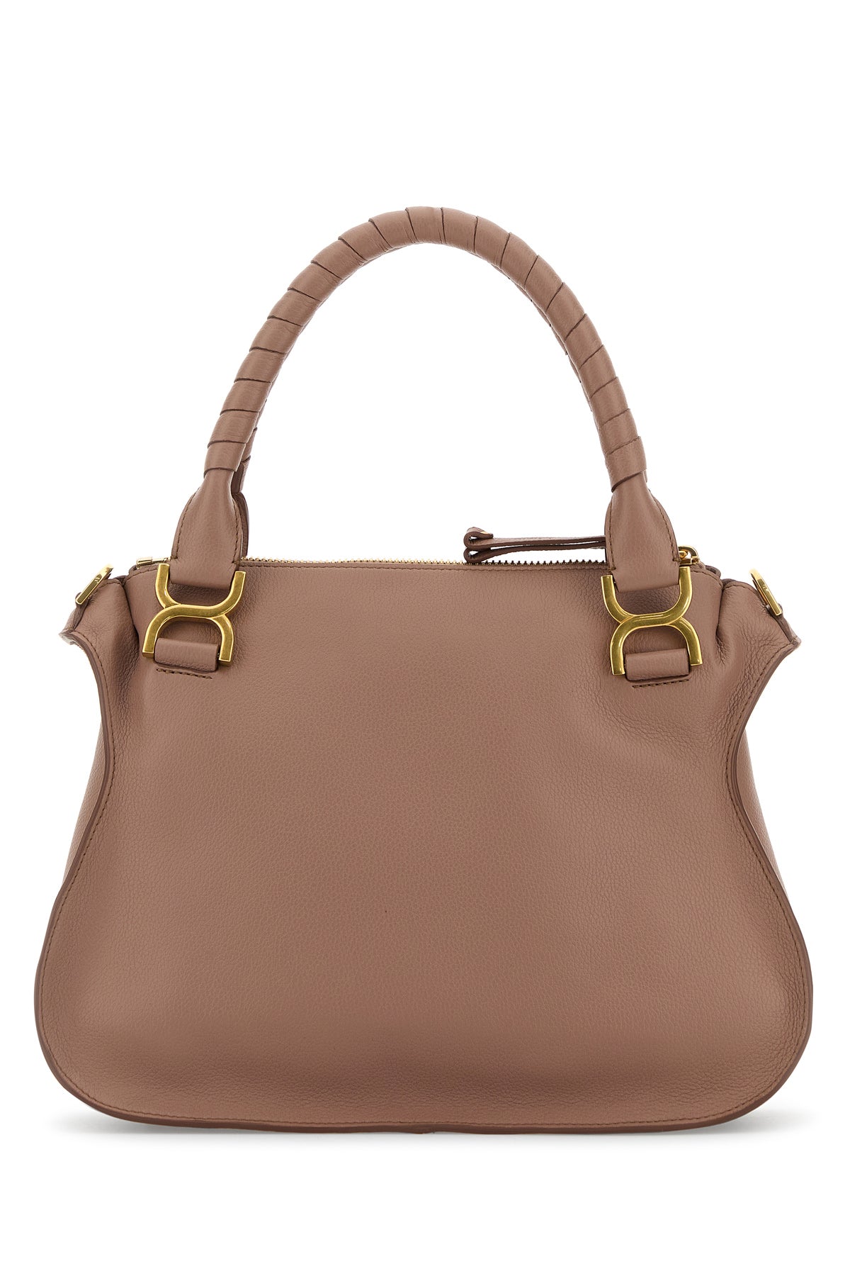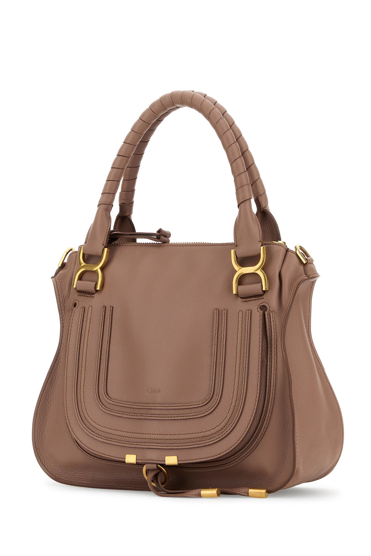 Handbag realized in pebble calf leather characterized by embossed logo on the flap enriched by tonal leather patches at the front.