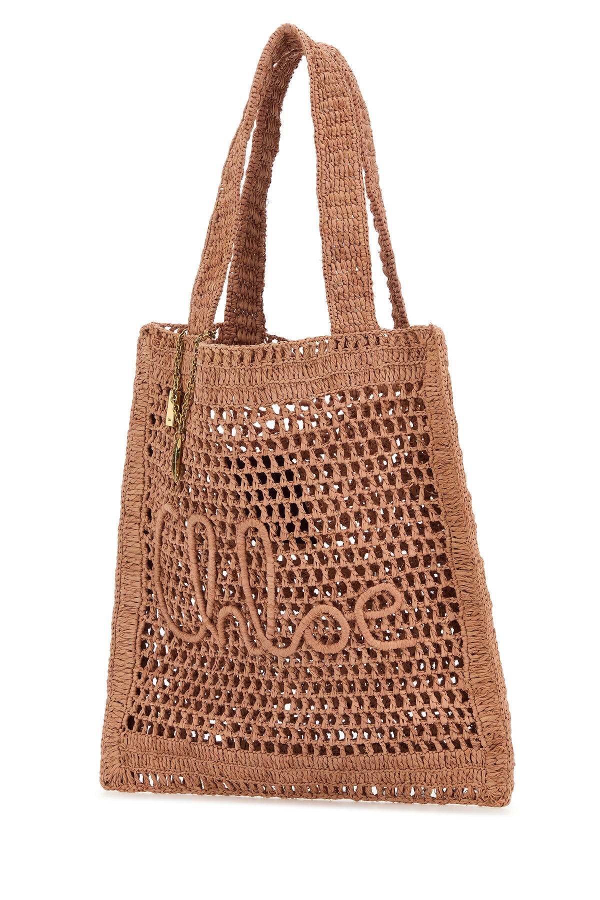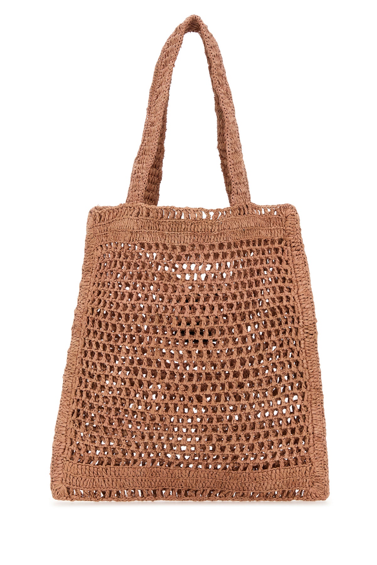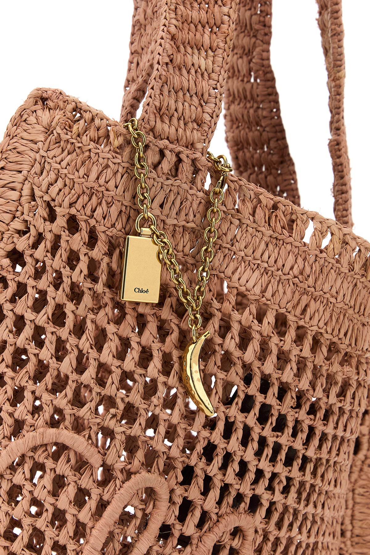 Shopping bag realized in raffia characterized by tonal embroidered logo at the front.