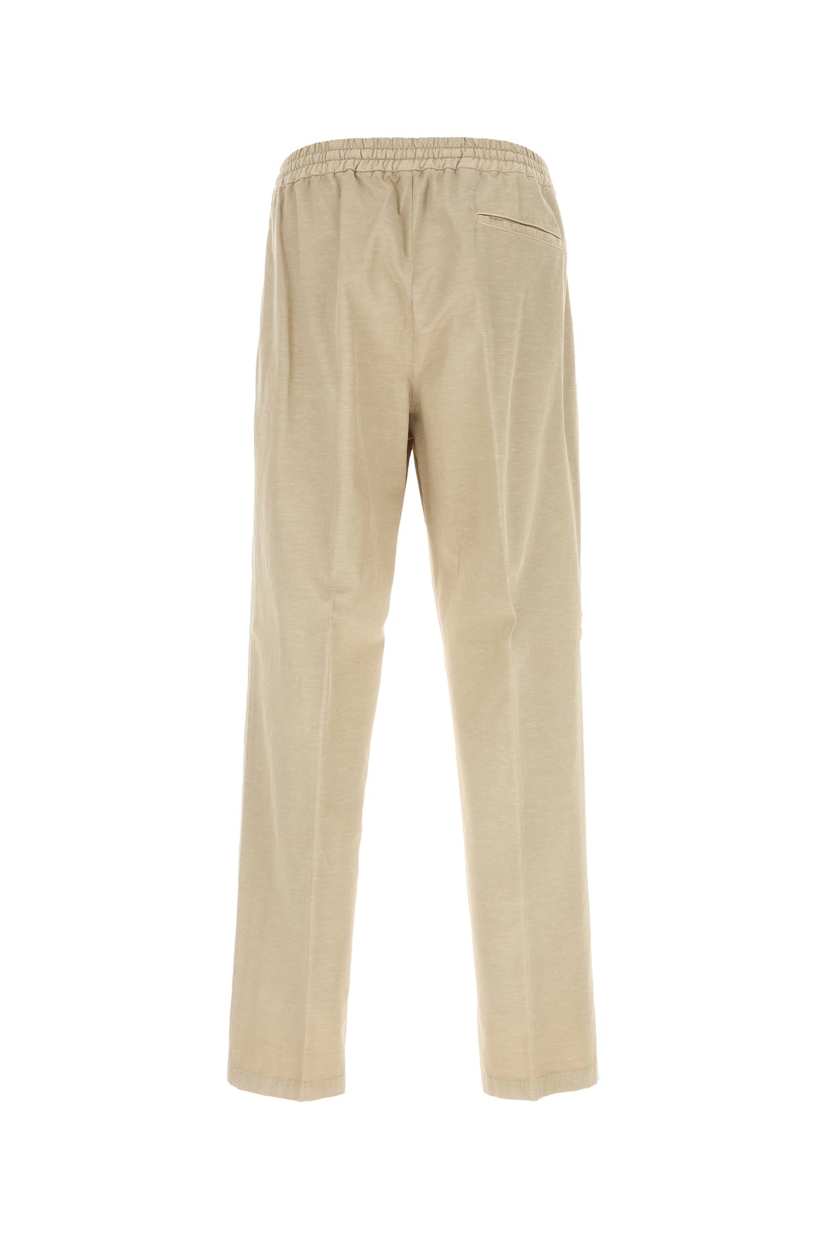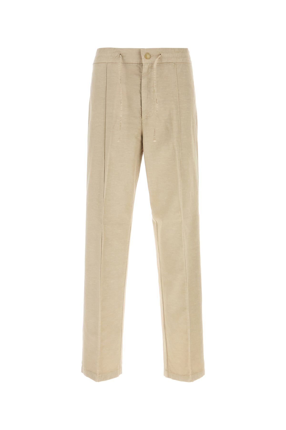 Pant realized in stretch cotton blend. characterized by central ironed pleats.