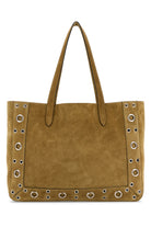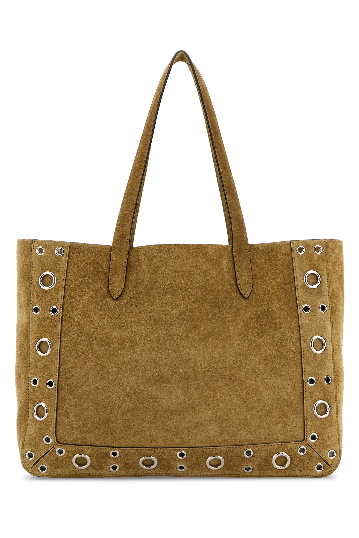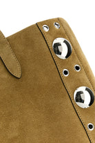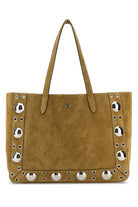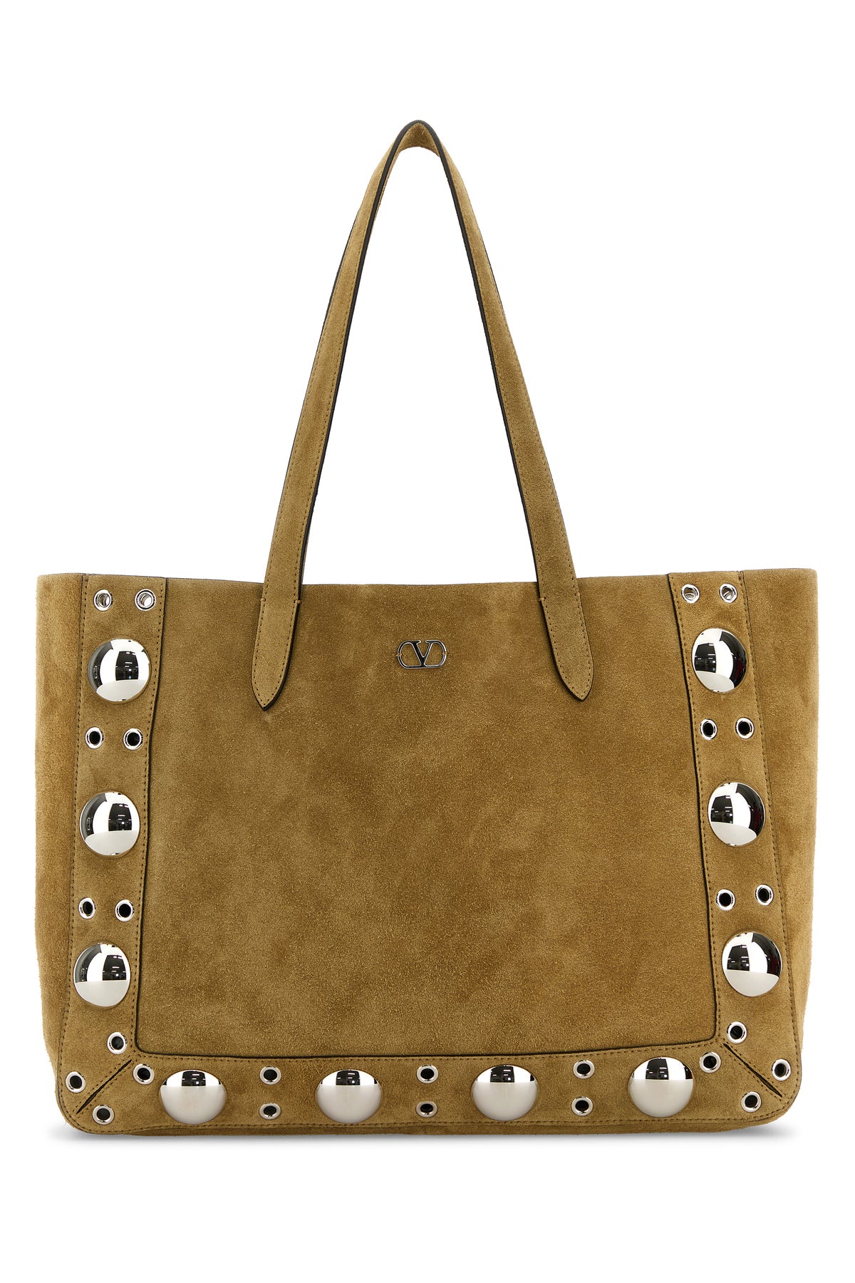 Shopping bag realized in suede enriched by VLogo Signature metal detail at the front and metal studs on the trimmings.