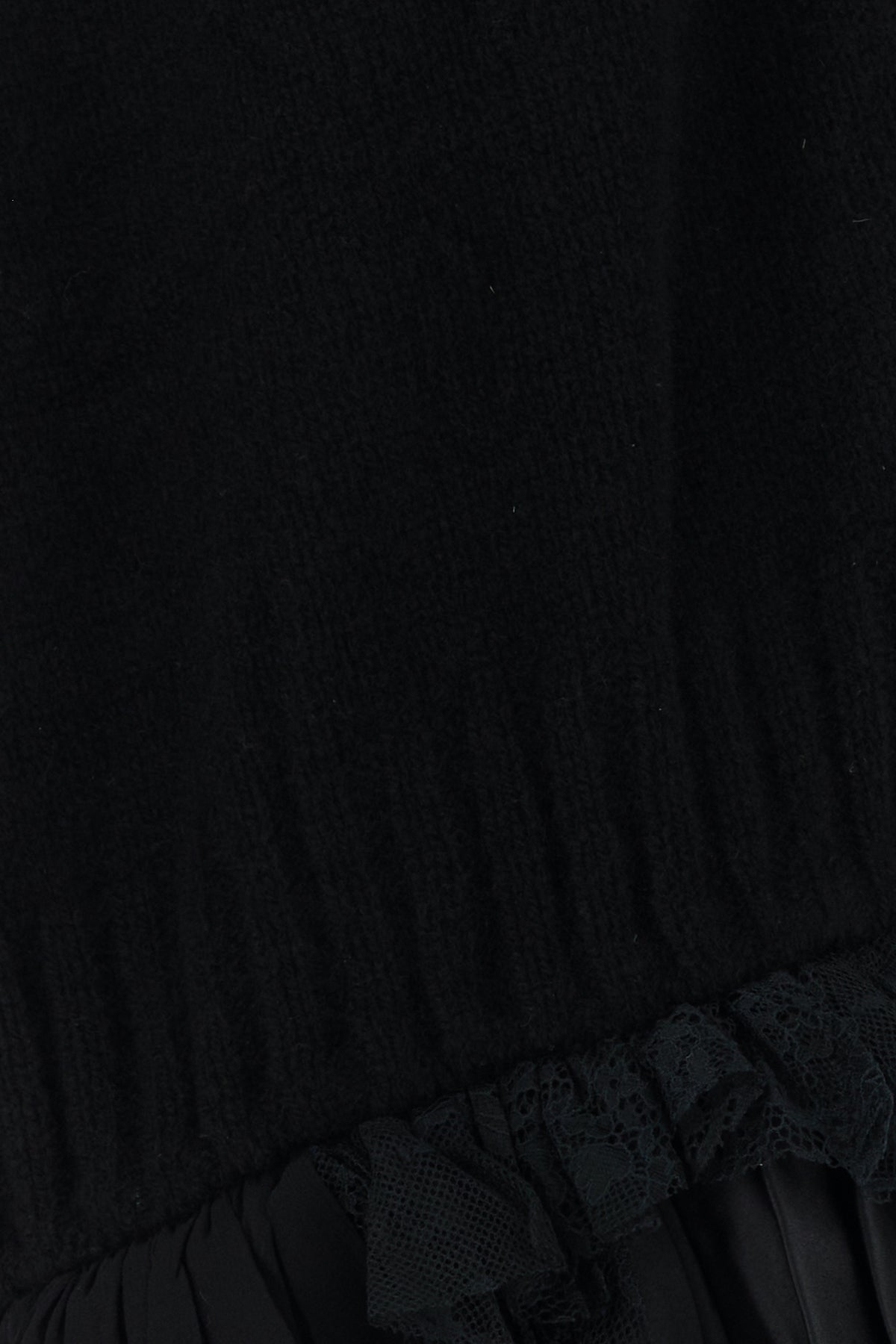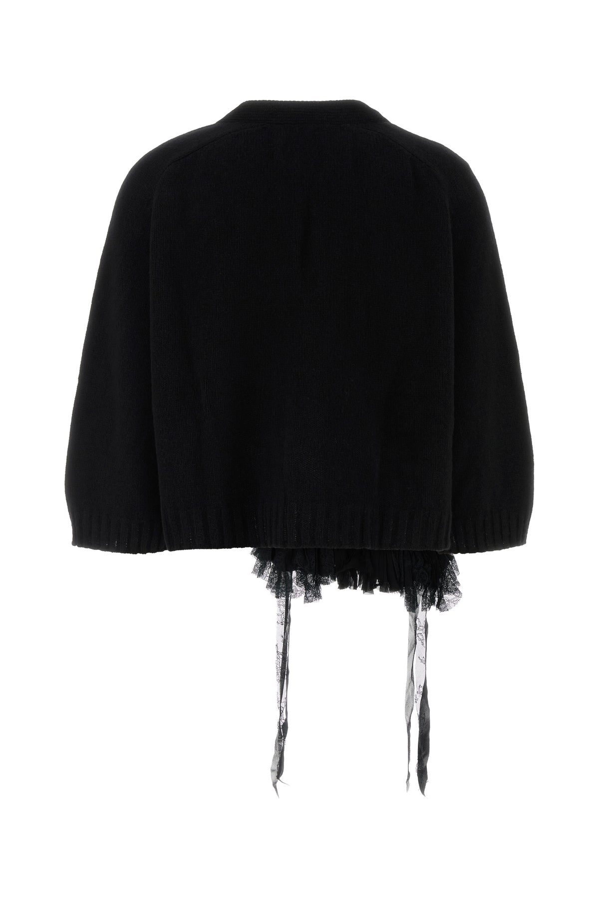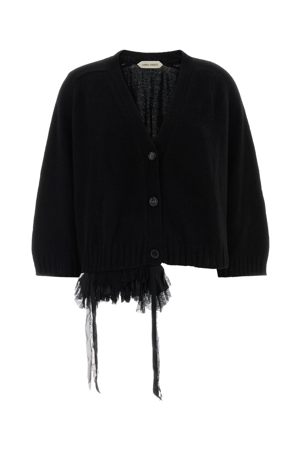 Short-sleeves cardigan realized in cashmere blend with peculiar insert on the hemline.