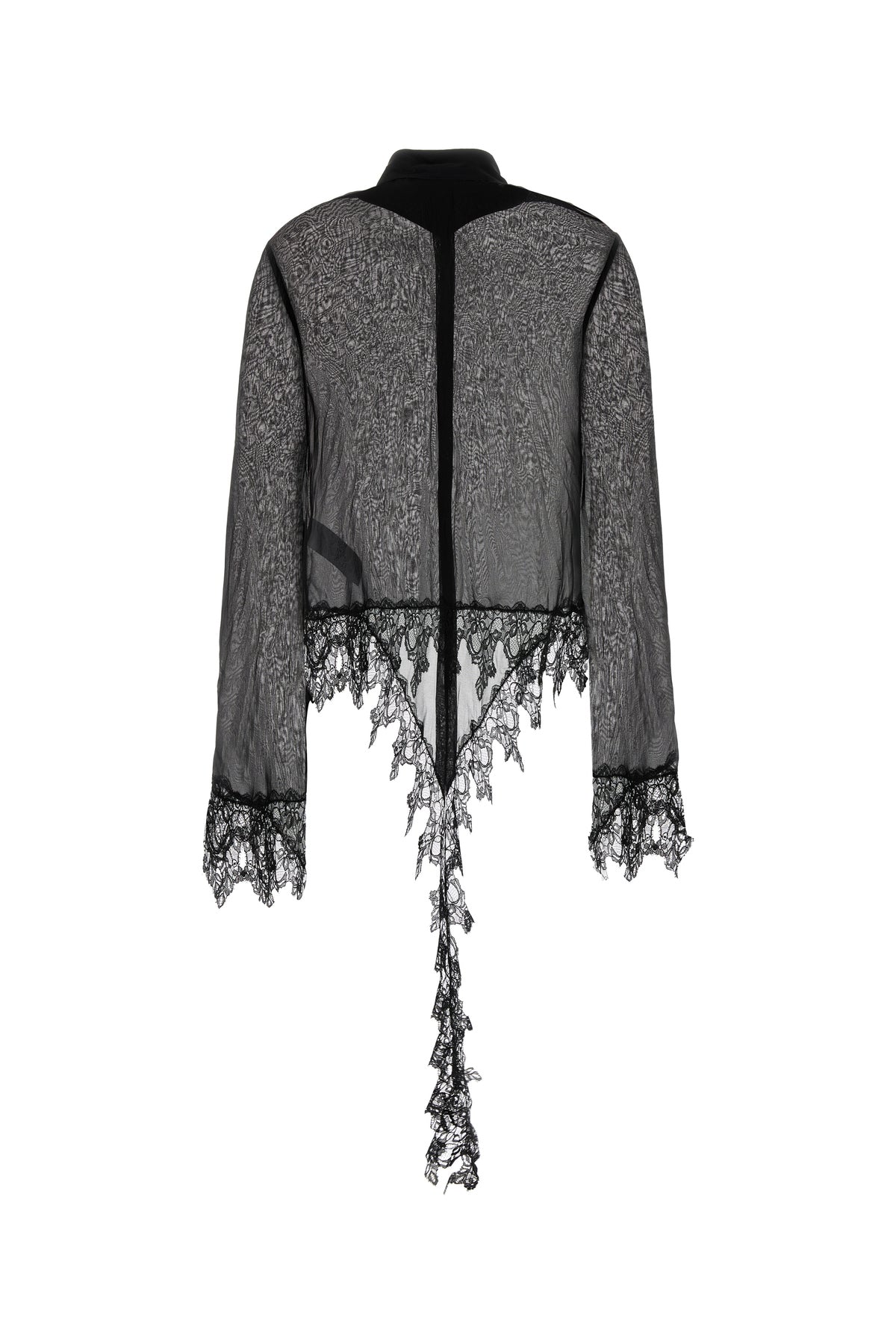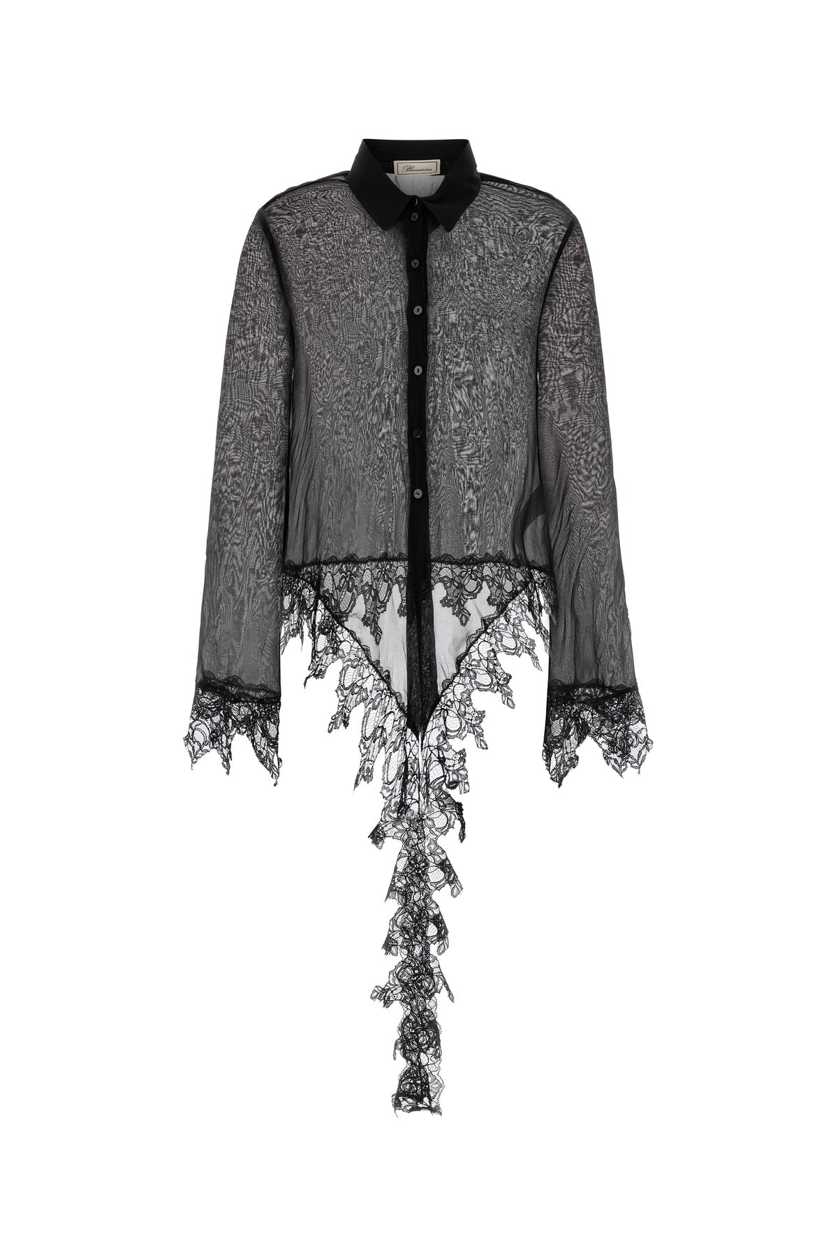 Shirt realized in chiffon with lace insert on the hemline and on the cuffs.