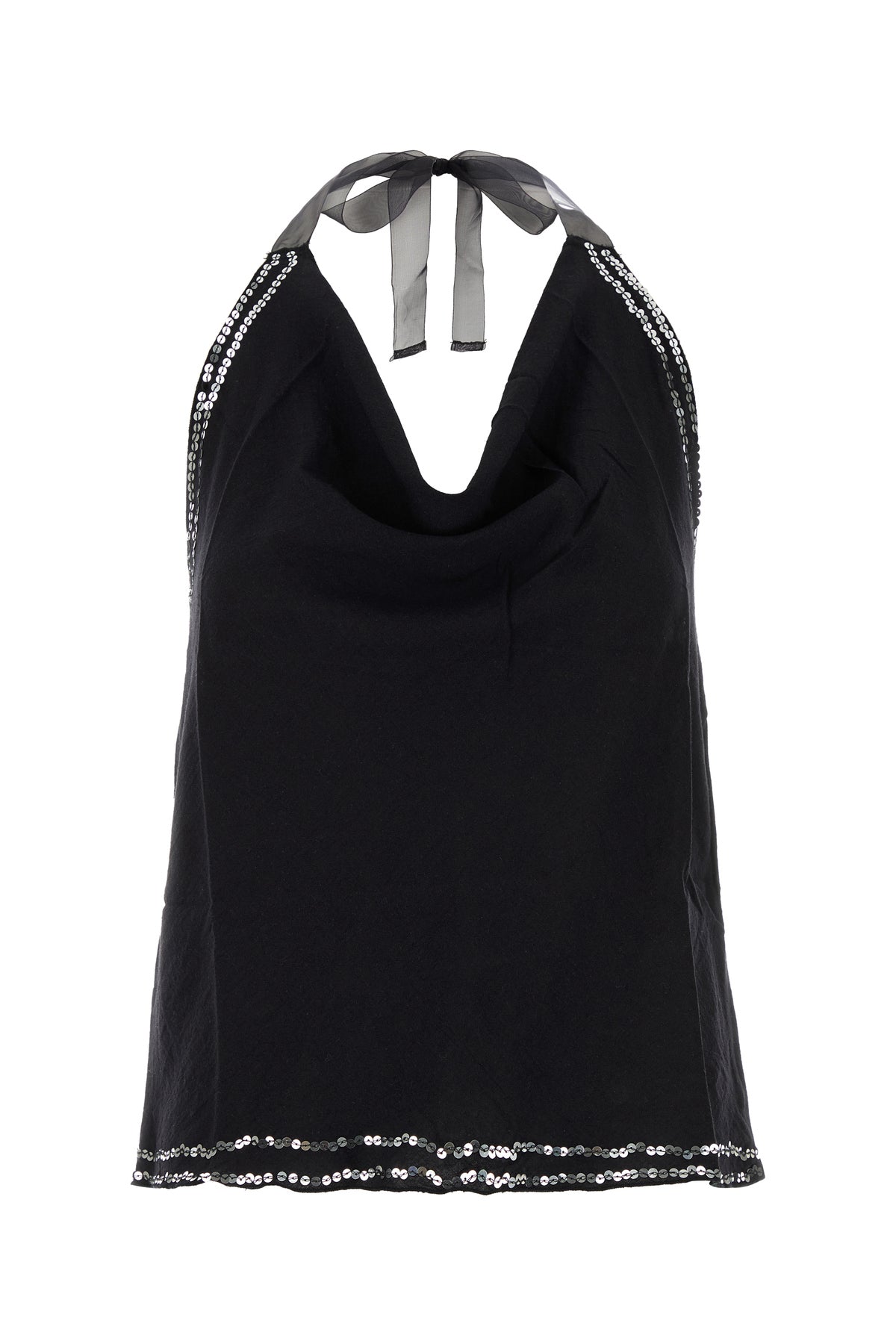 Top realized in pure cotton enriched by sequins on the trimmings.