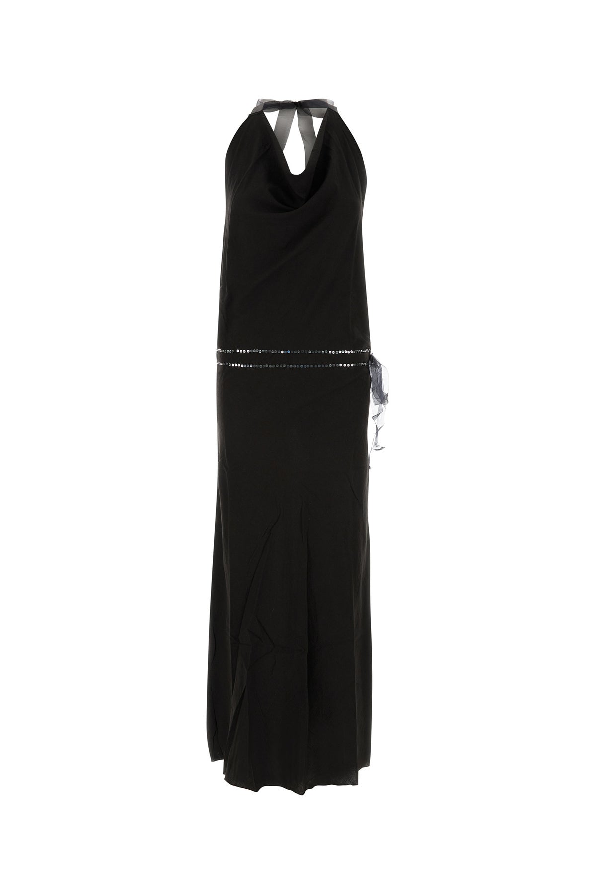 Long-cut dress realized in pure cotton enriched by sequins at the waist.