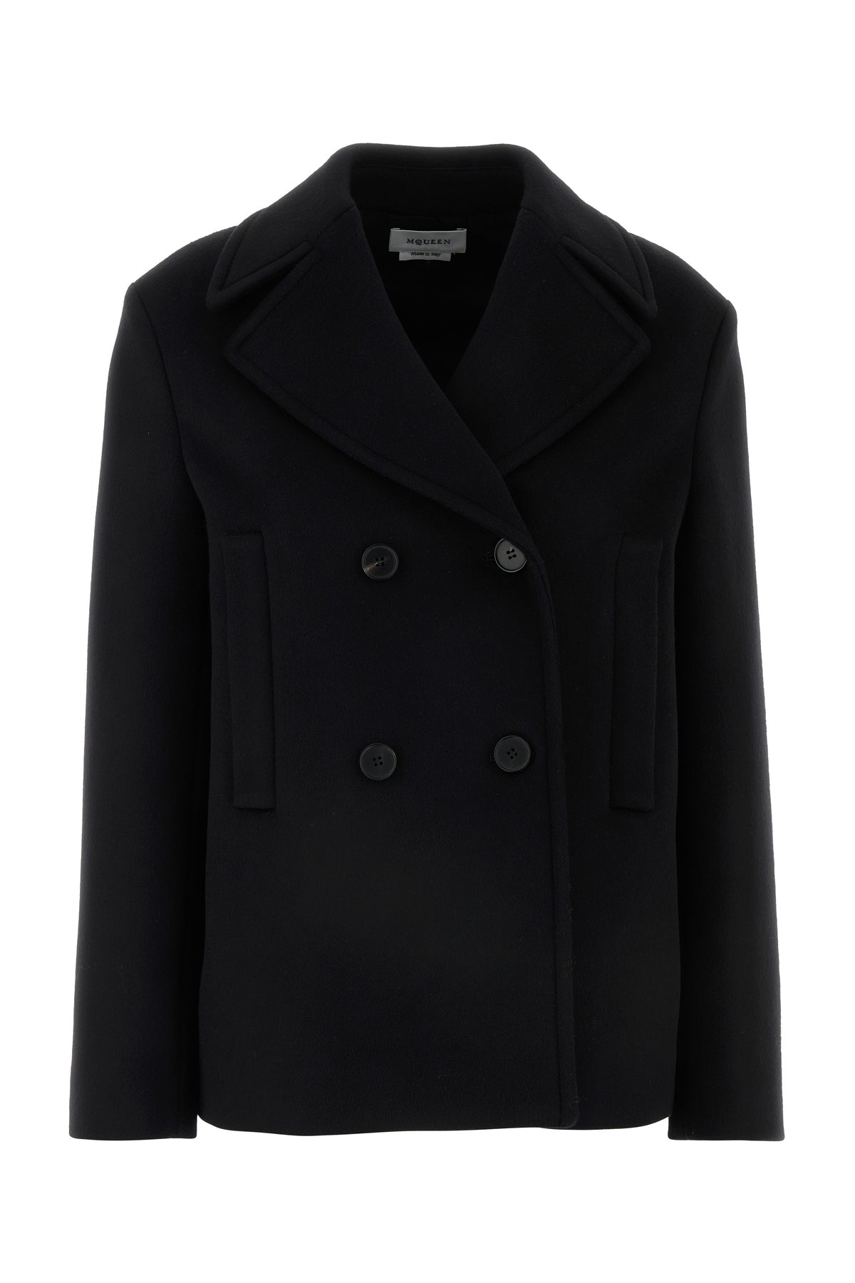- Double-breasted closure by buttons