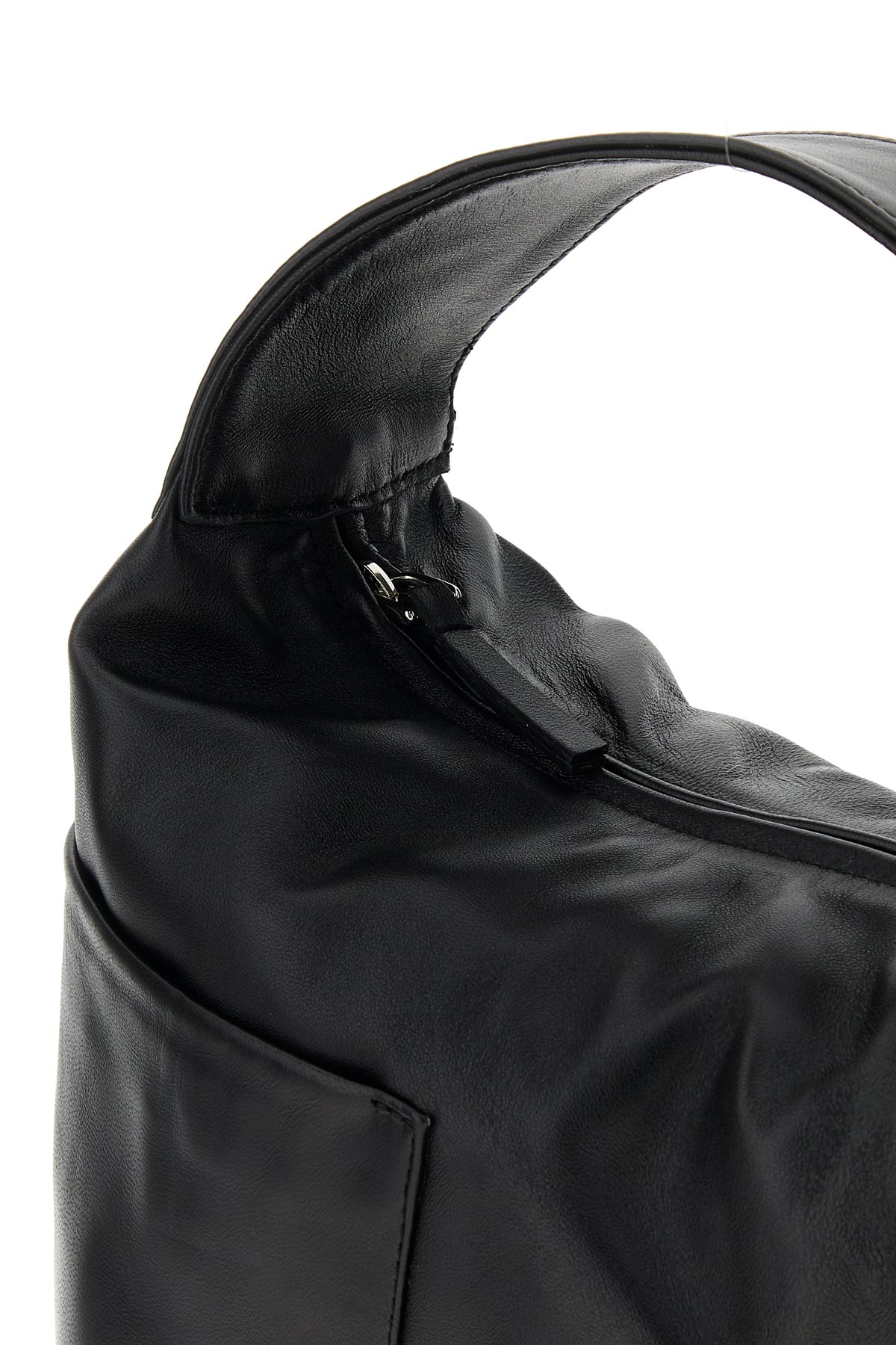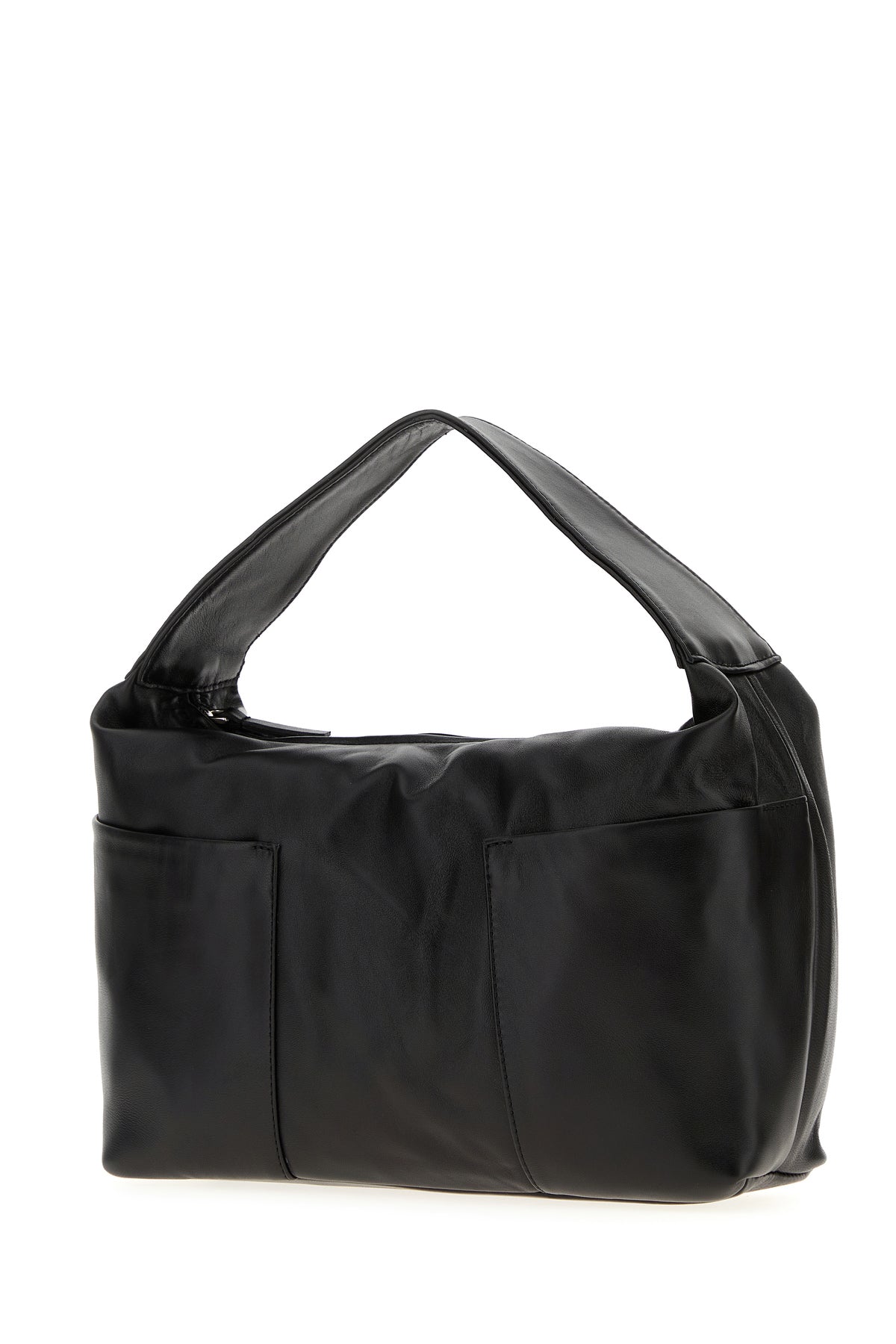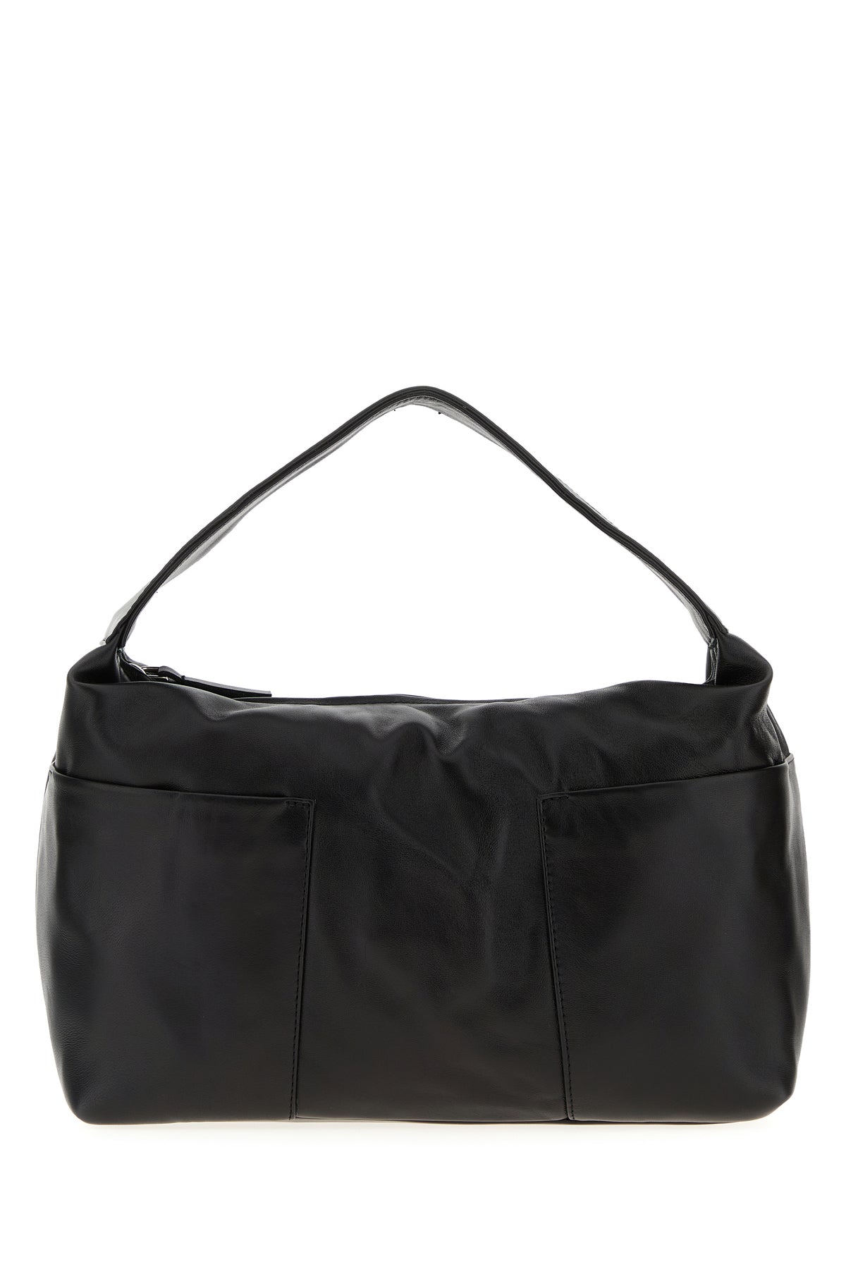 Shoulder bag realized in slightly pebble leather characterized by embossed logo at the back.