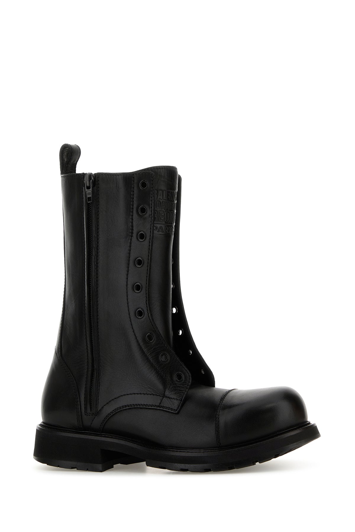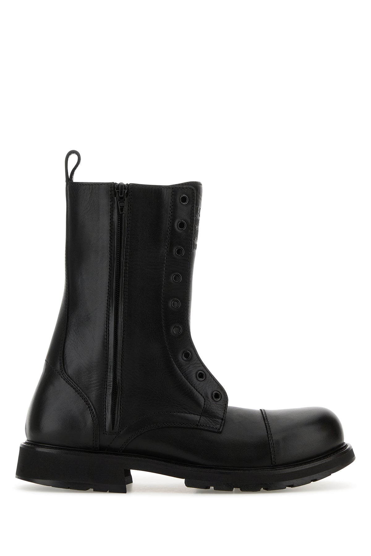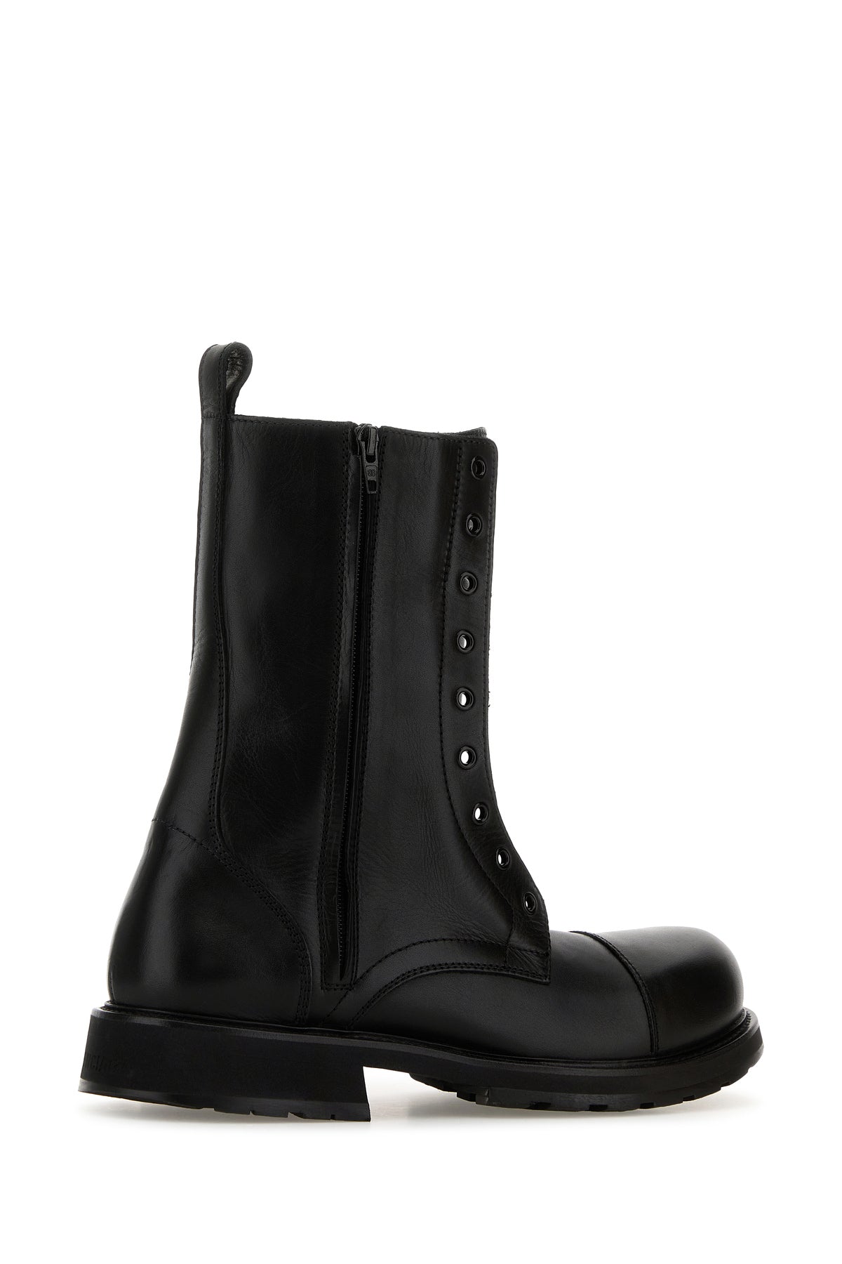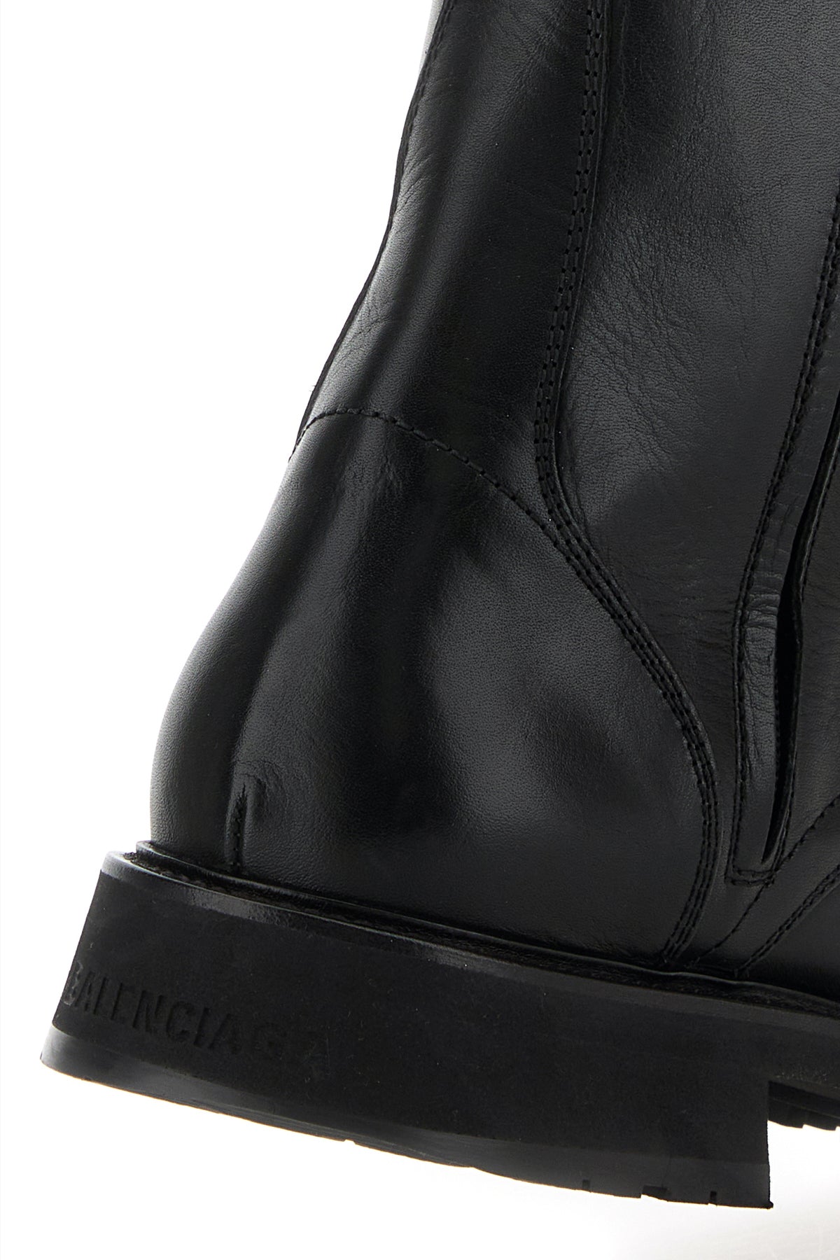 Boots realized in bovine leather characterized by embossed logo at the top and on the heel.