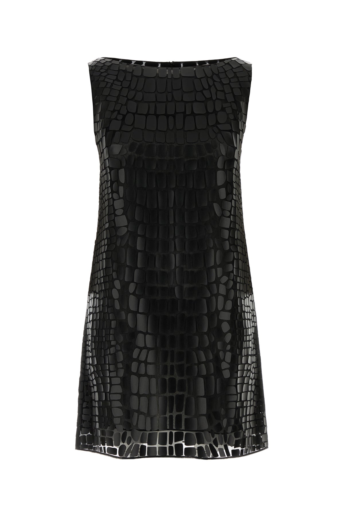 Mini dress realized in pure silk enriched by crocodile motif embellishment on the entire surface.