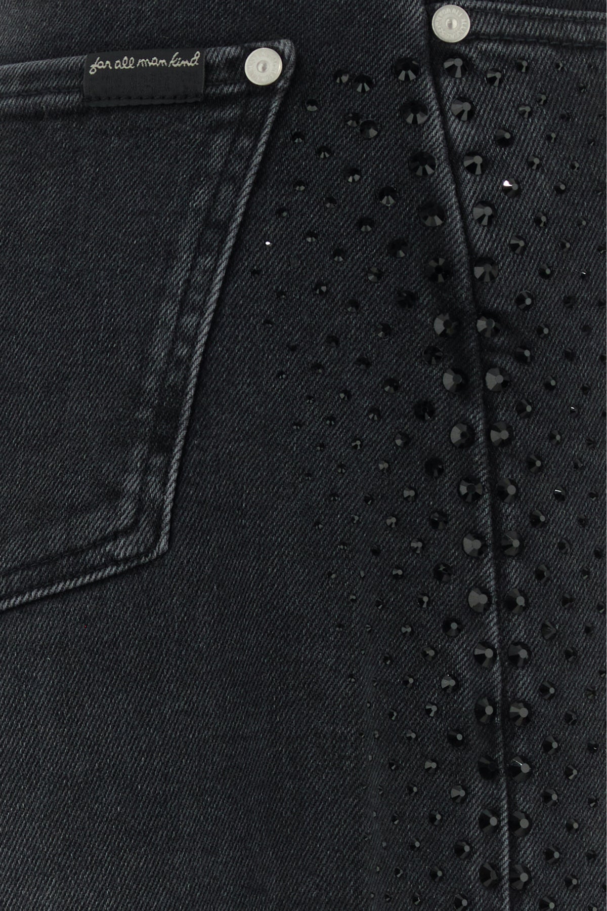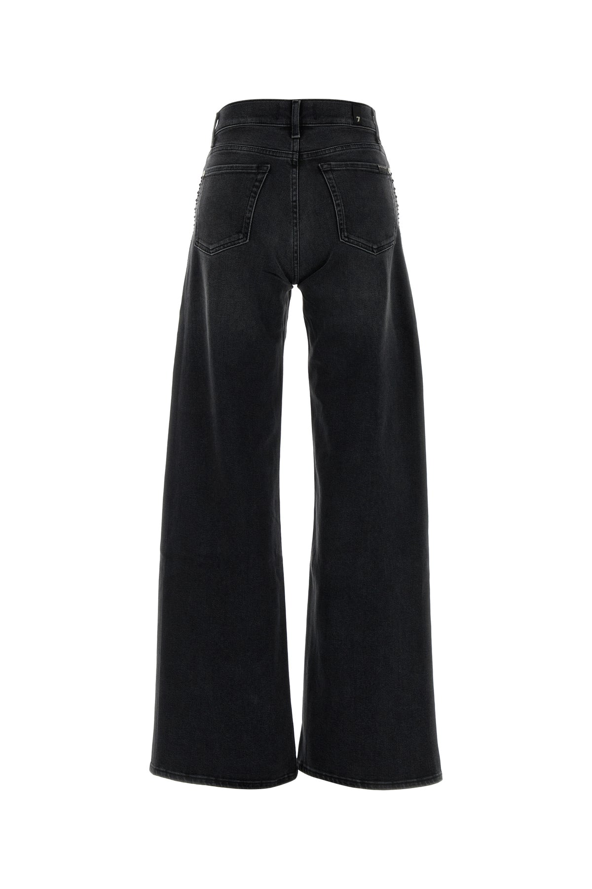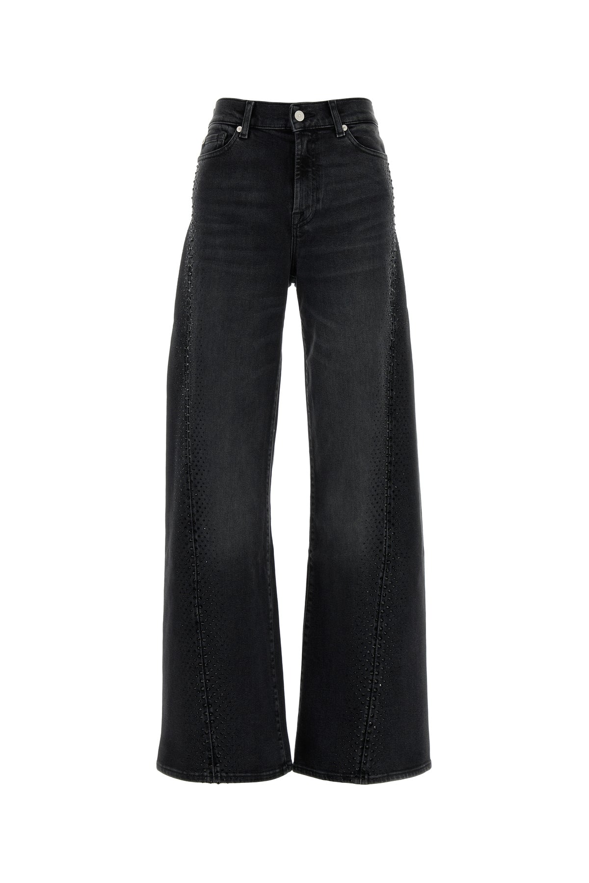 Wide-leg jeans realized in stonewashed stretch denim enriched by rhinestones on the sides.