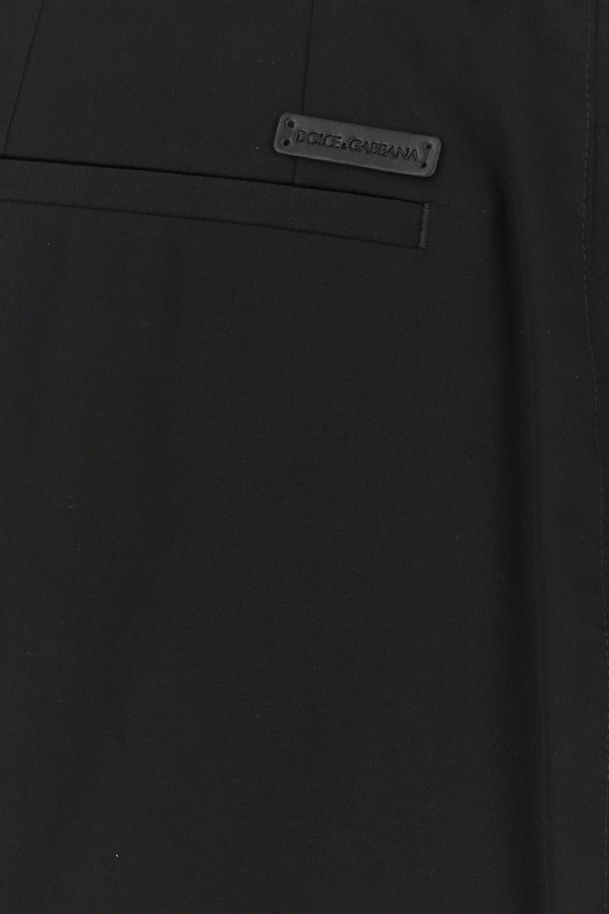 Pant realized in stretch cotton gabardine enriched by tonal leather logoed label at the back.