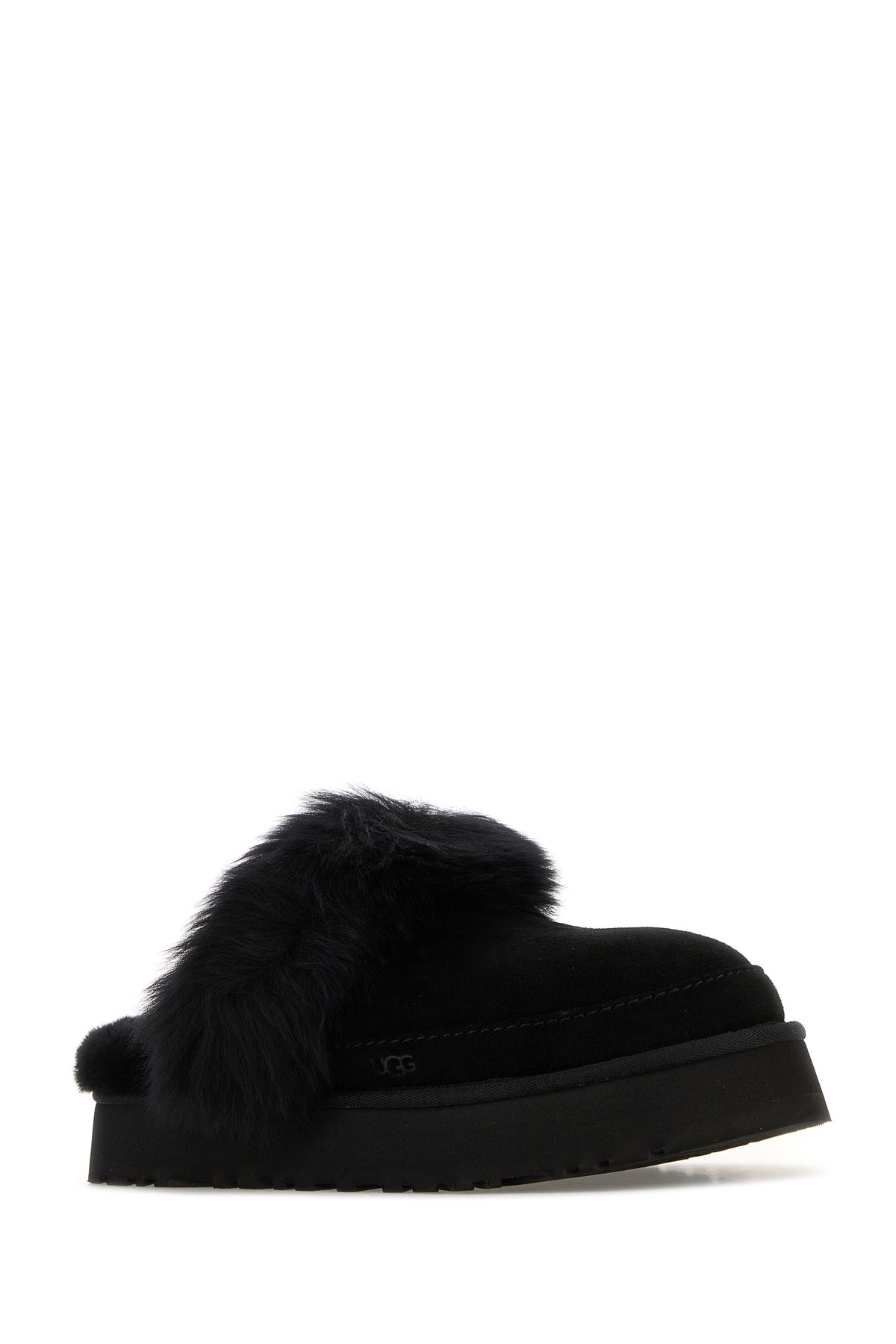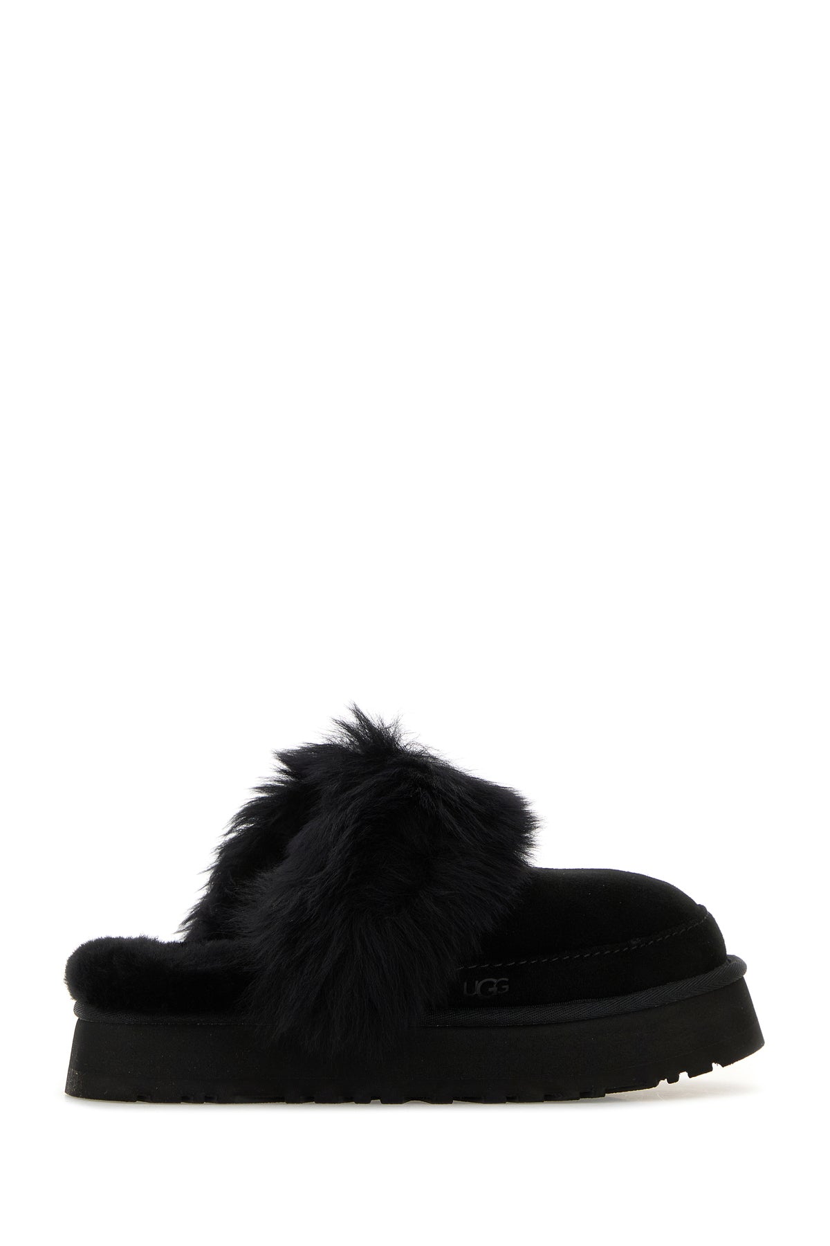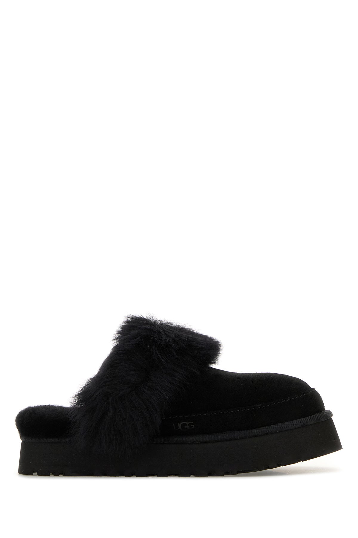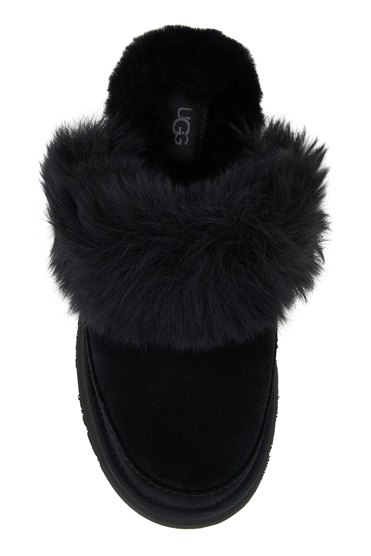 Slippers realized in suede with tonal shearling insert characterized by embossed logo on the side.
