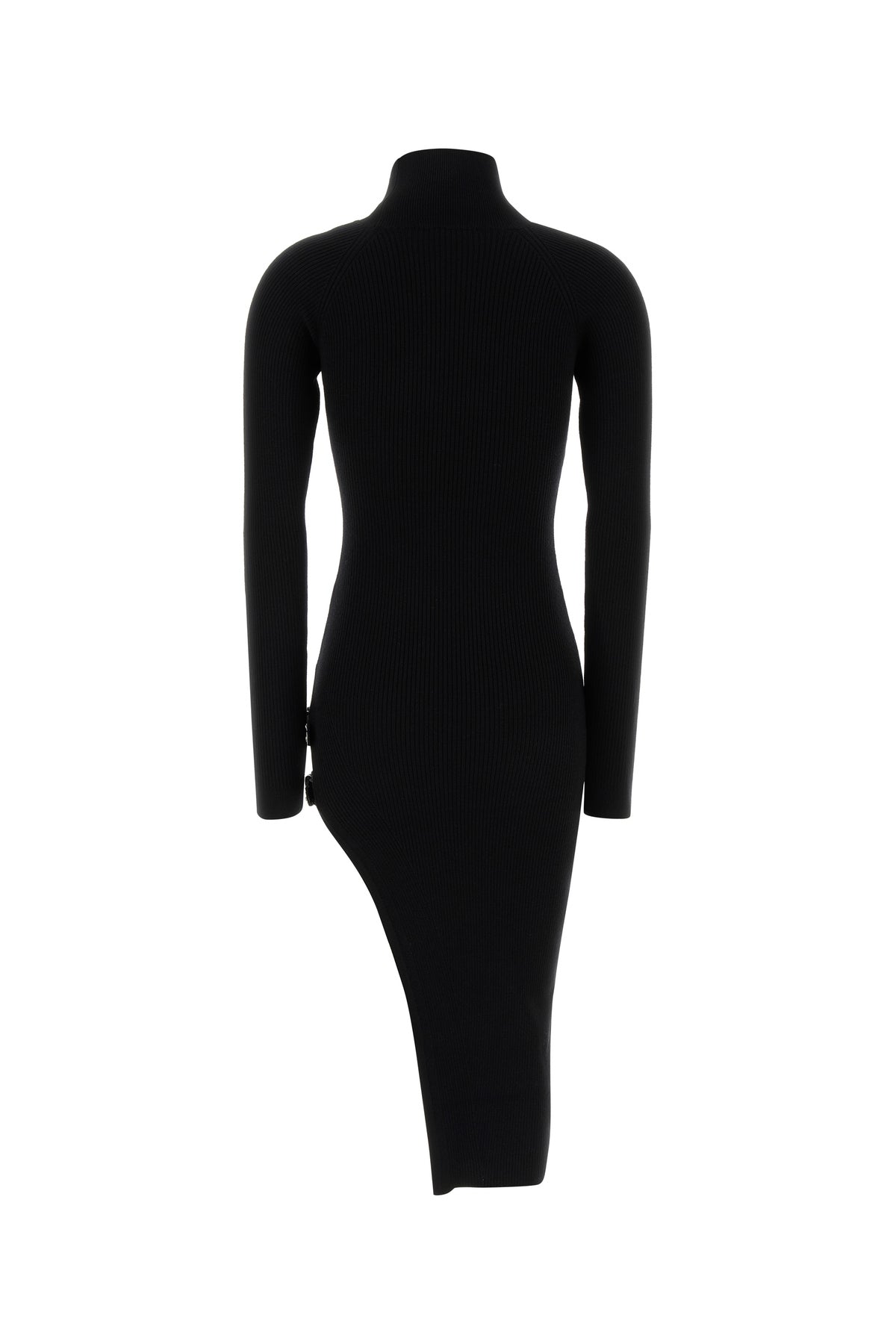 Fitted midi-length dress realized in ribbed pure virgin wool enriched by adjustable leather straps with metal details on the side.