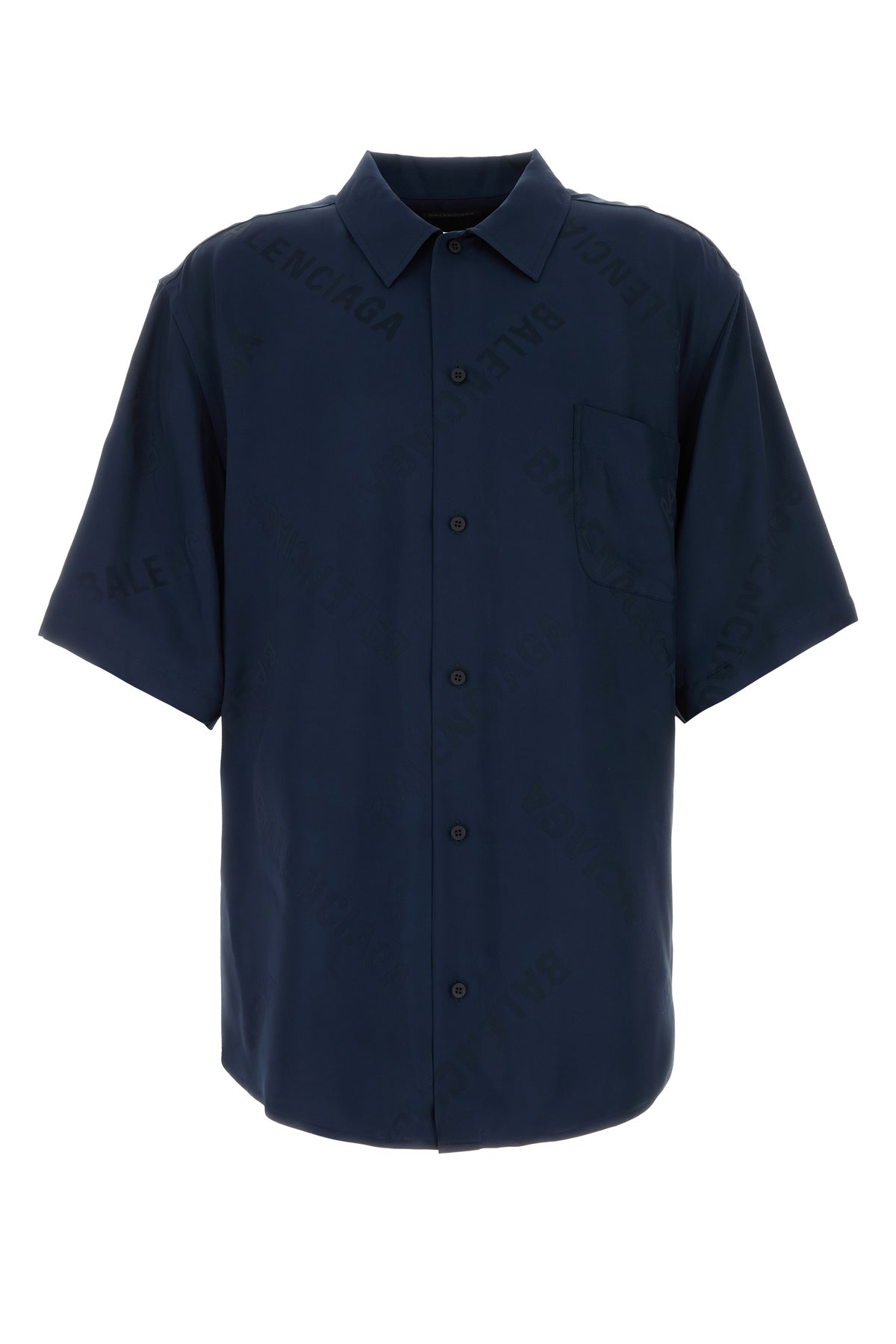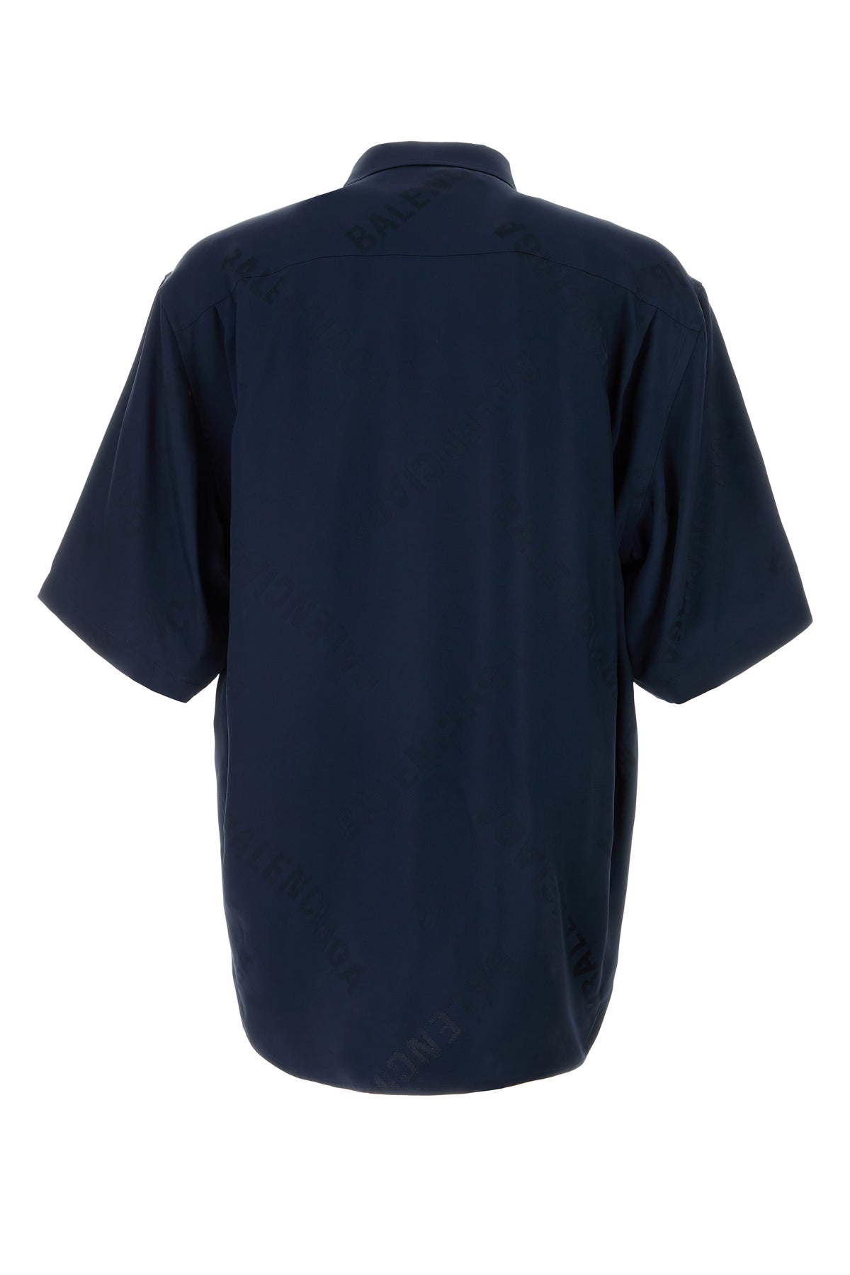 Short-sleeve oversize shirt realized in viscose characterized by tonal Balenciaga embroidery on the entire surface.