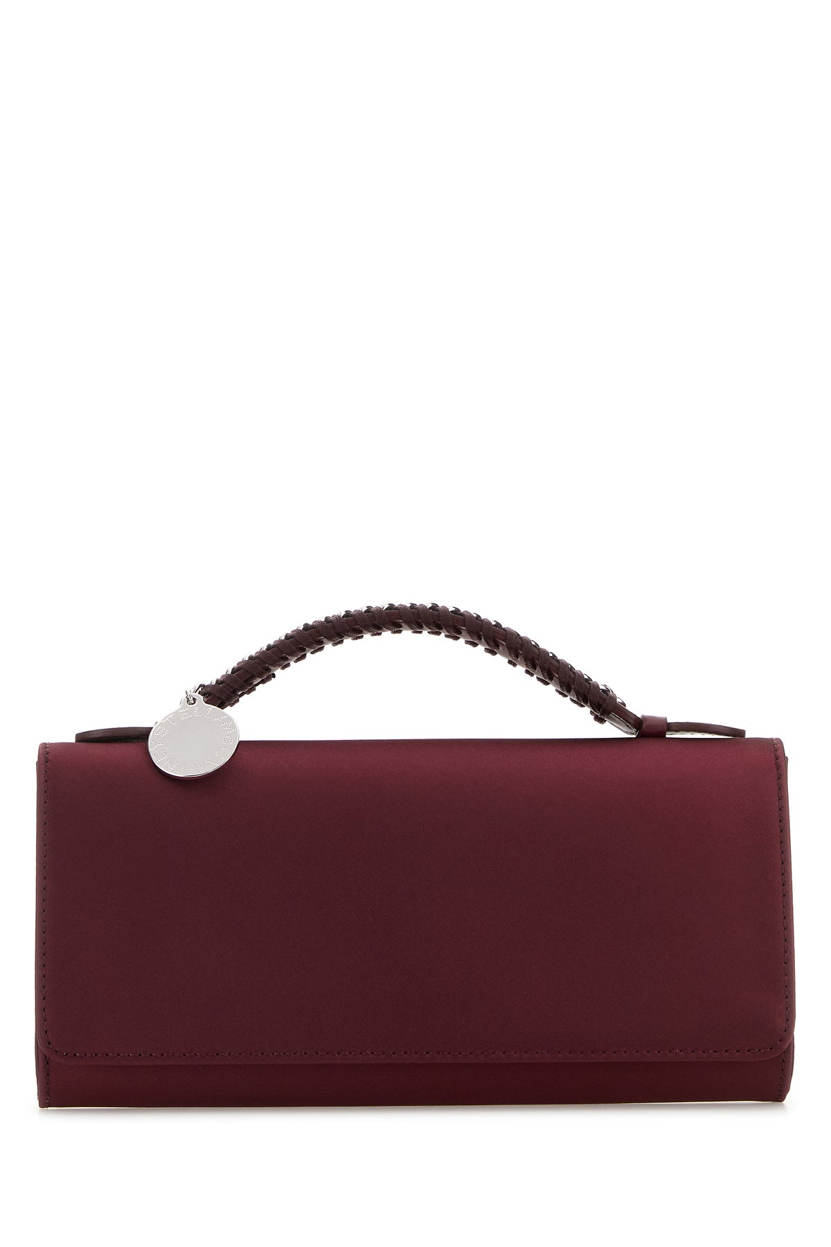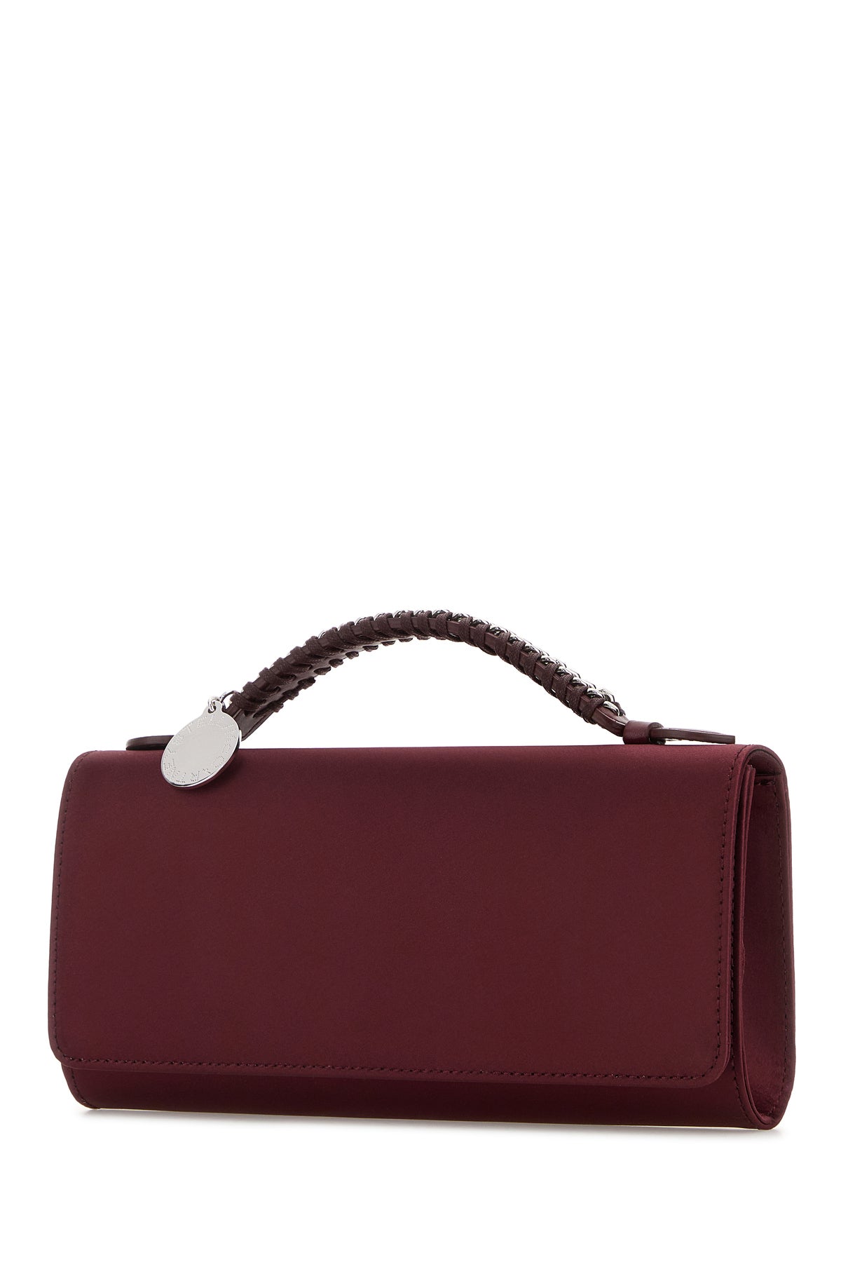 Handbag realized in satin enriched by logoed metal detail at the top.