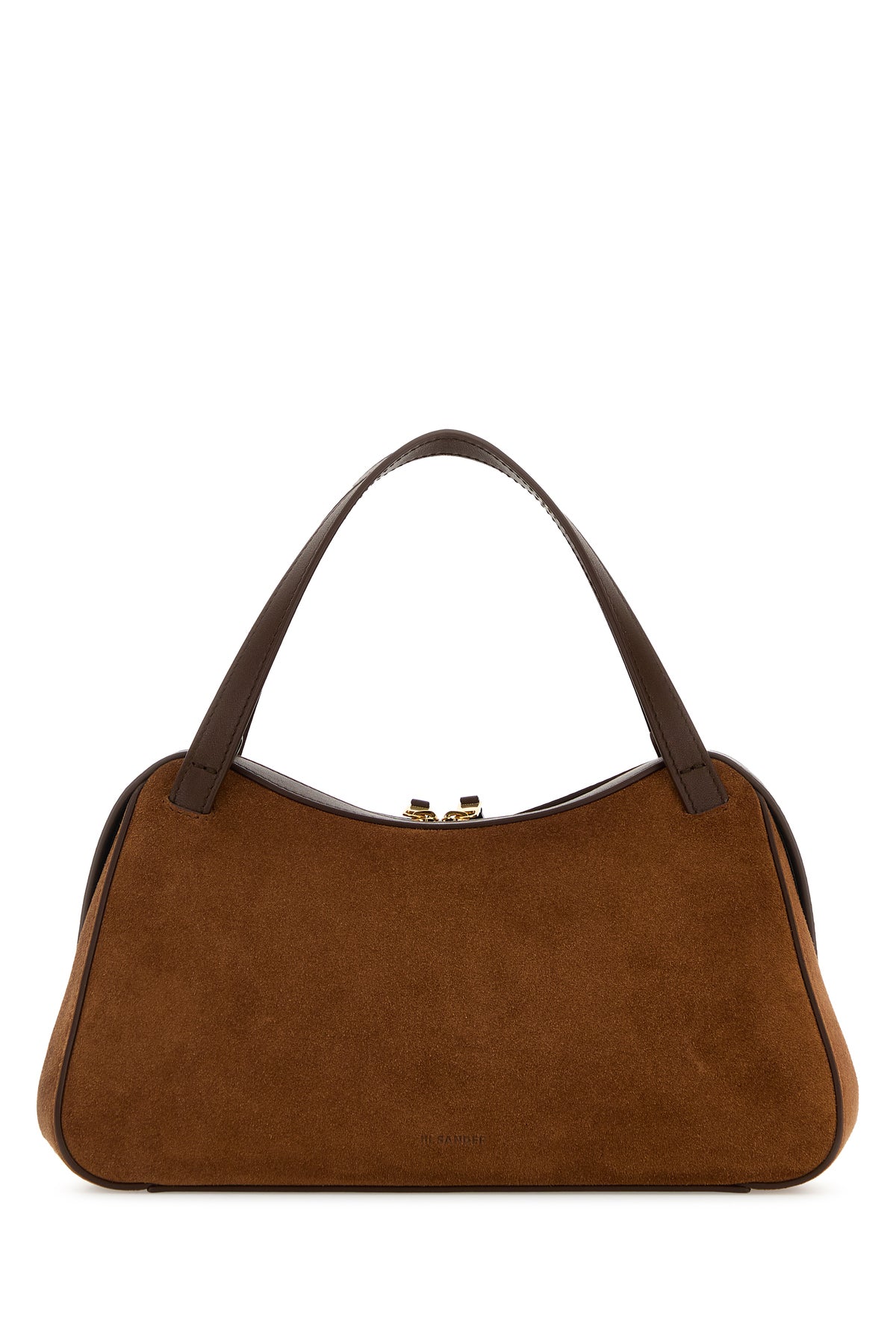 Handbag realized in calf suede characterized by embossed logo at the front.