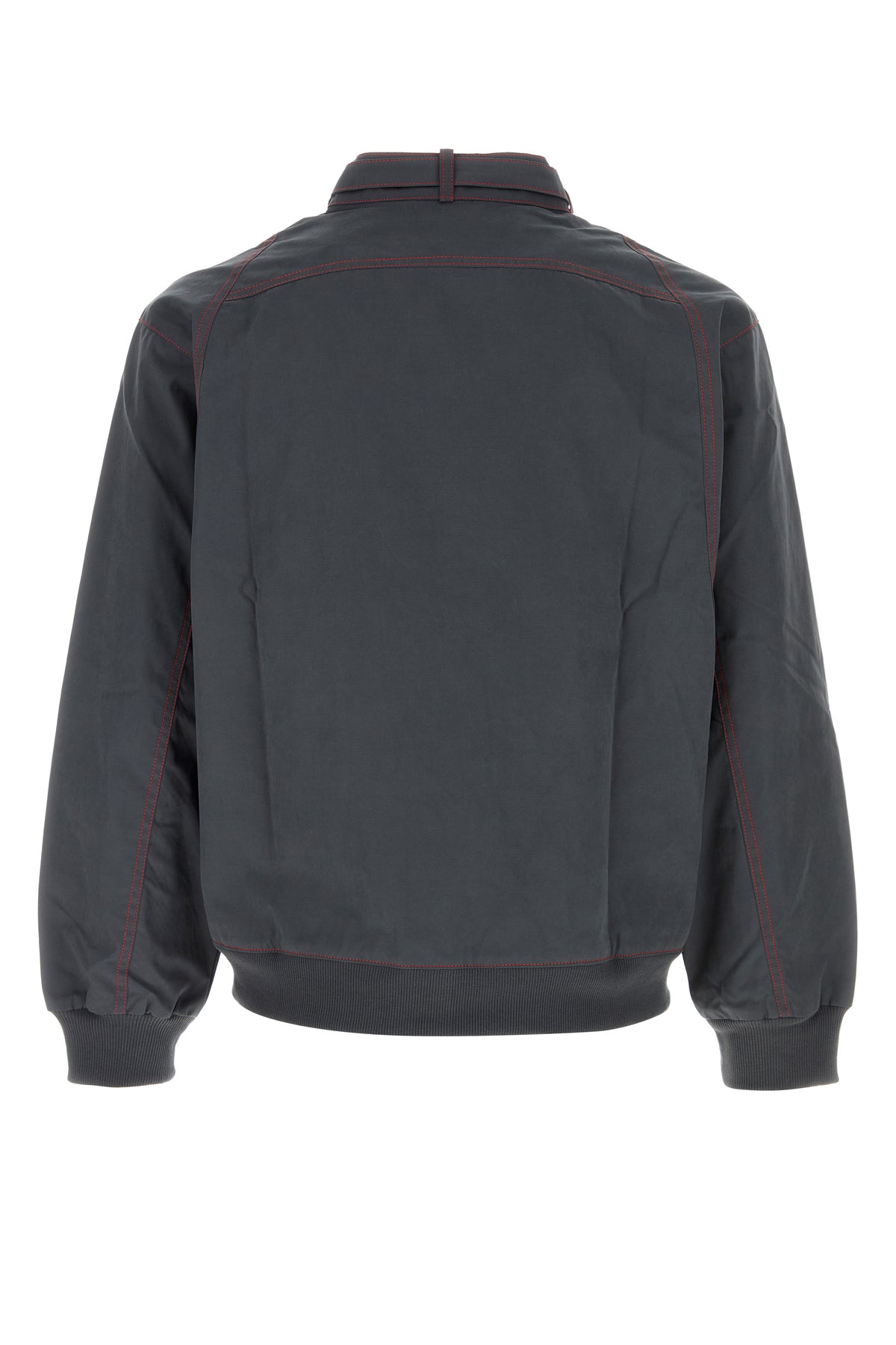 Bomber jacket realized in polyester blend characterized by contrasting stitchings.