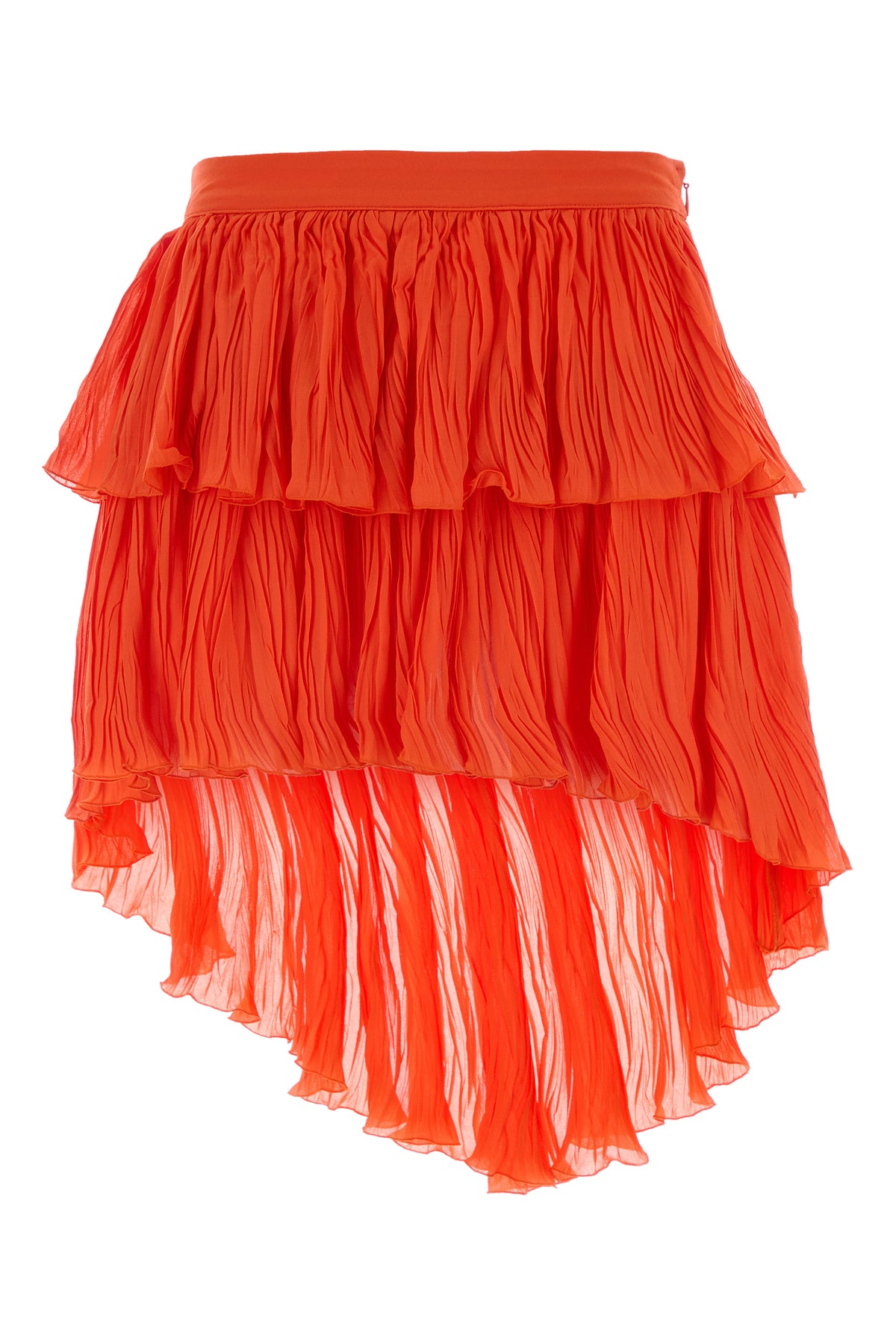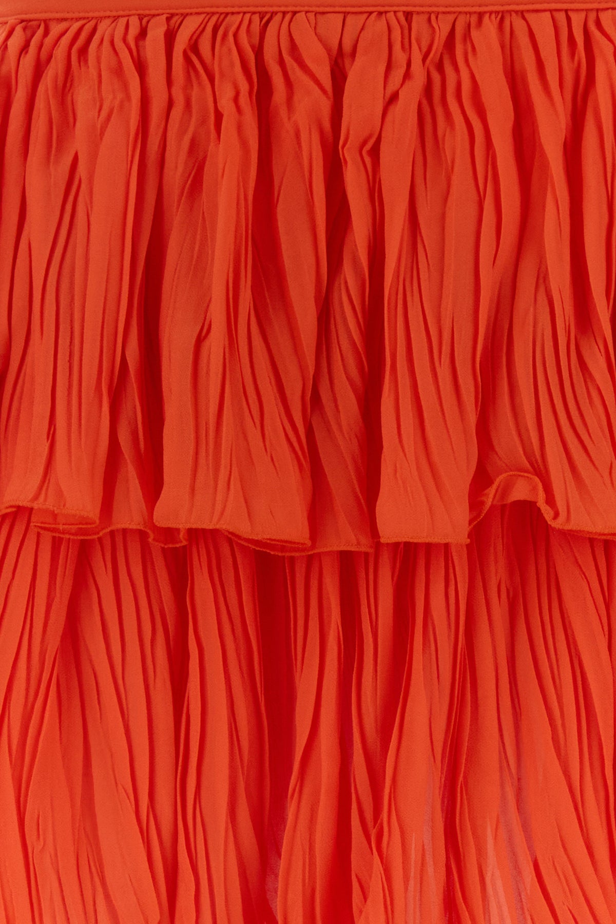Pleated mini skirt realized in viscose crepe characterized by flounces.