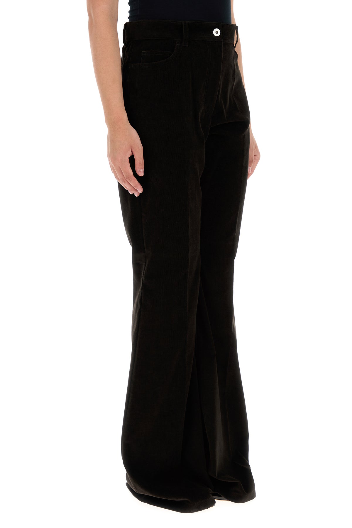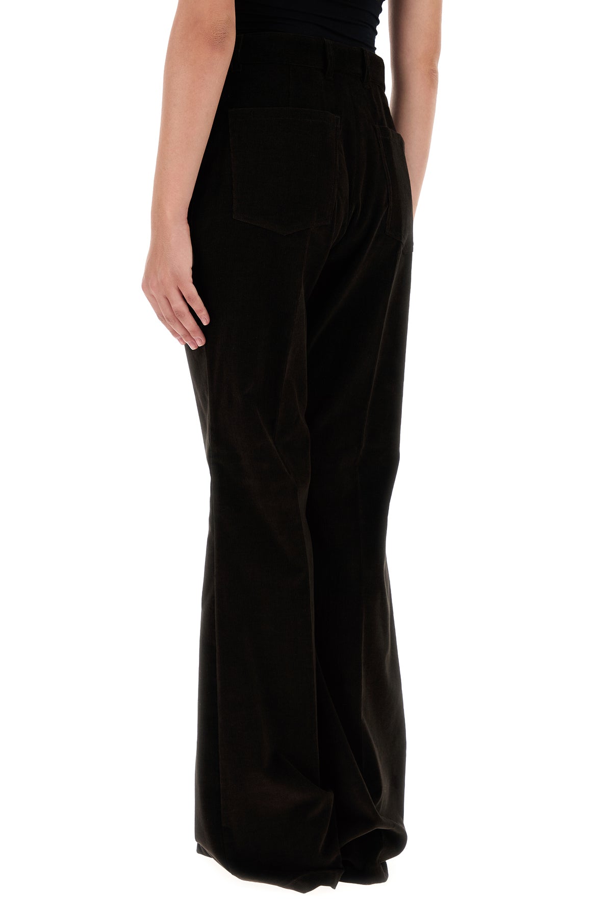 Flared pant realized in stretch cotton corduroy characterized by central ironed pleats.