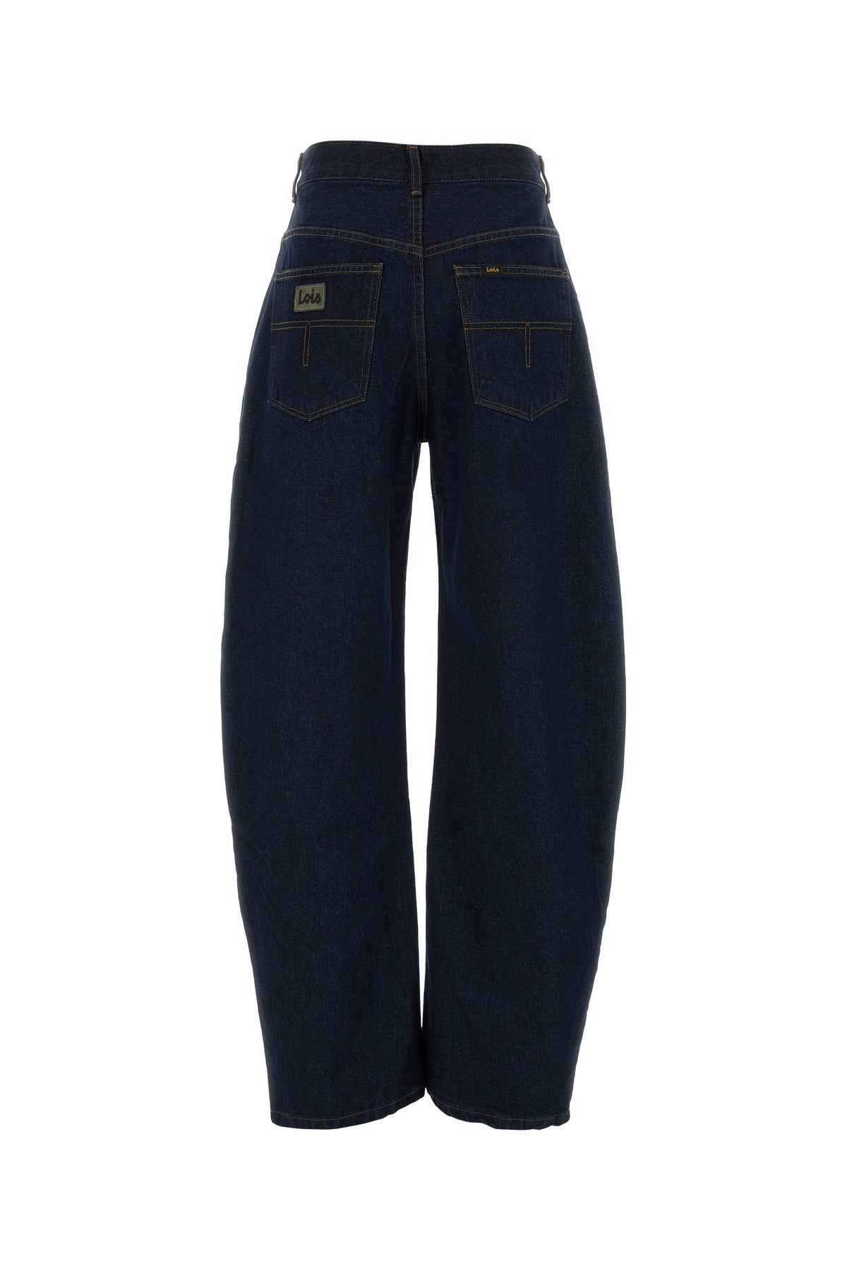 Jeans realized in pure cotton denim enriched by contrasting logoed label at the back.