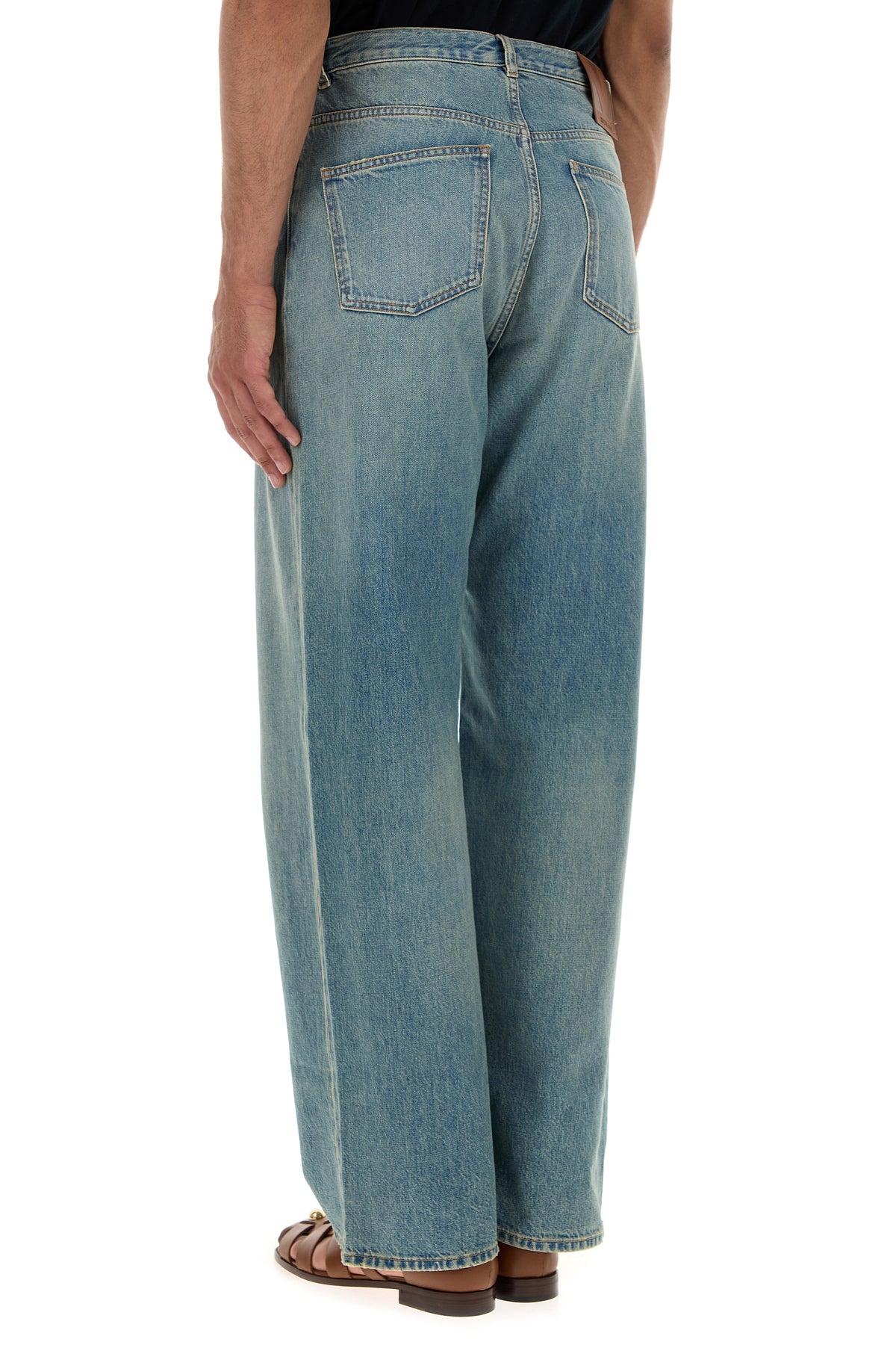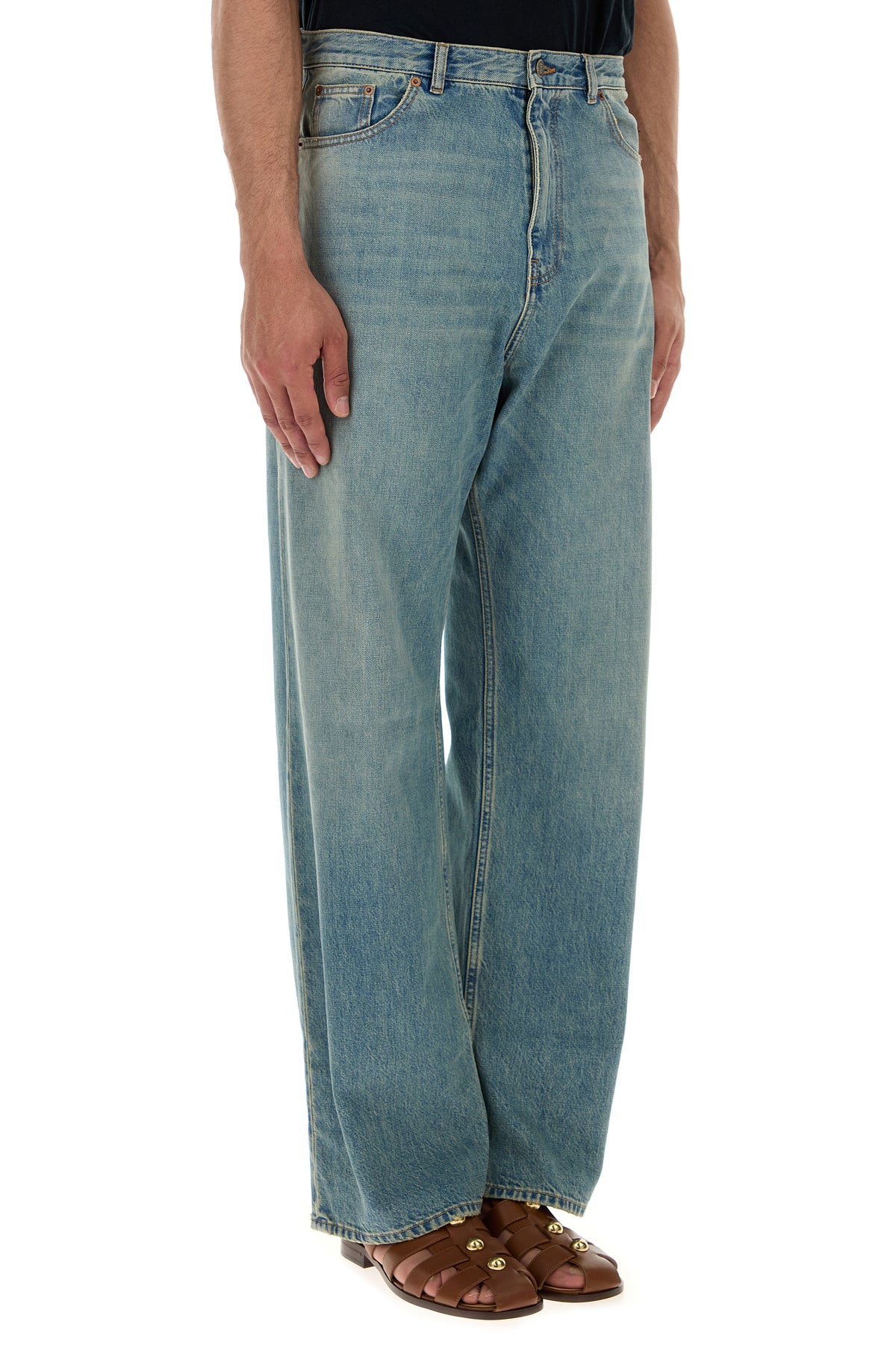 Jeans realized in stonewashed pure cotton denim enriched by contrasting logoed label at the back.