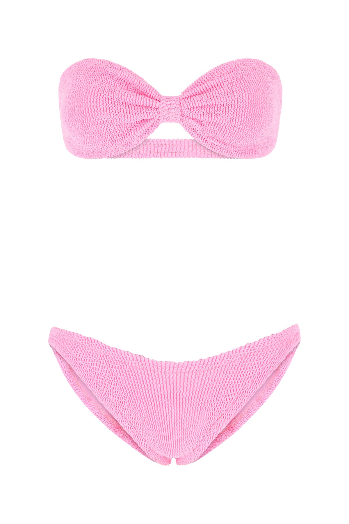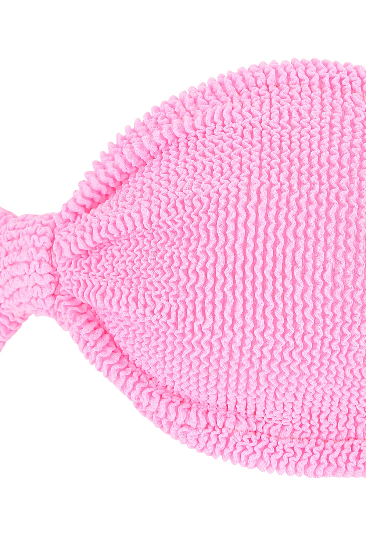 Bikini realized in embossed stretch nylon enriched by decorative bow at the front.