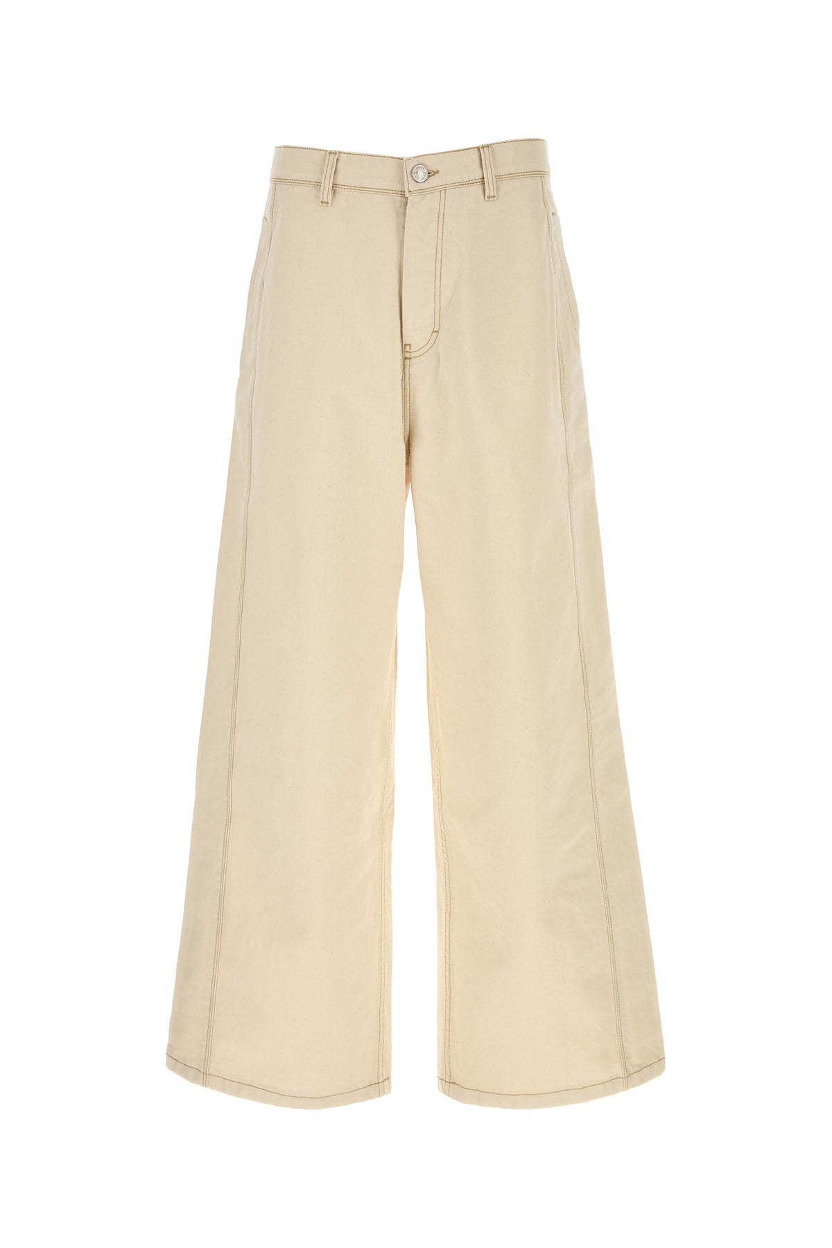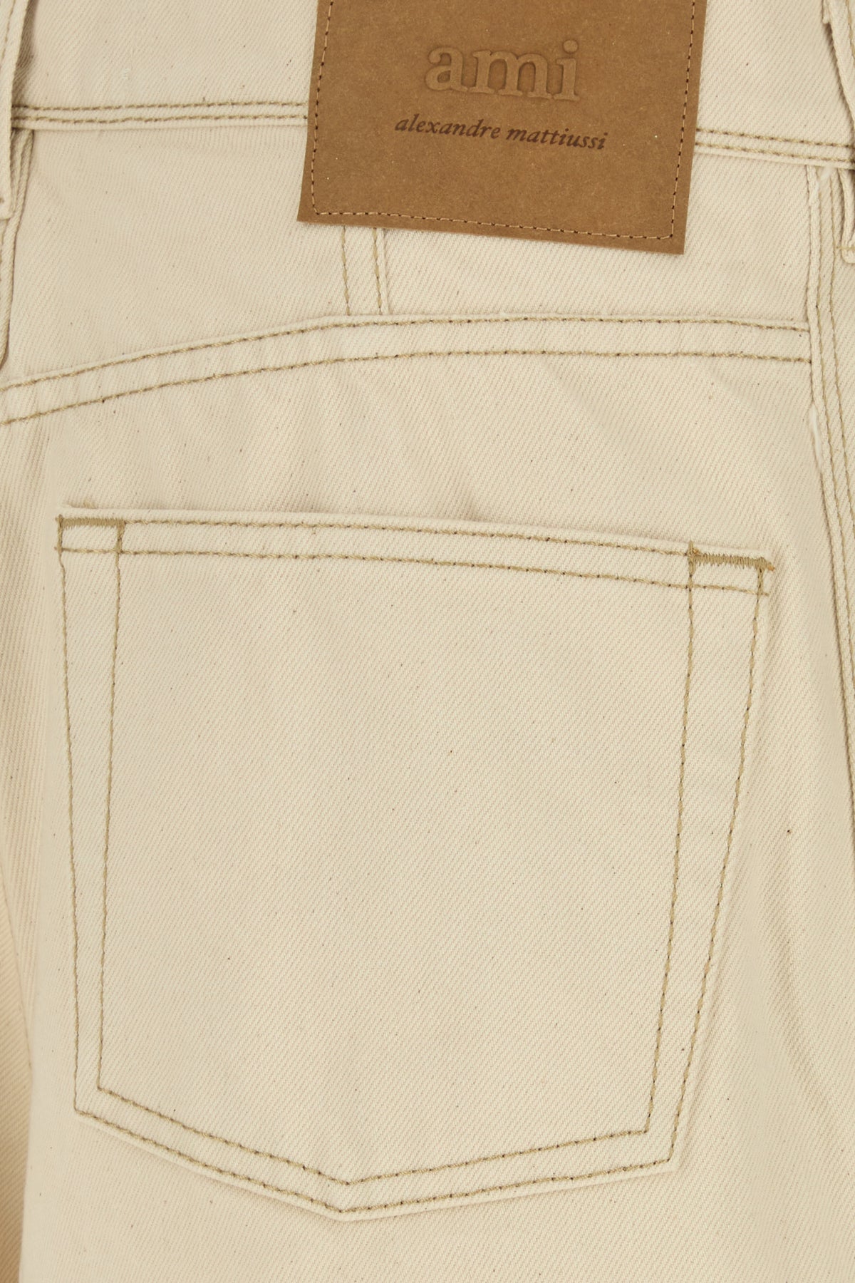 Wide-leg jeans realized in pure cotton denim enriched by logoed label at the back.