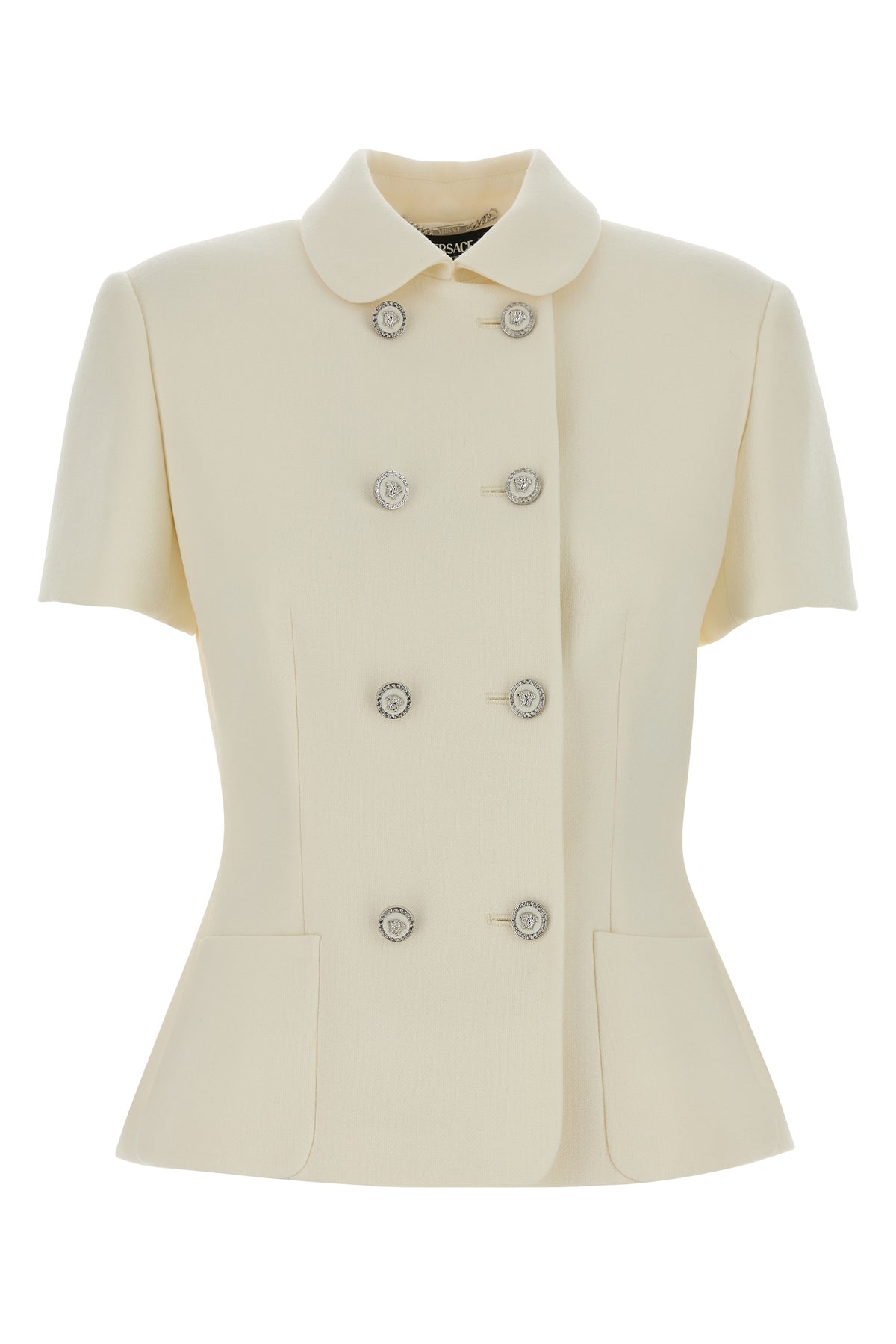 Short-sleeve blazer realized in pure wool characterized by double-breasted closure by Medusa '95 buttons.