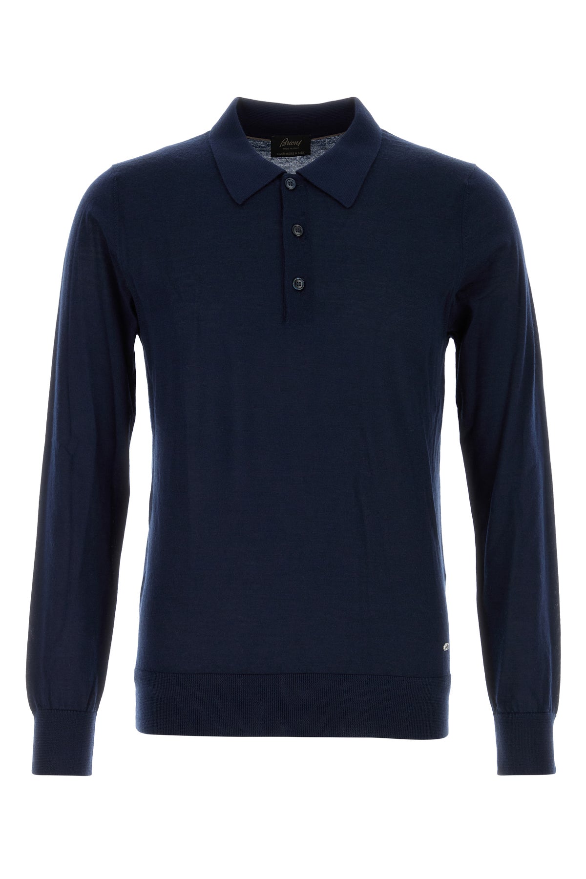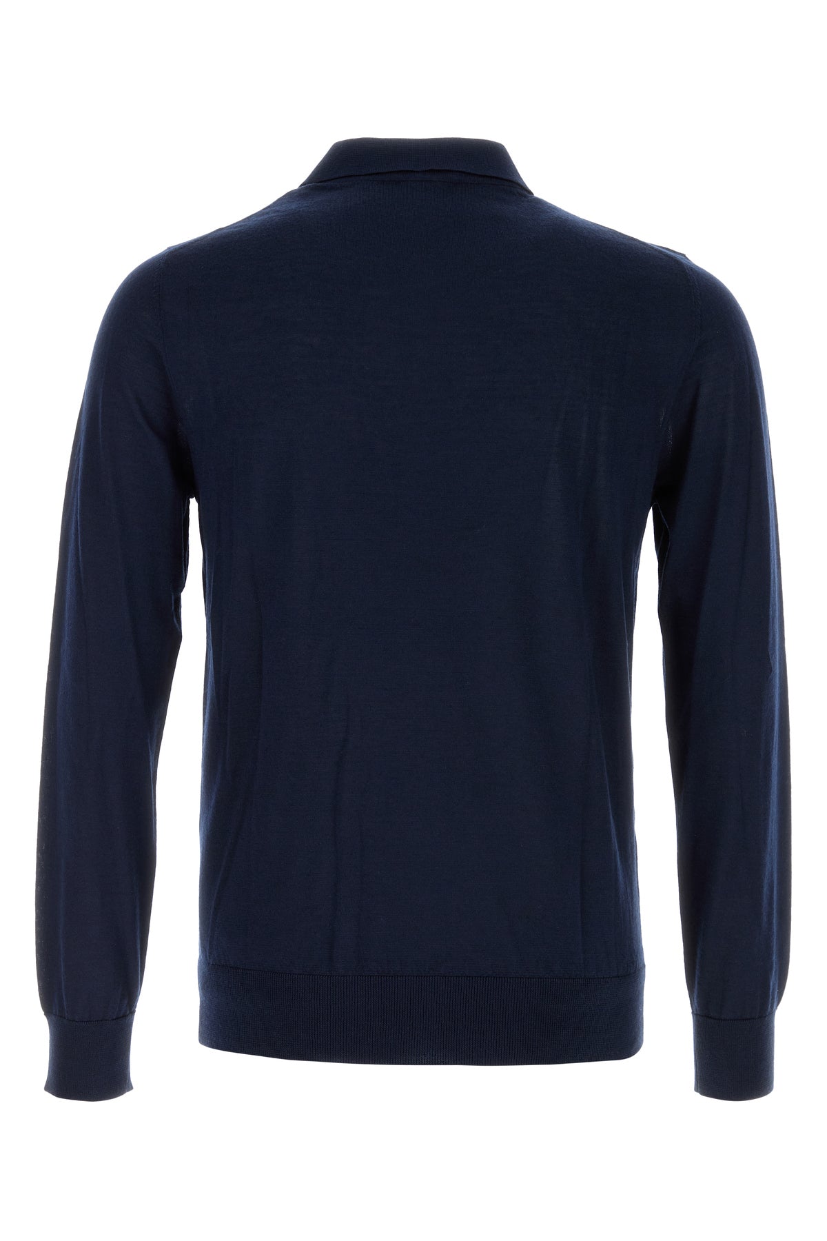 Long-sleeves polo shirt realized in cashmere and silk enriched by logoed metal plate on the hemline.