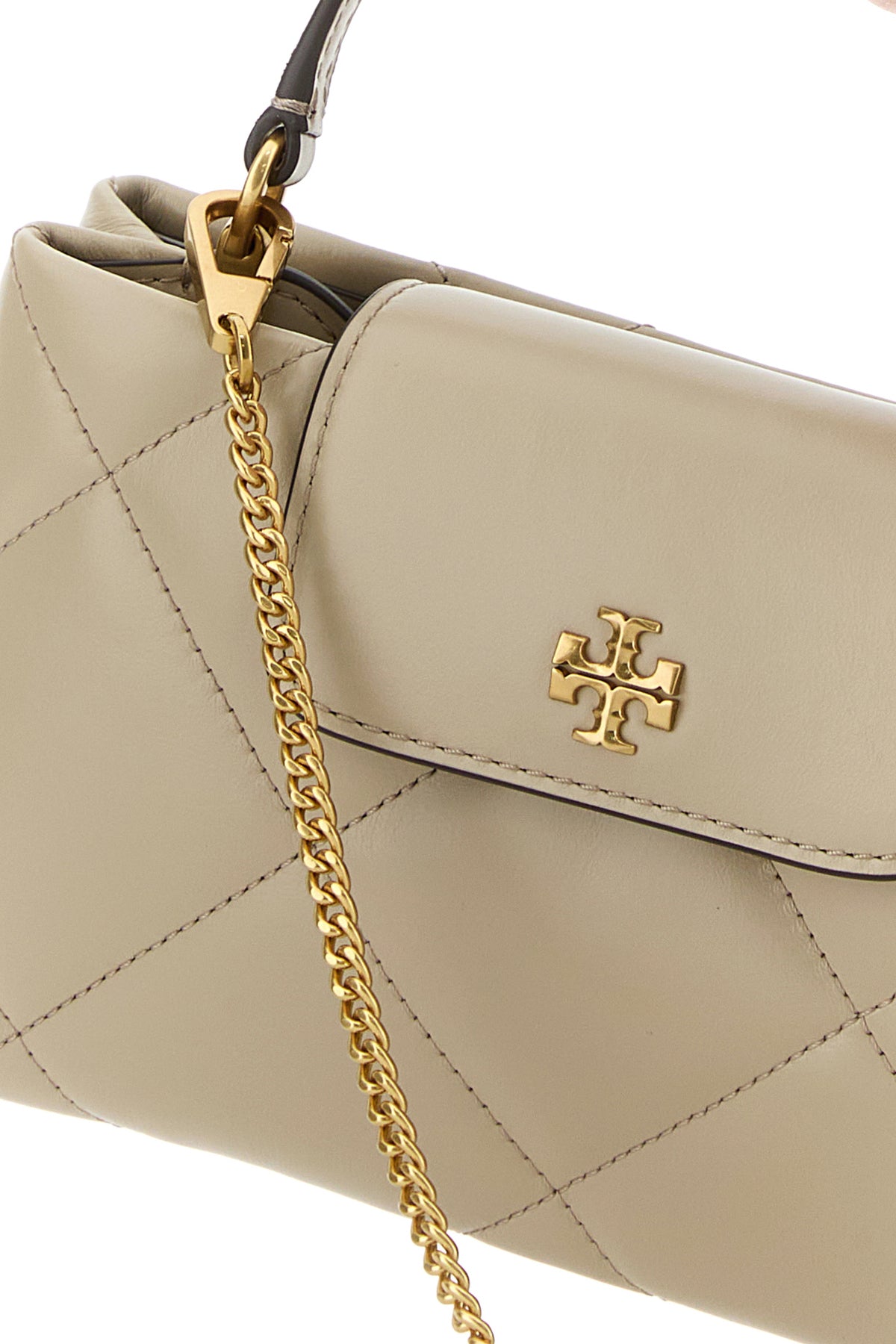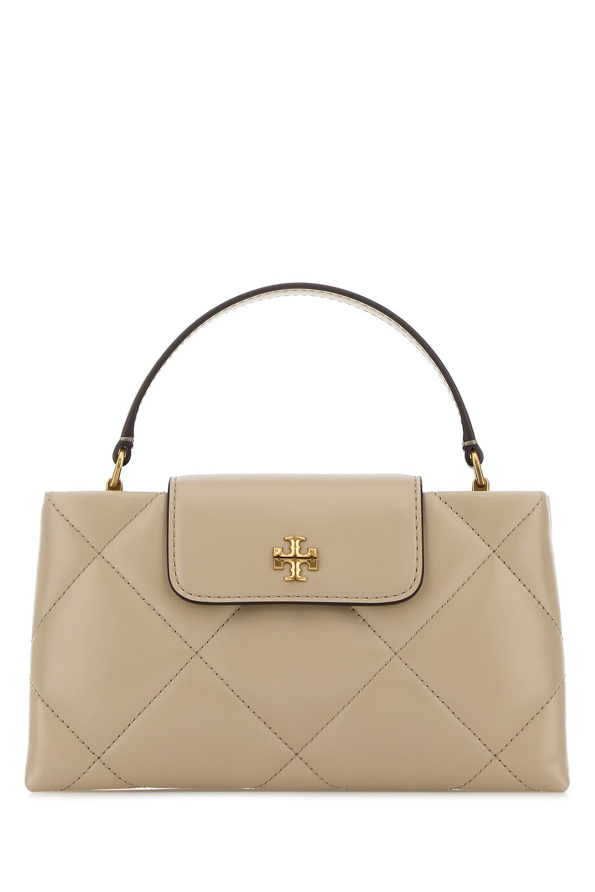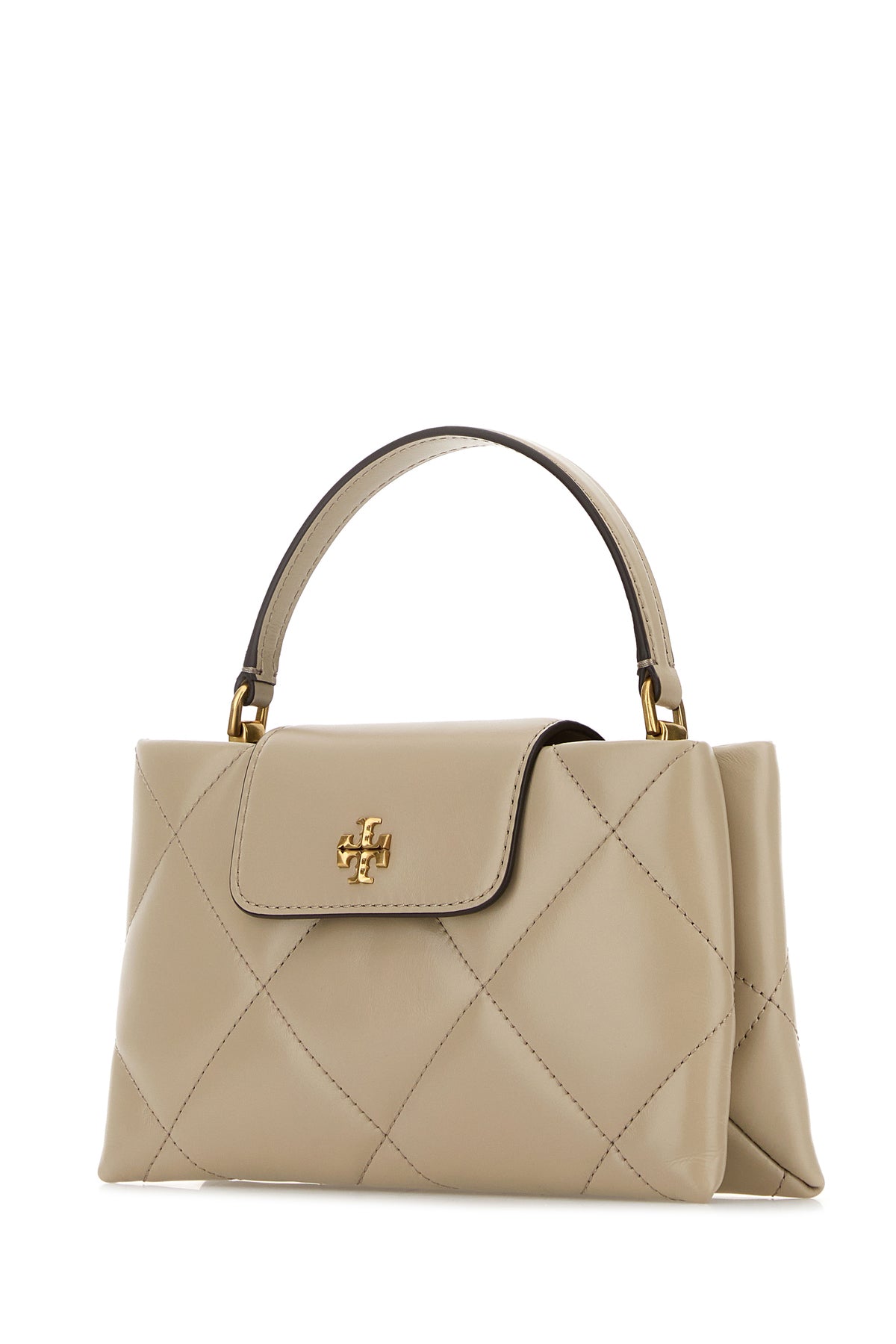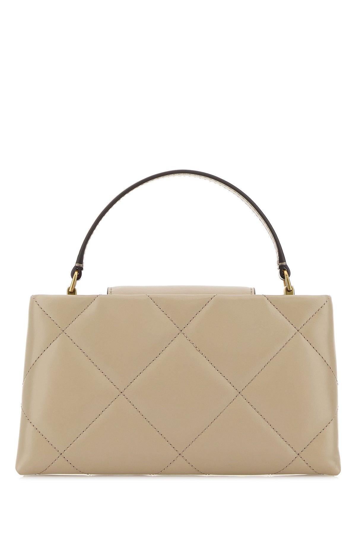 Handbag realized in quilted leather enriched by metal logoed detail at the front.