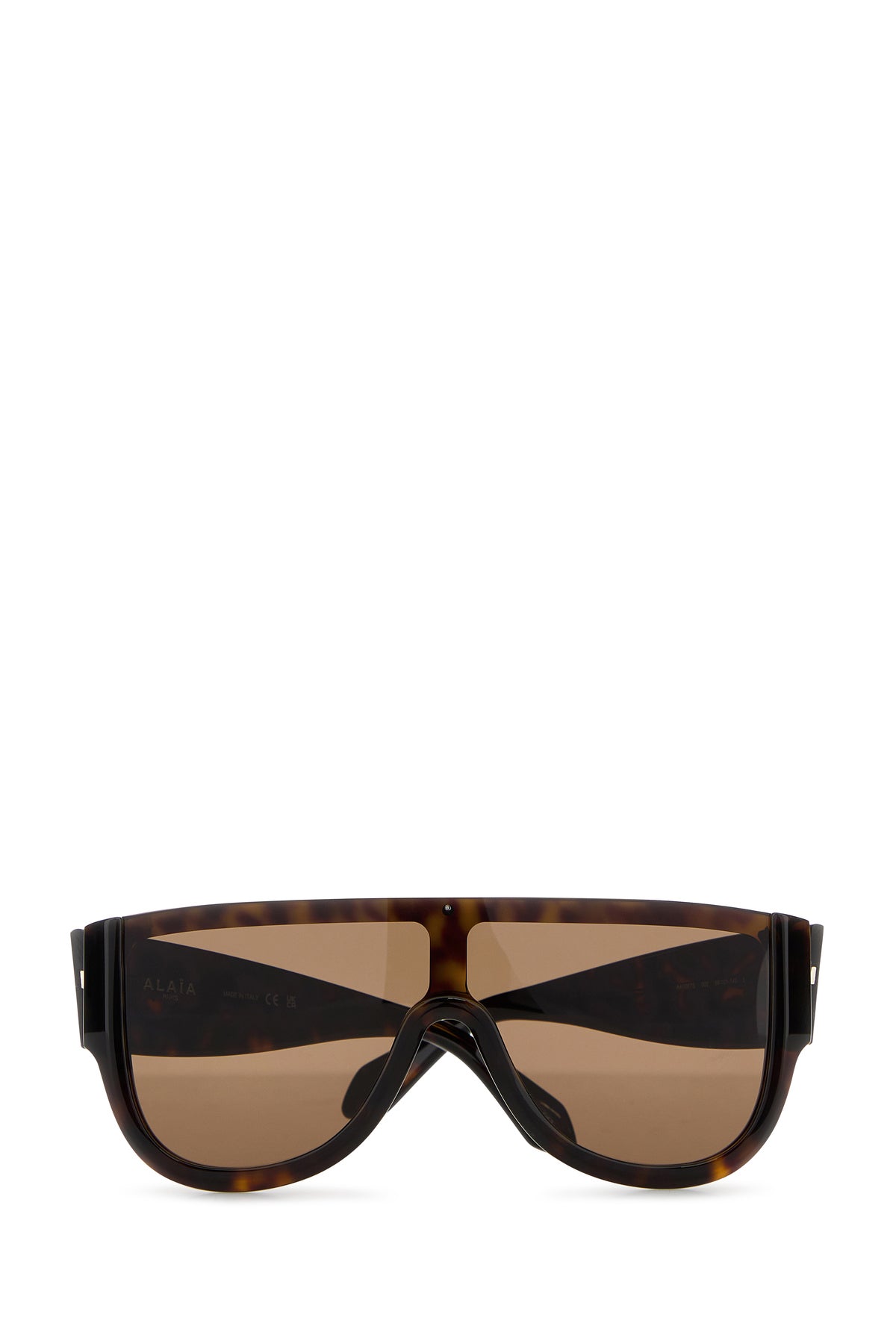 Sunglasses realized in acetate characterized by printed laminated logo on the arms.