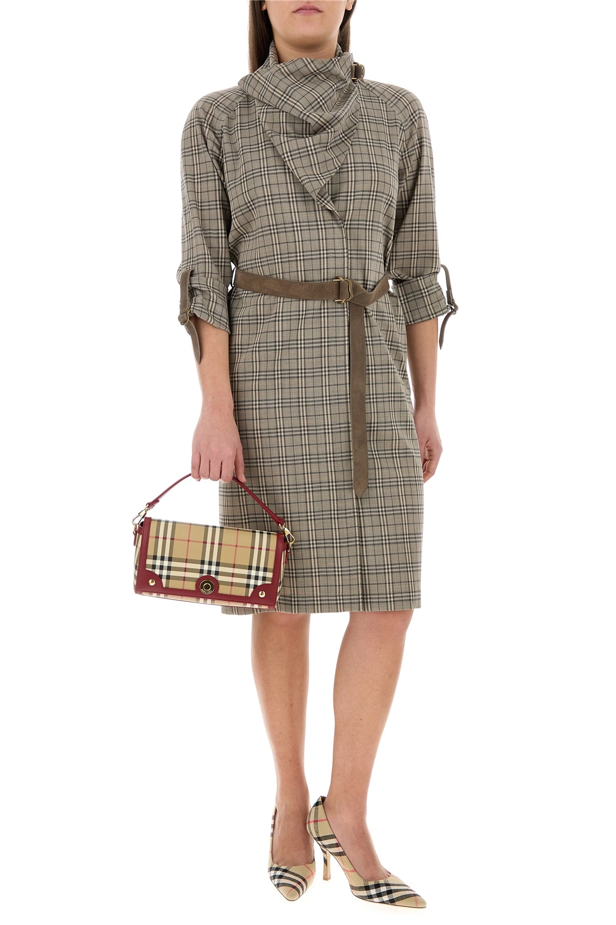 Handbag realized in coated canvas characterized by Burberry Check print on the entire surface.