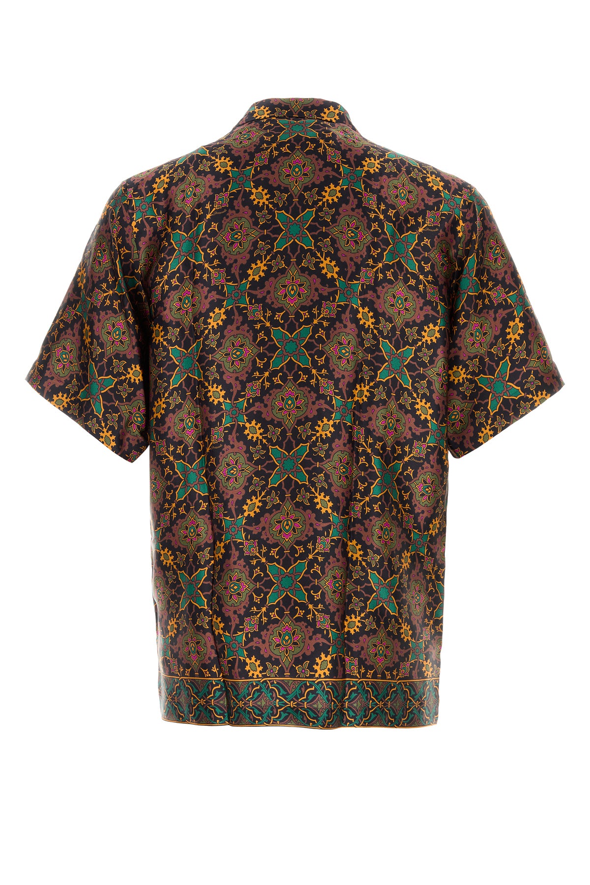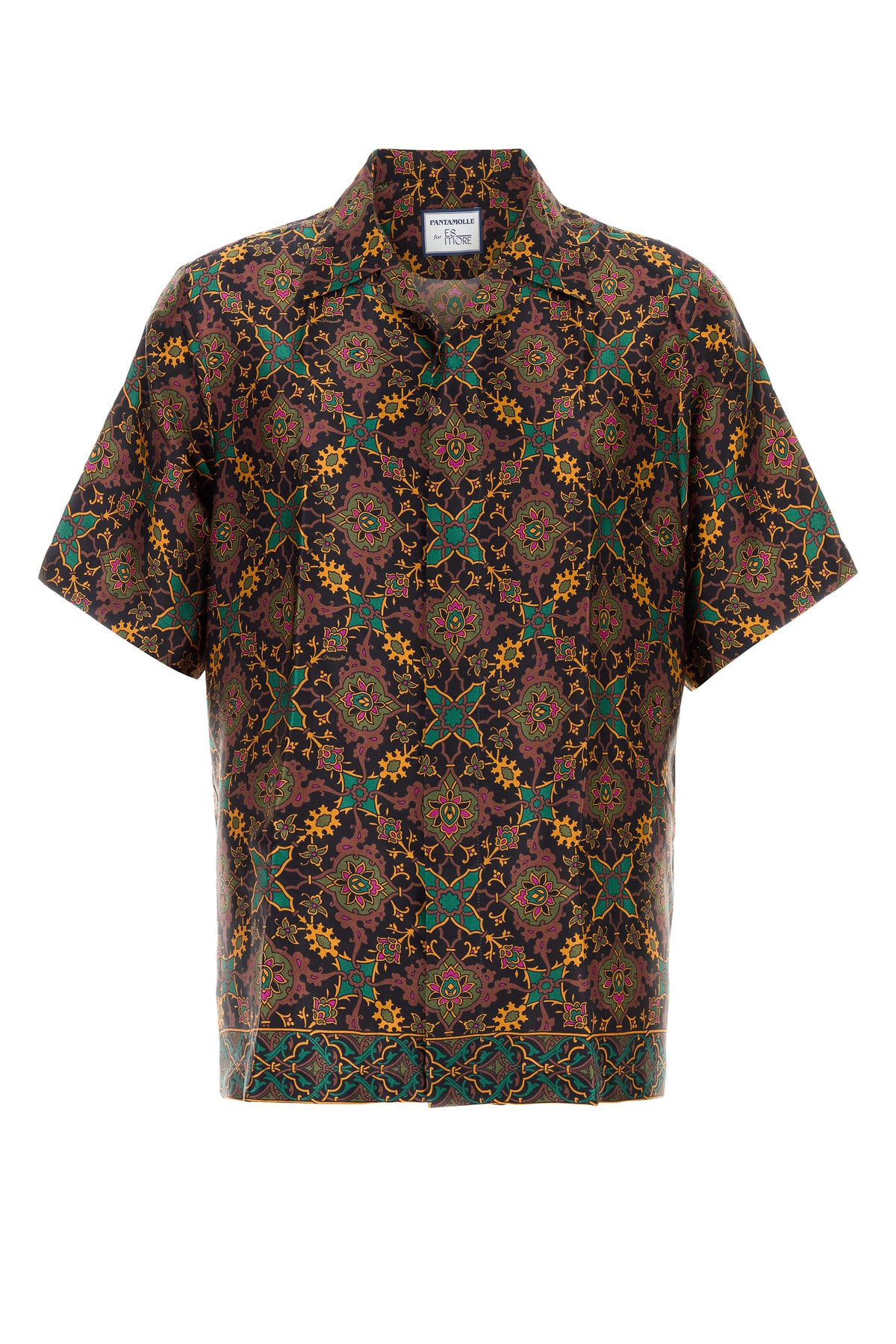 Short-sleeve shirt realized in pure silk satin characterized by peculiar print on the entire surface.