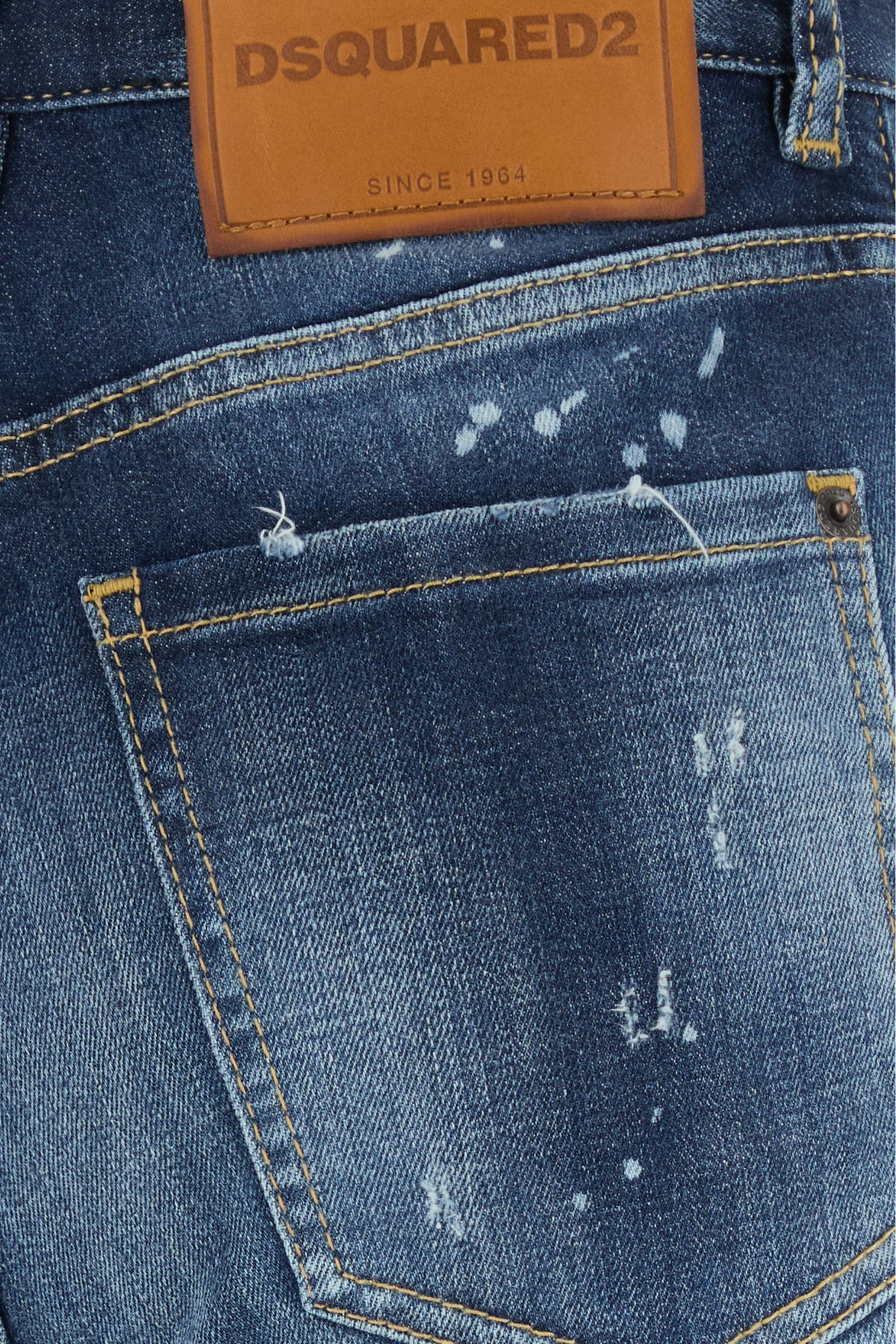 Jeans realized in stretch and slightly distressed stretch cotton denim characterized by intentional dirties.