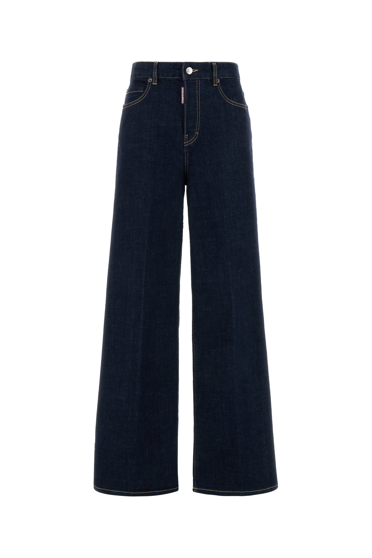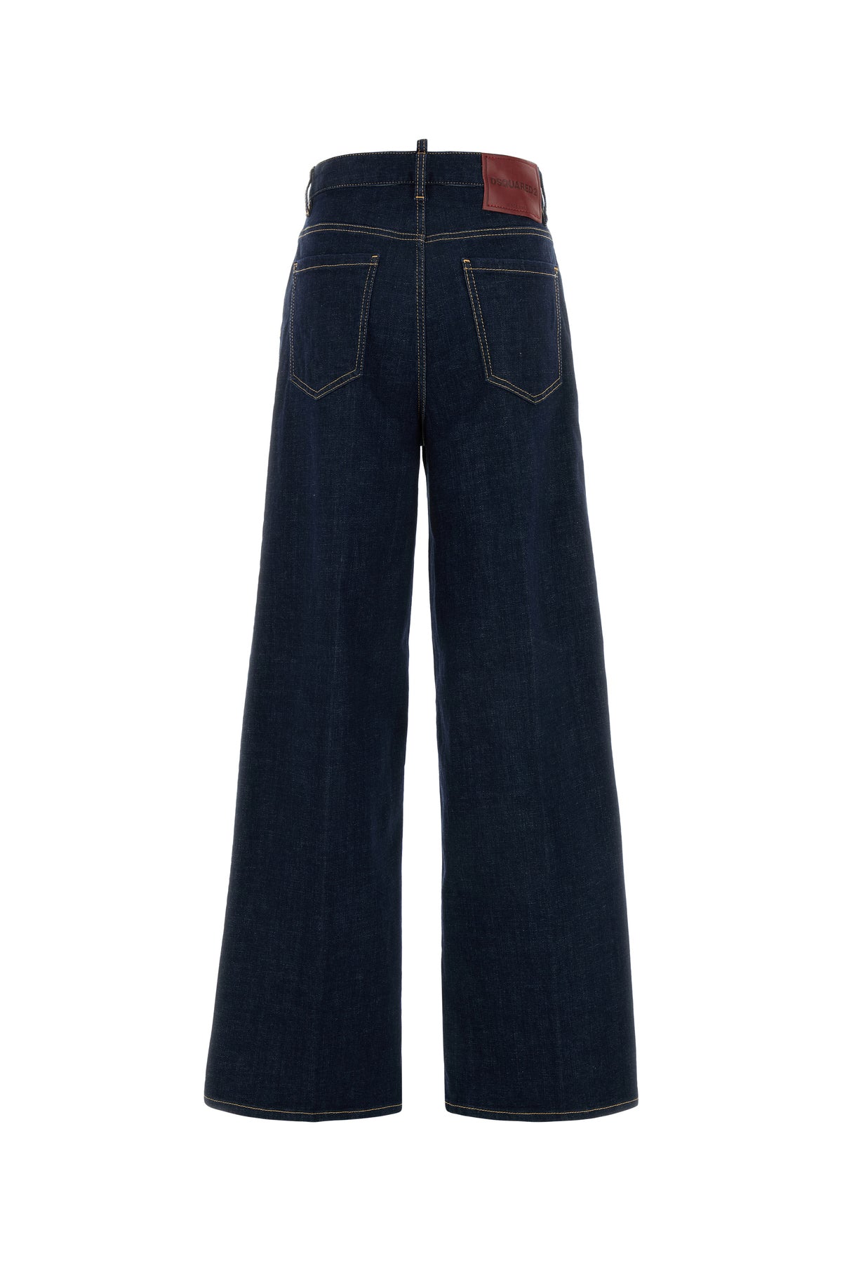 Wide-leg jeans realized in stretch cotton denim enriched by contrasting logoed label at the back.