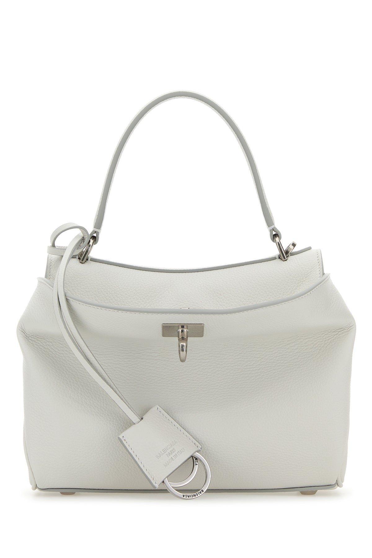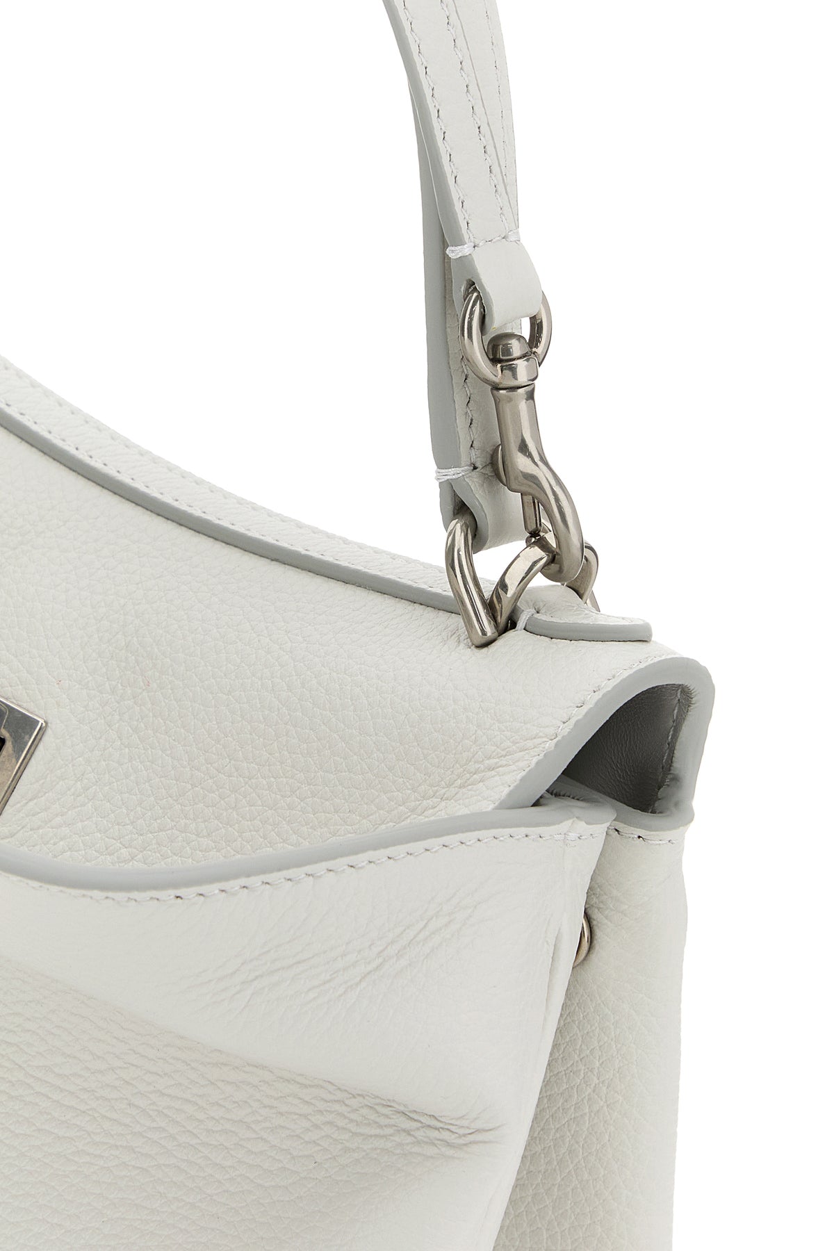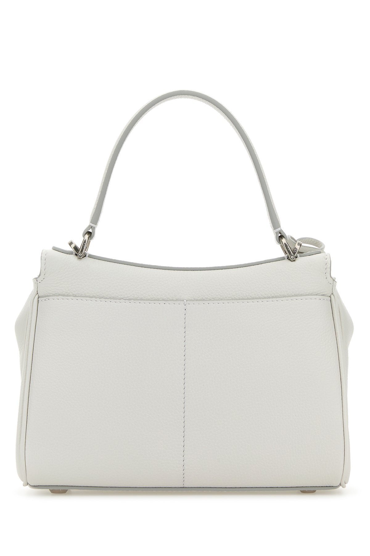 Handbag realized in pebble calf leather enriched by detachable tonal leather and metal keyring accessory.