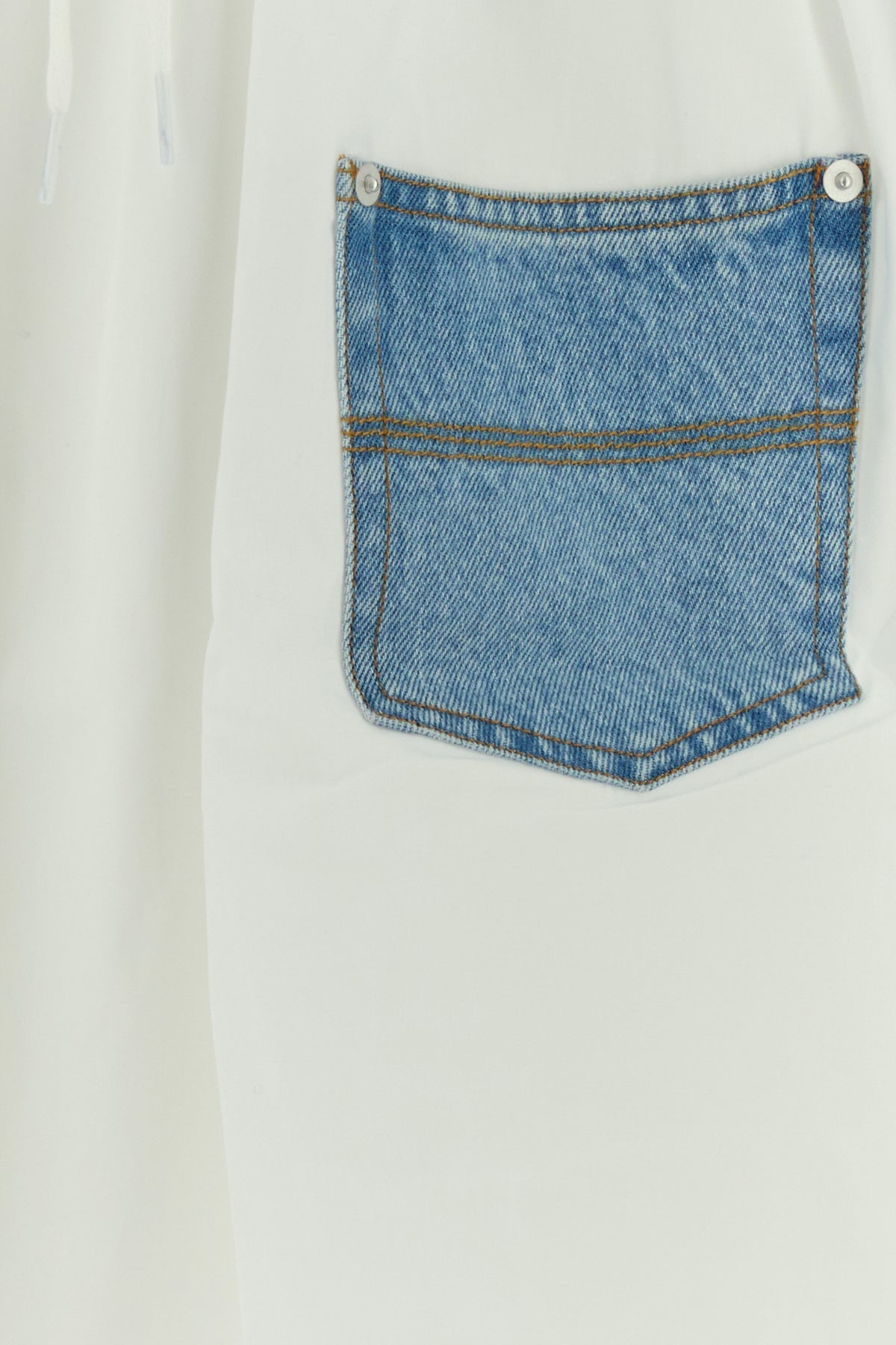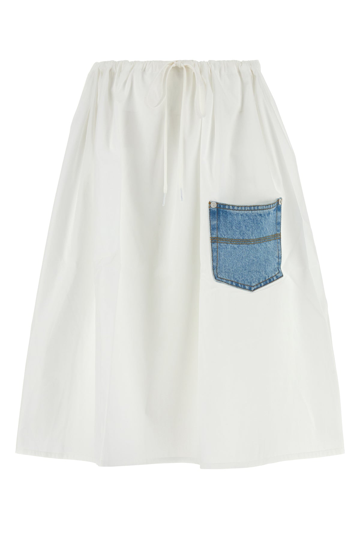 Flared skirt realized in pure cotton poplin enriched by denim patch pocket at the front.