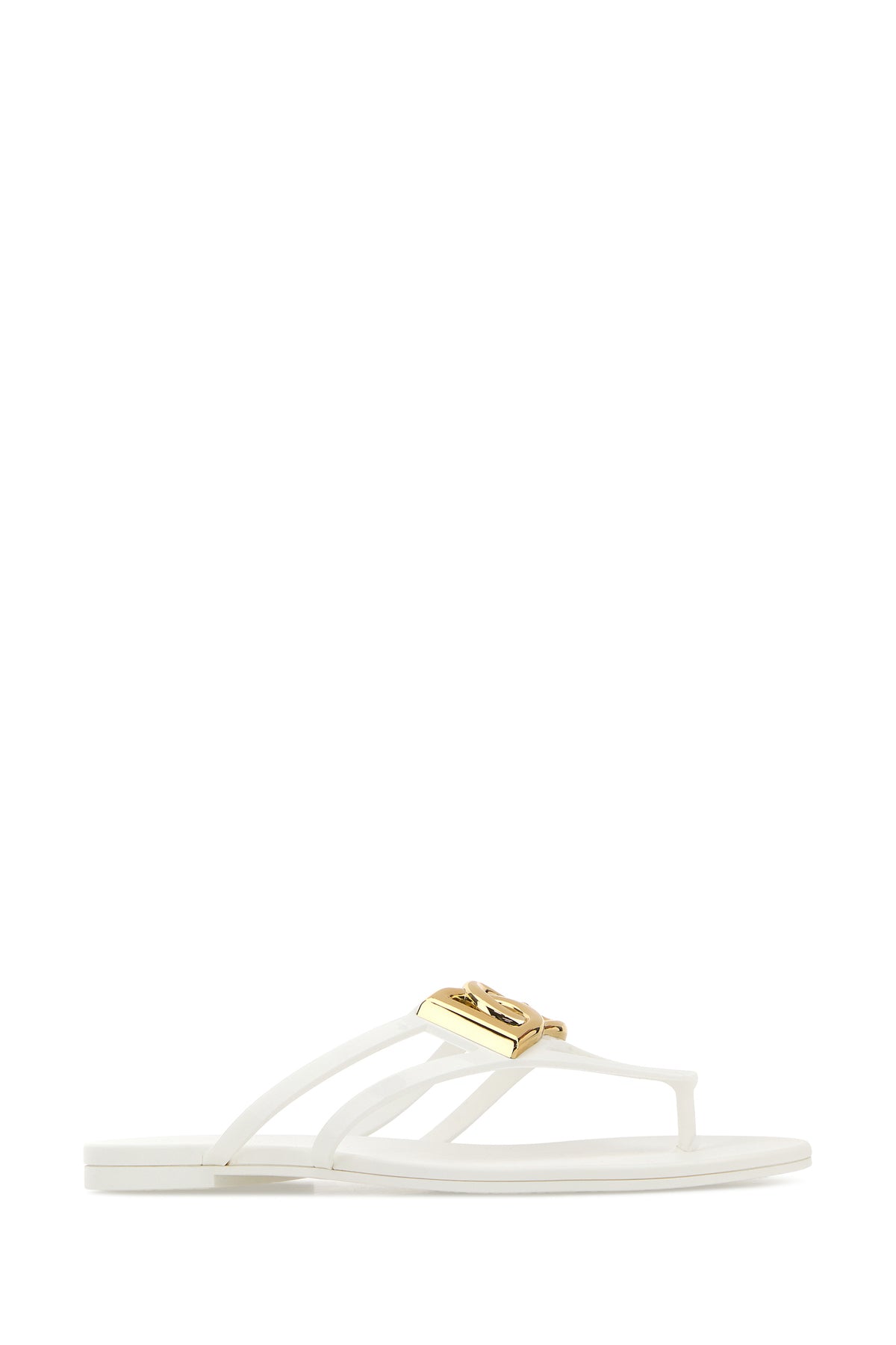 Thong slippers realized in rubber enriched by DG metal detail on the instep.