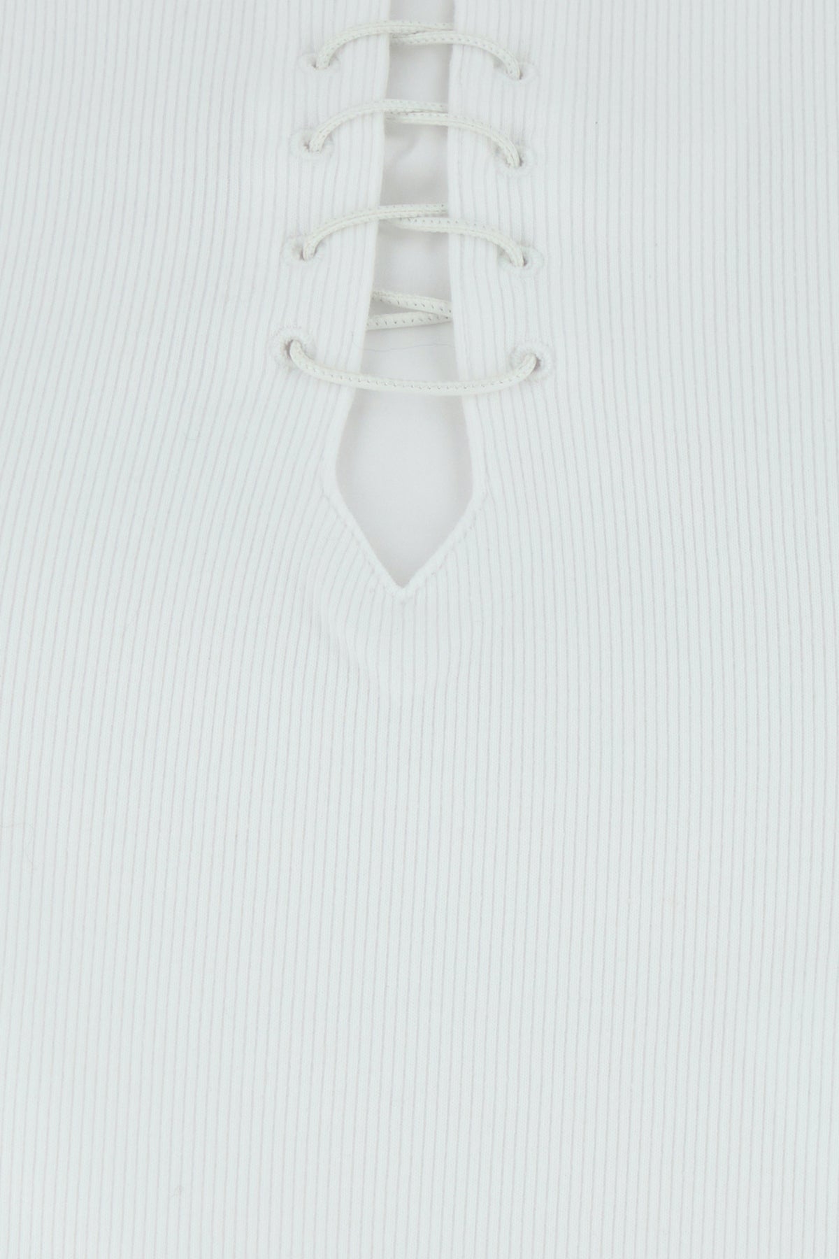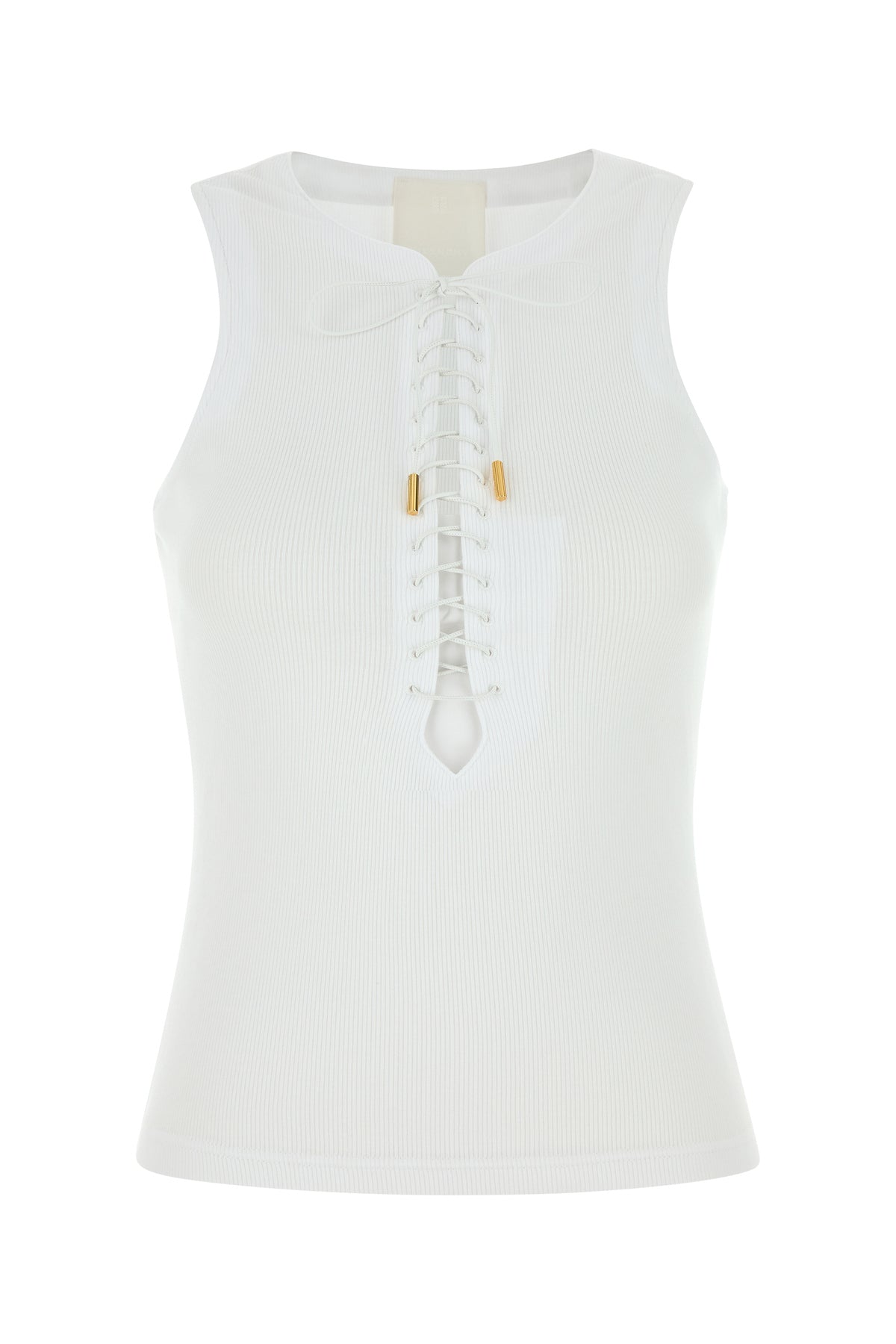 Tank top realized in stretch cotton characterized by laces to tie at the front.