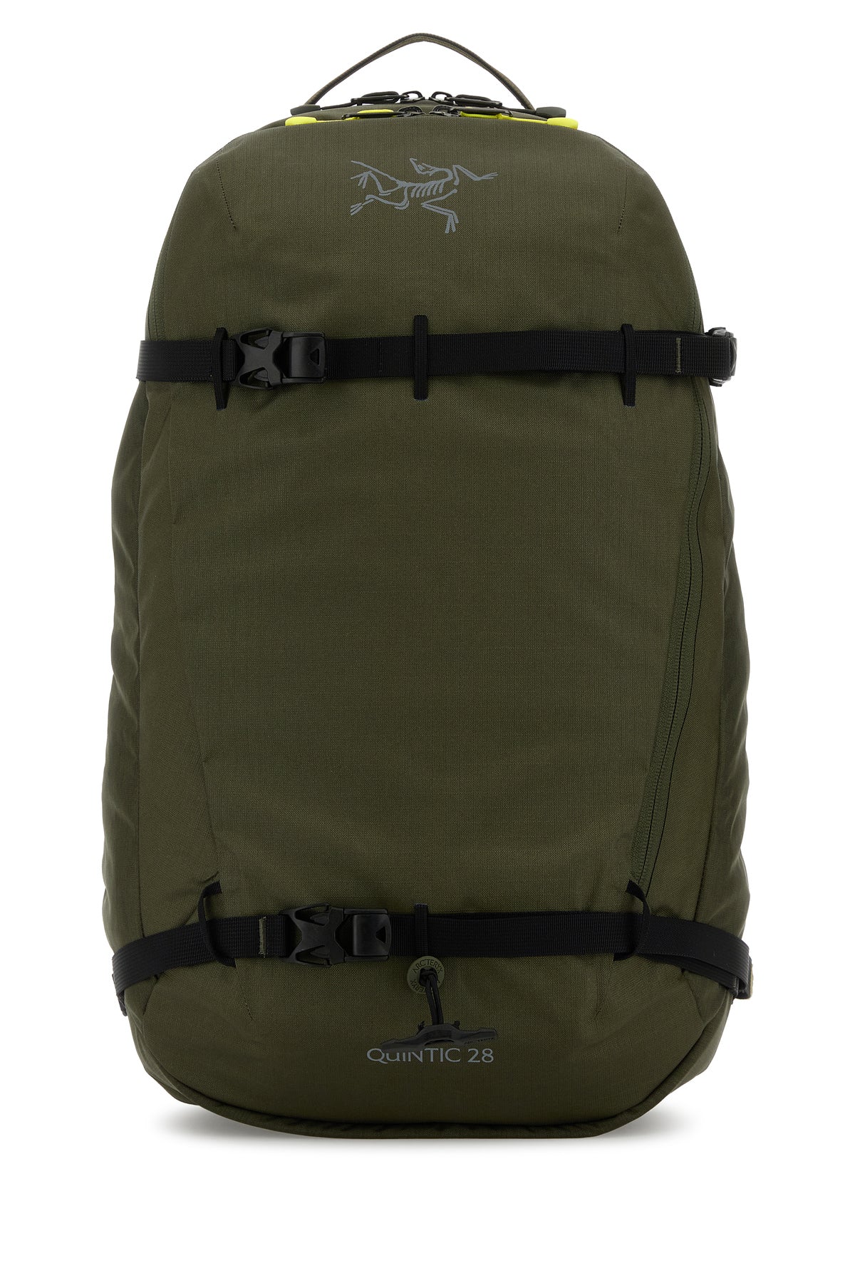 Backpack realized in fabric characterized by embroidered logo at the front.