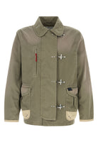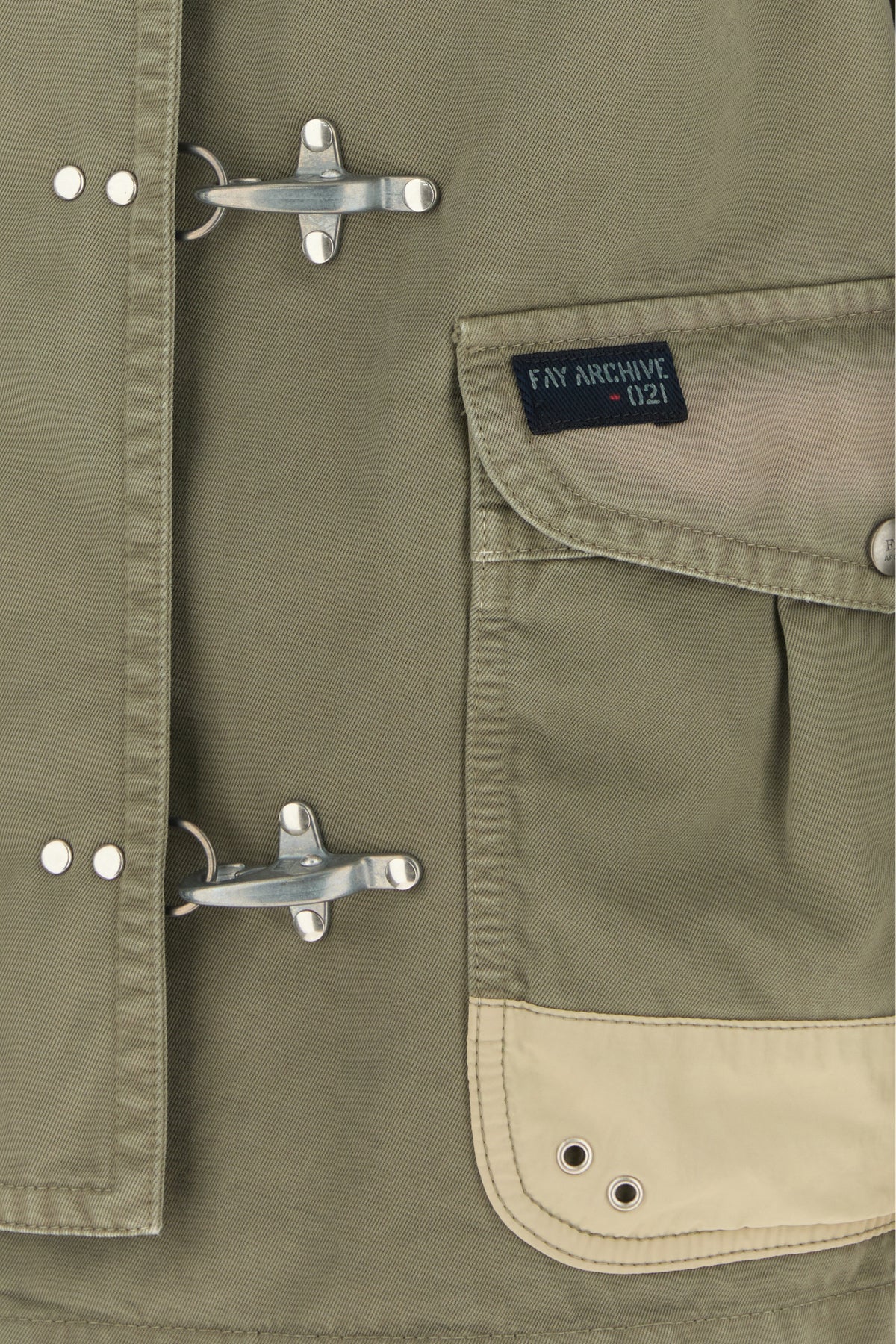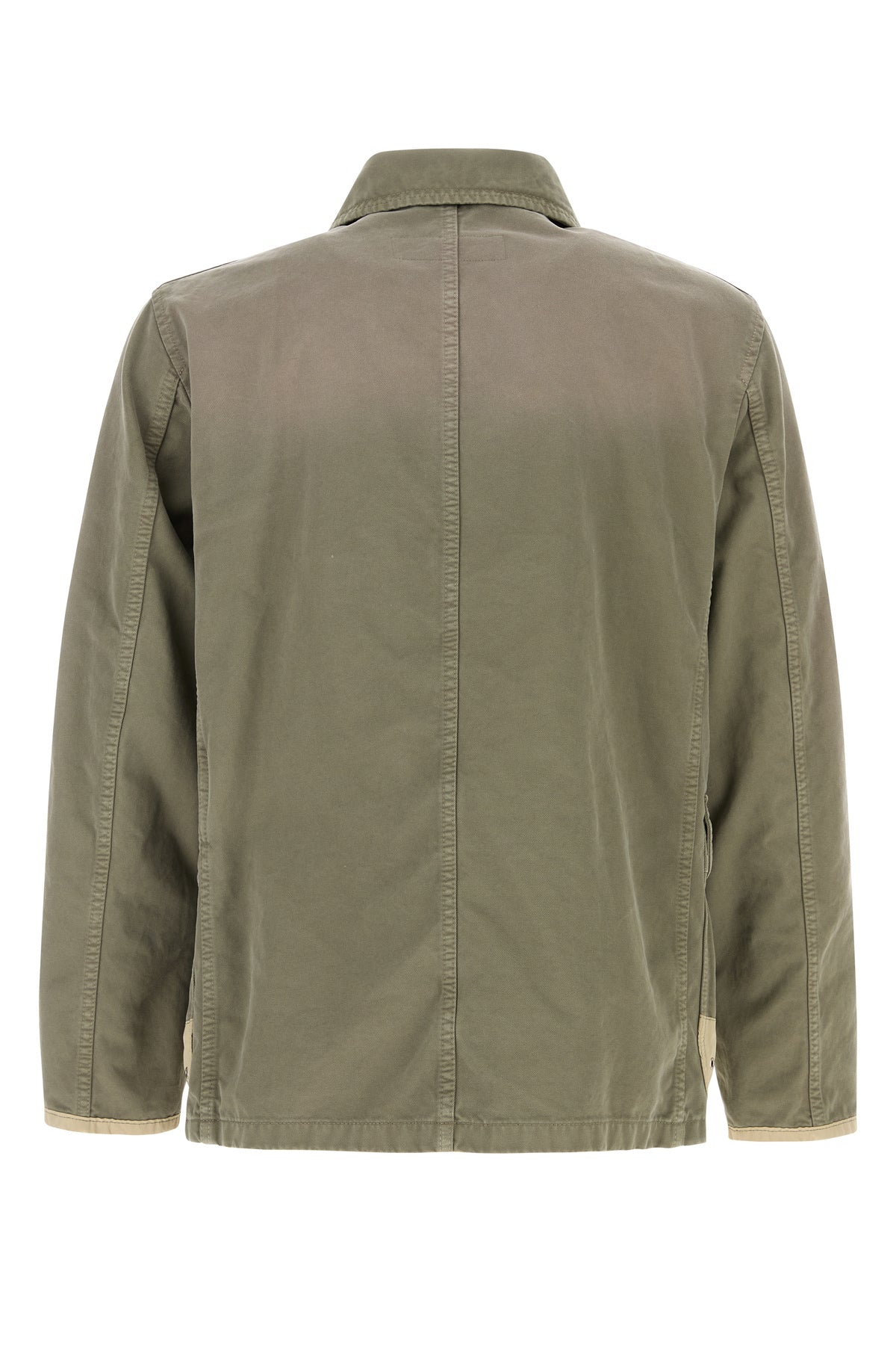 Jacket realized in pure cotton twill enriched by contrasting logoed label at the front.