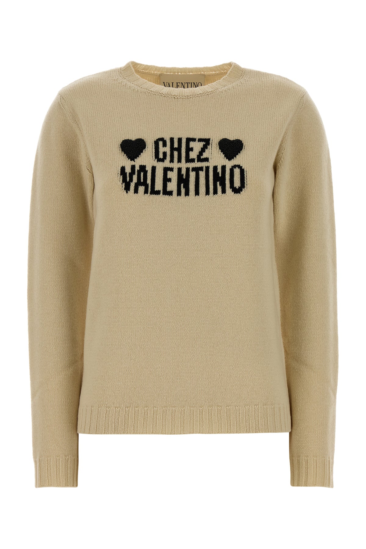 - Ribbed crew-neck, cuffs and hemline