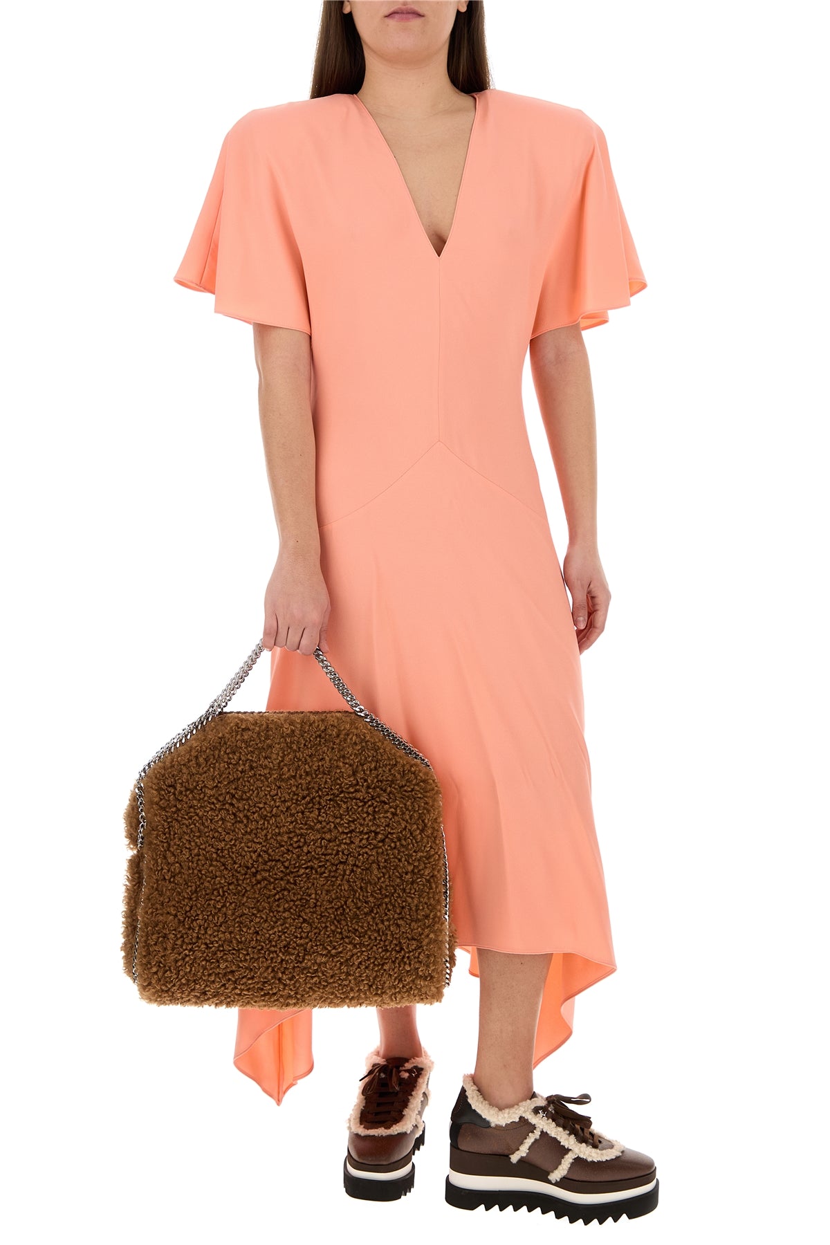 Handbag realized in alter mat shearling enriched by metal chain trimmings.