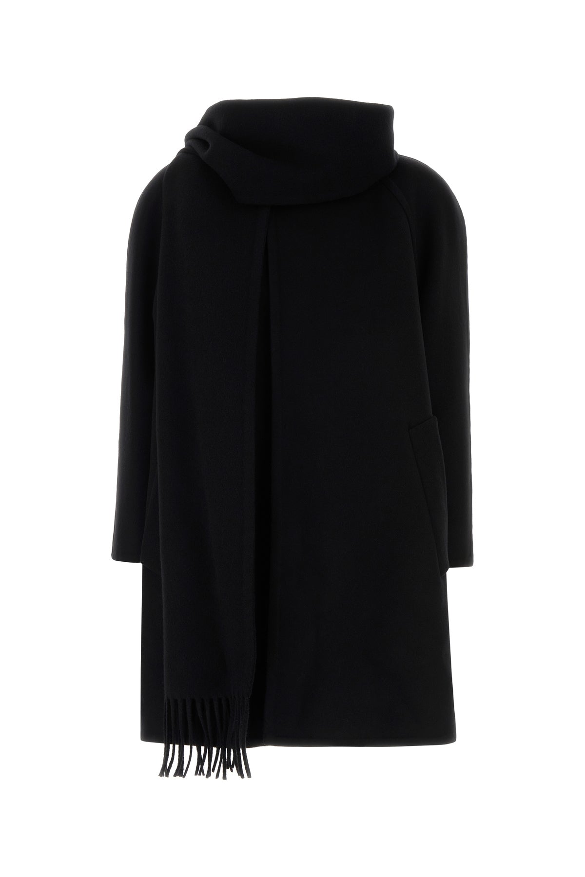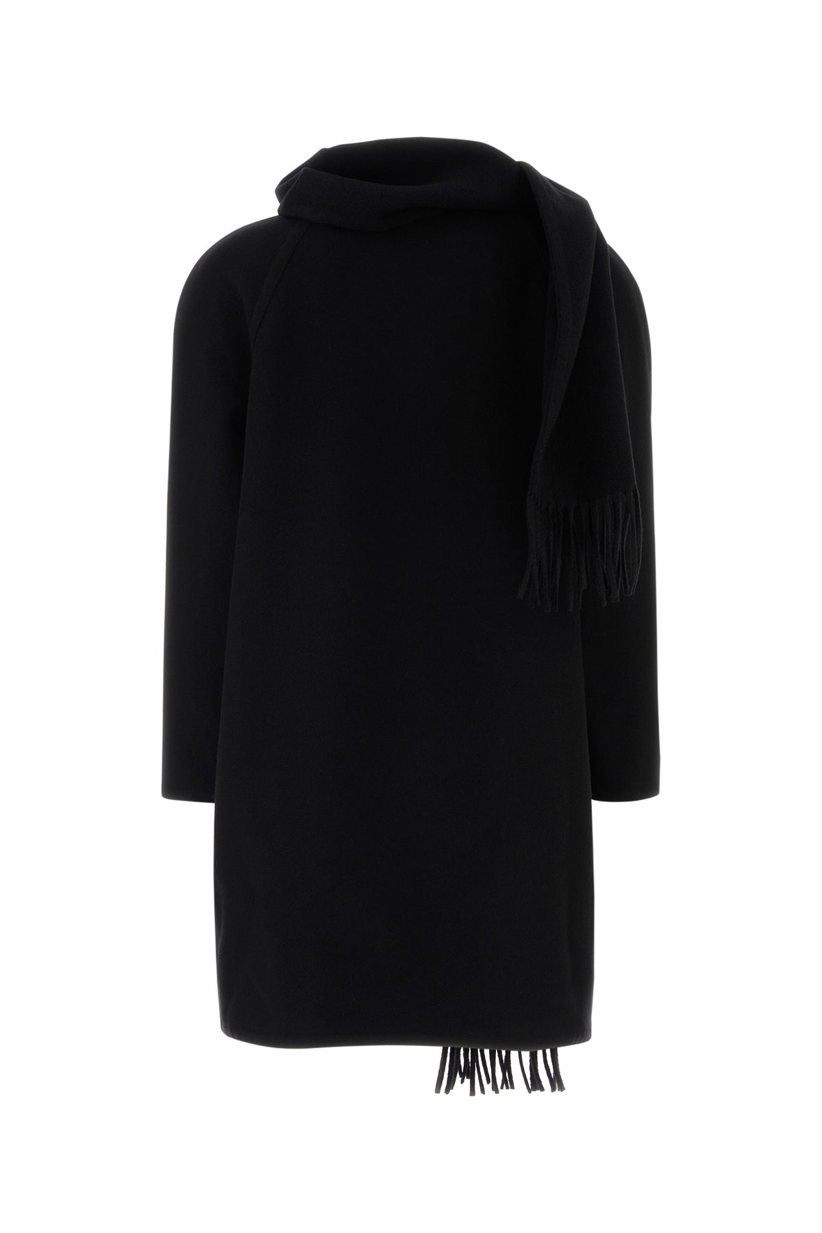 Coat realized in pure cashmere enriched by fringed scarf at the top.