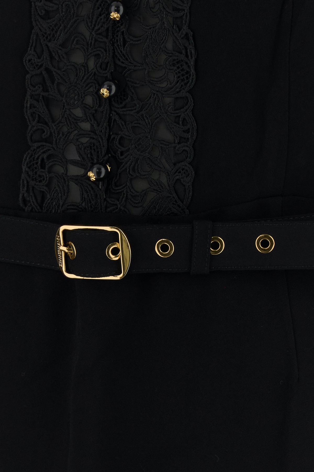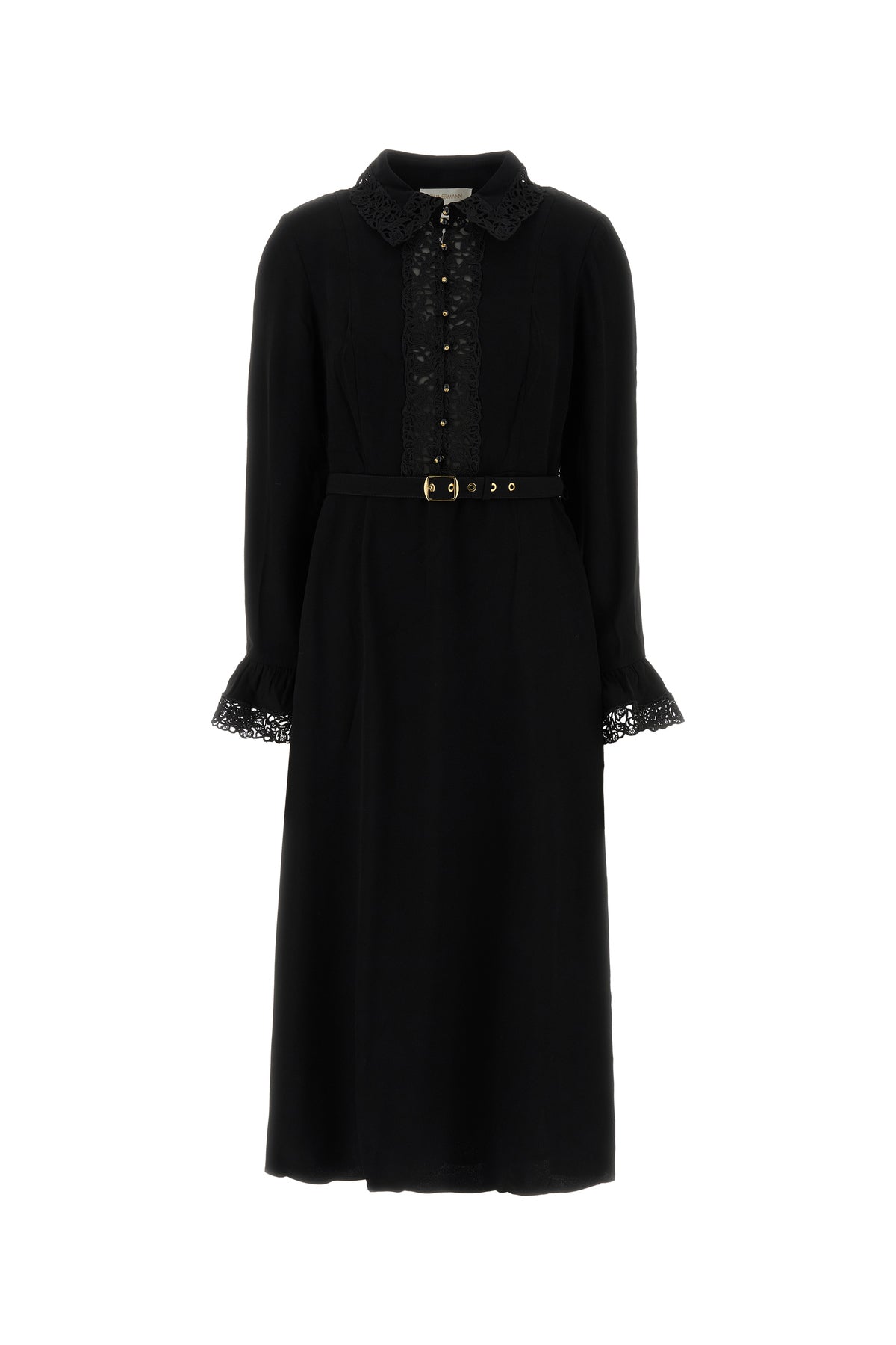 Midi-length dress realized in crepe enriched by tonal lace inserts at the front and on the cuffs.