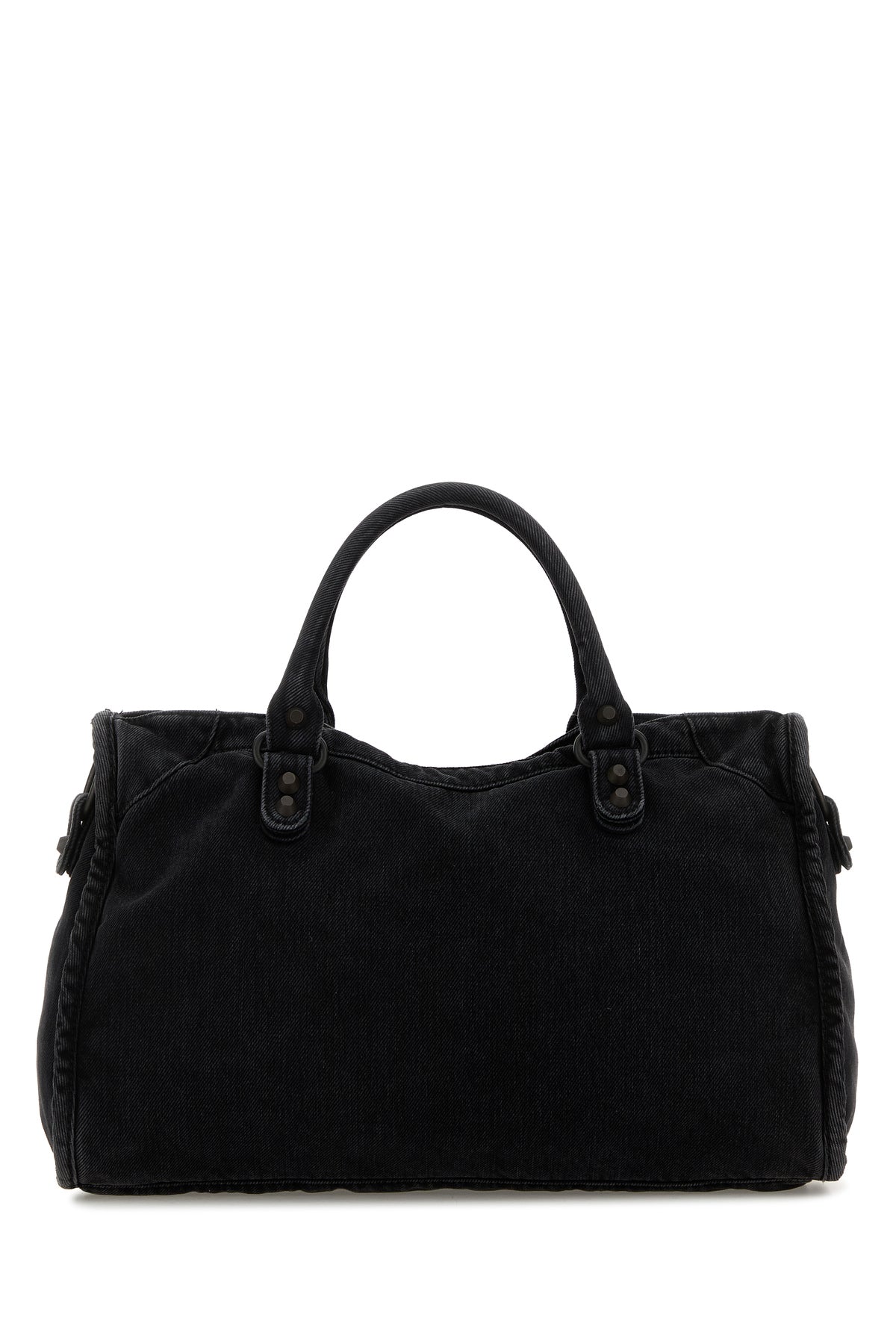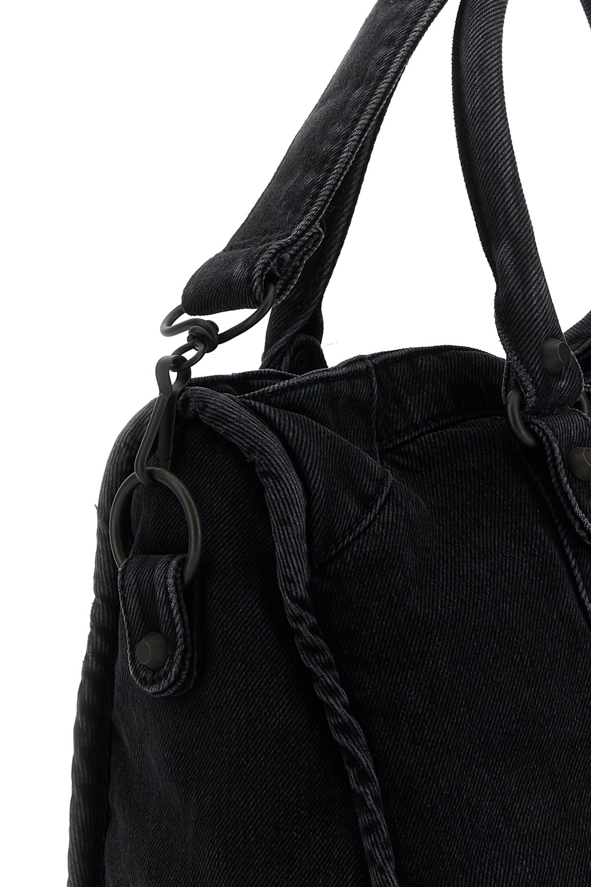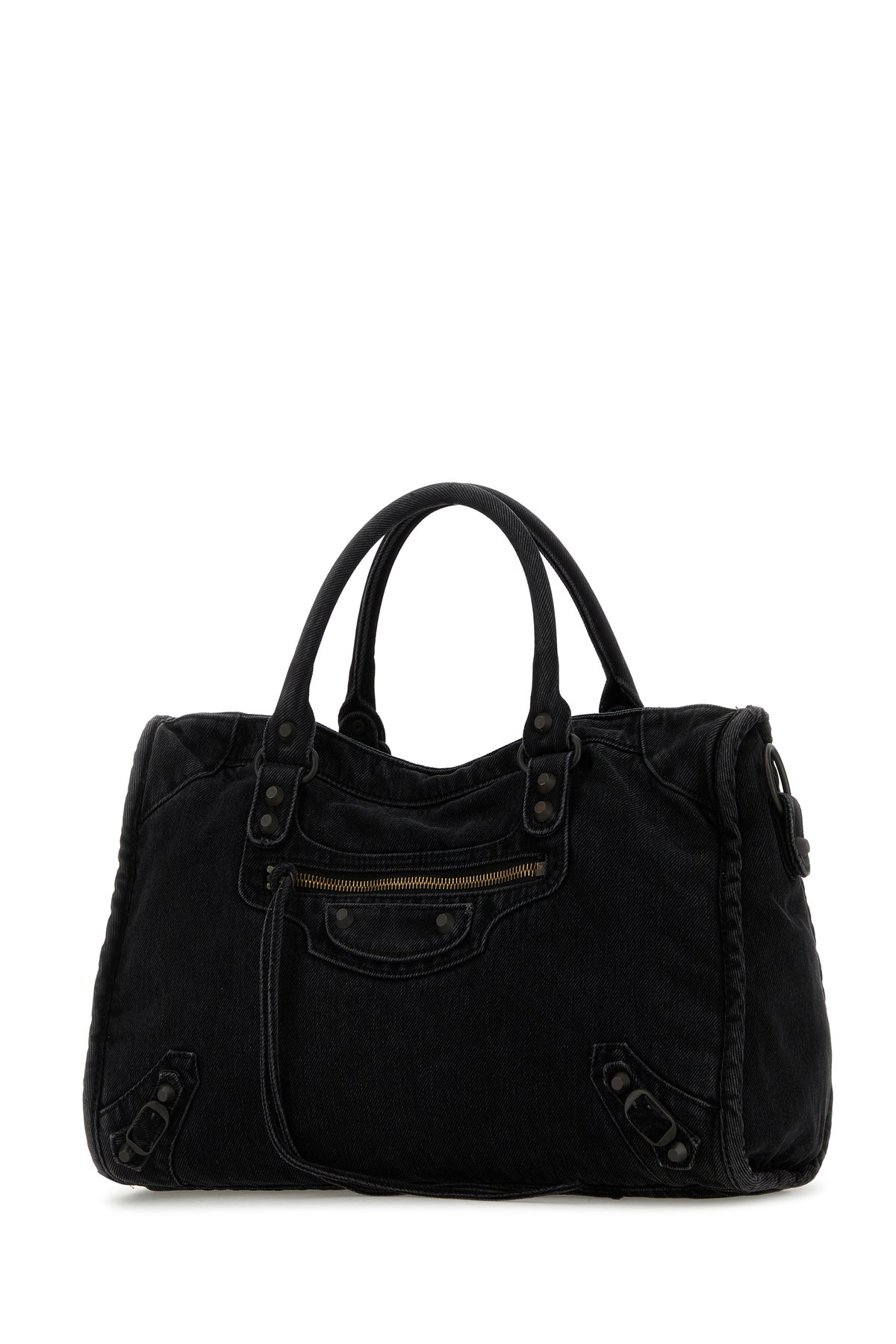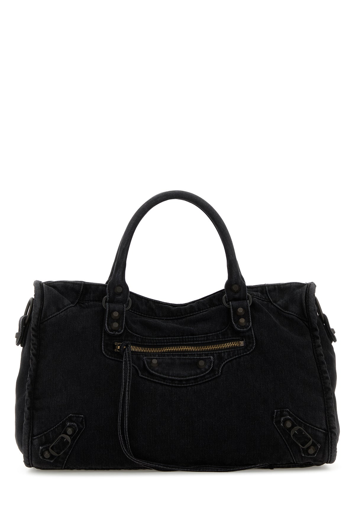 Handbag realized in denim enriched by decorative strap and studs at the front.