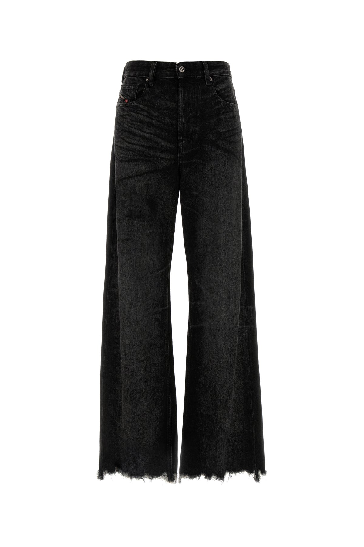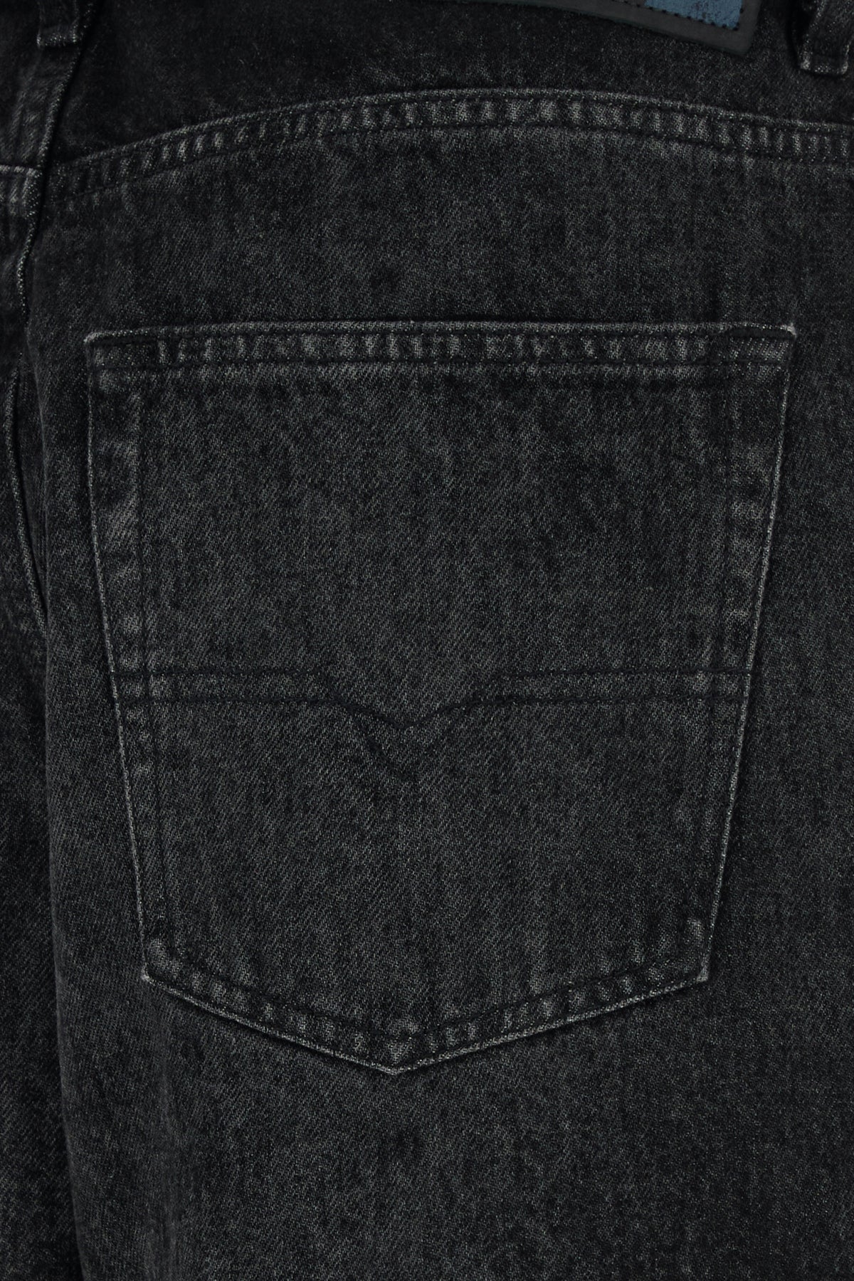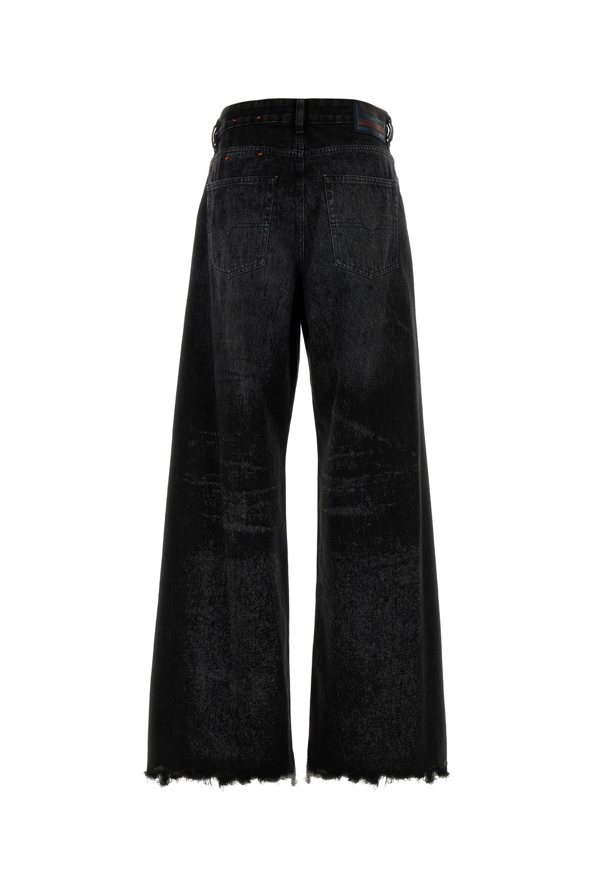 Wide-leg jeans realized in stonewashed cotton and hemp denim enriched by logoed label at the back.