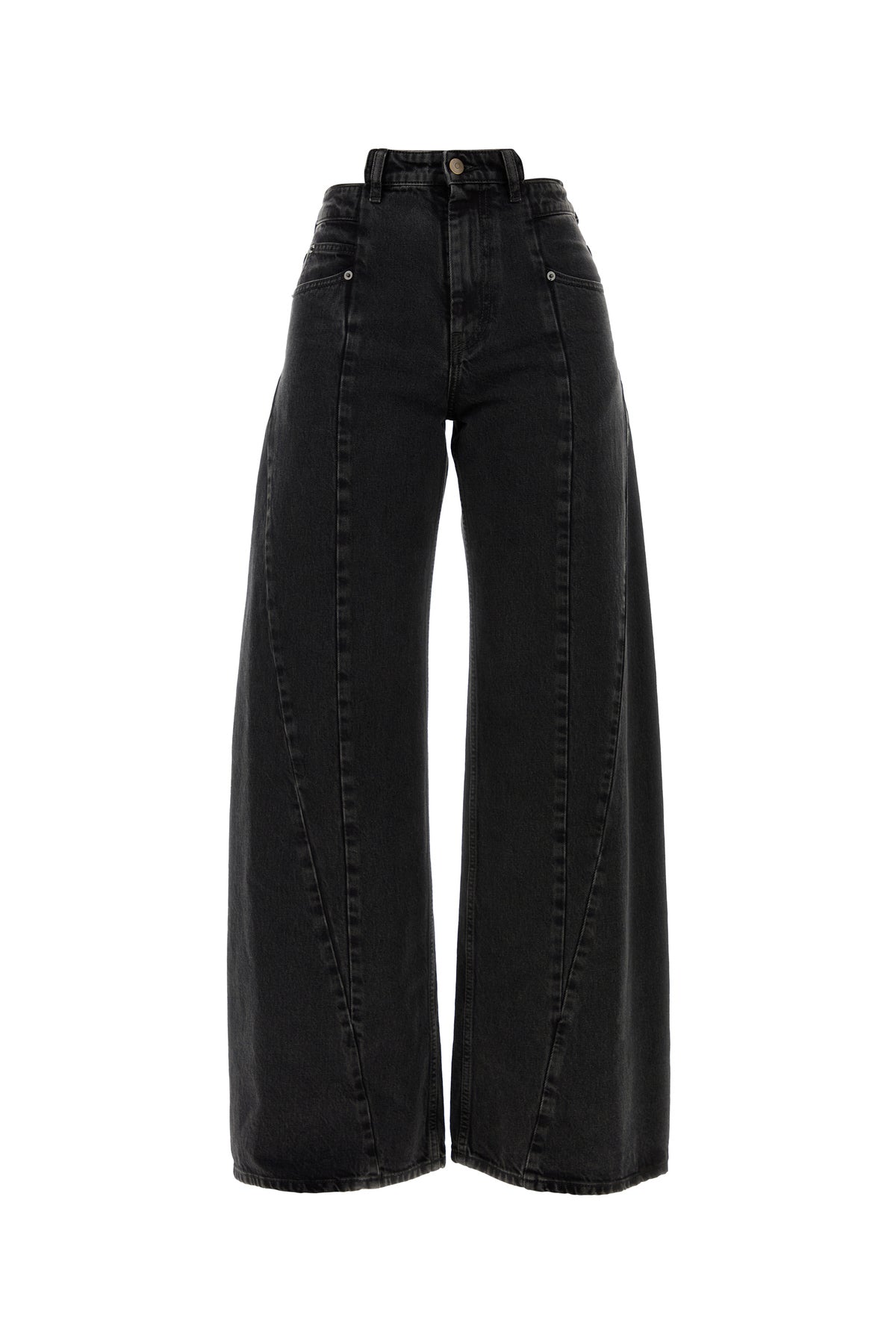 Wide-leg jeans realized in pure cotton denim characterized by contrasting stitching at the back.