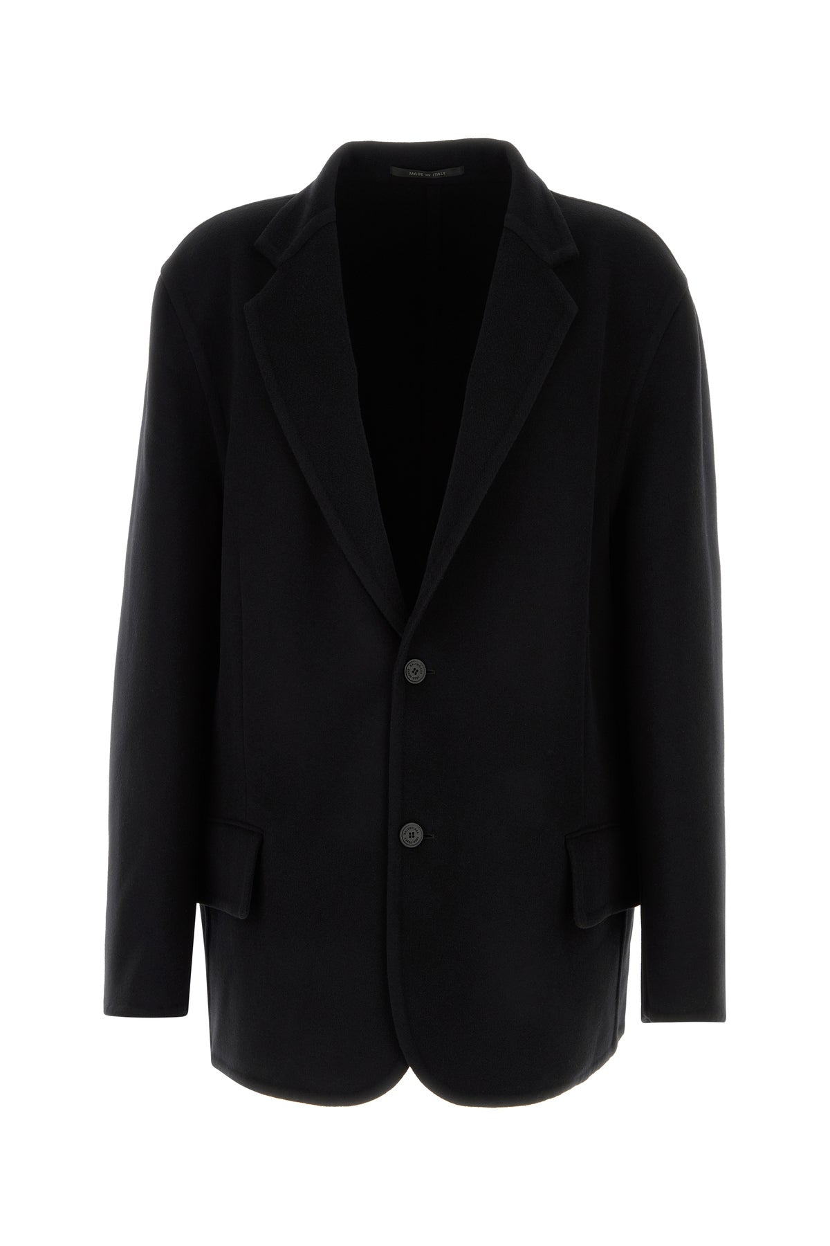 Blazer realized in pure wool flannel characterized by notched lapels.